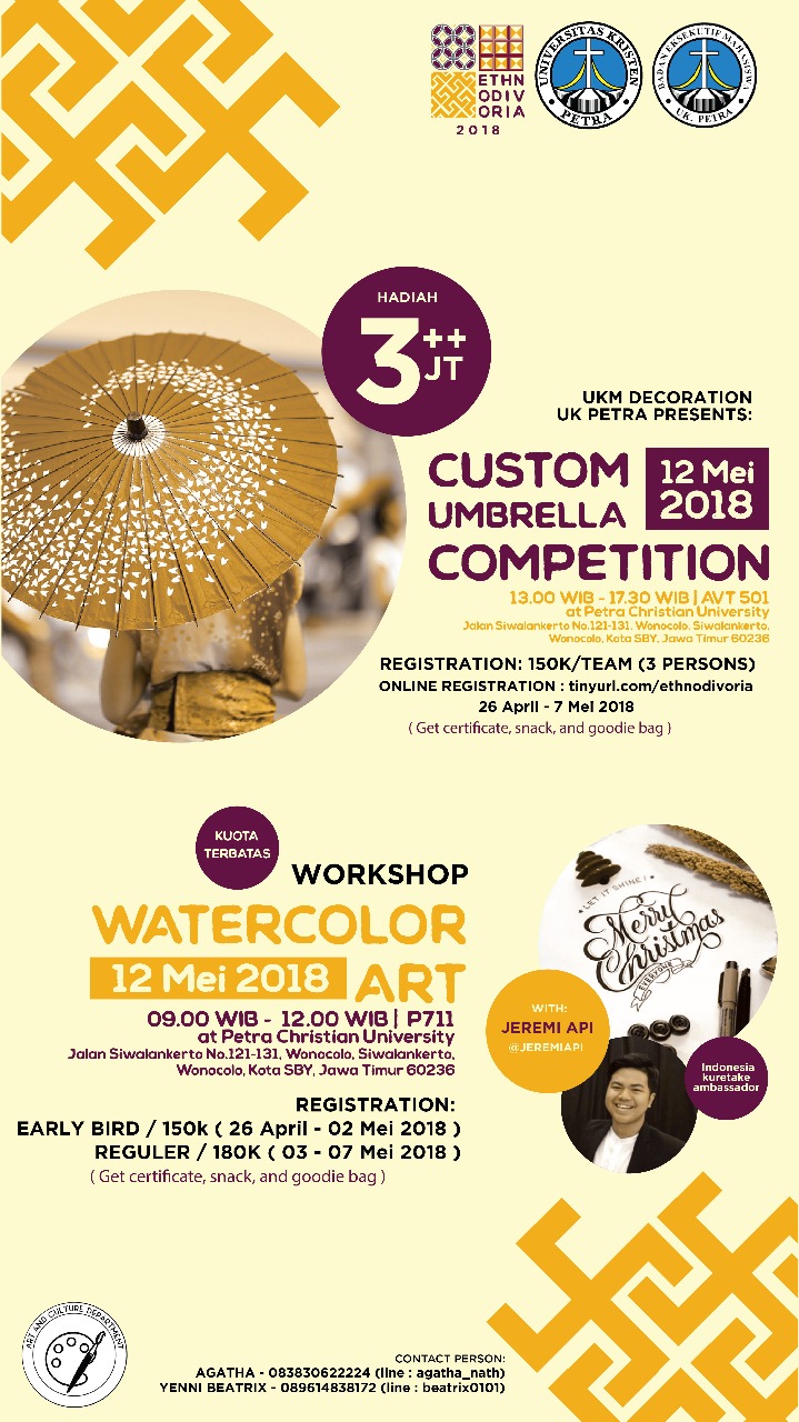 UKM Dekorasi Universitas Kristen Petra Surabaya mengadakan lomba mewarnai payung, selain itu juga ada workshop seni cat air. Rangkaian acara ini dilaksanakan pada 12 Mei 2018 di kampus UK Petra.