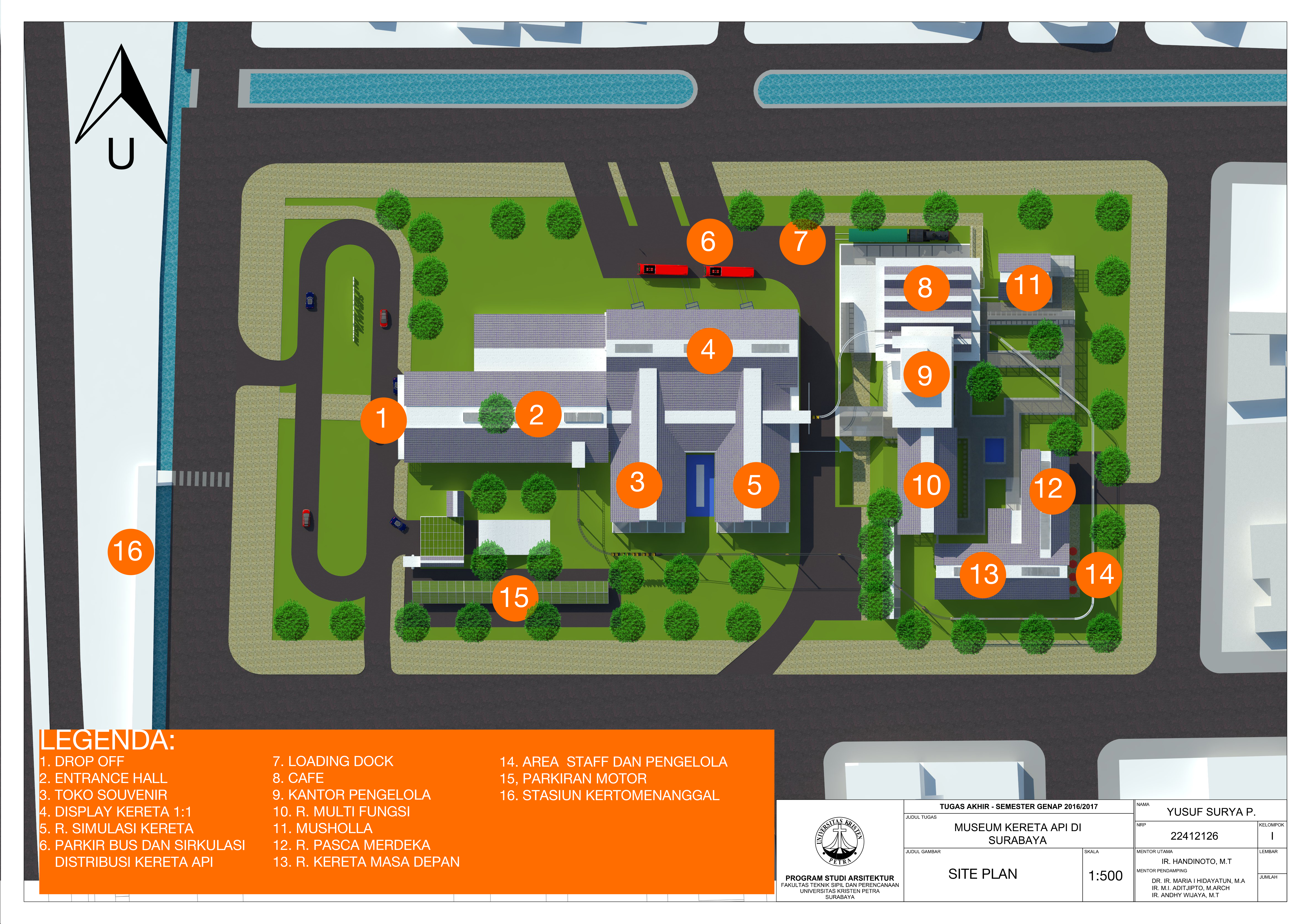 Sebuah wadah yang diharapkan dapat menjadi sebuah pusat pengetahuan yang berkaitan tentang sejarah kereta api di Jawa Timur, khususnya di Surabaya. Di sini merupakan tempat yang cocok bagi para pecinta kereta api dan juga untuk para orang-orang yang ingin tahu lebih dalam tentang sejarah kereta api di Jawa Timur. Kereta api merupakan sebuah transportasi yang tentunya membutuhkan adanya akses/sirkulasi, jika sirkulasi tidak lancar maka transportasi menjadi tidak efektif. Maka dari itu, sehingga bangunan ini menggunakan pendekatan sistem sirkulasi dan pendalaman karakter ruang yang dapat menciptakan nuansa tersendiri di dalam area museum. Berdasarkan pengguna dan aktivitasnya, pembagian zoning vertikal terbagi menjadi 3 (lantai basement terdapat zona edukasi yang berisi sejarah kereta api di Jawa timur khususnya Surabaya zaman penjajahan Belanda dan Jepang dengan sirkulasi linier yang mendorong pengunjung melewati ruang-ruang tersebut, lantai satu dan dua zona edukasi dan komersil terdapat beberapa massa bangunan yang mengelilingi seperti massa kereta api pasca kemerdekaan/sekarang, kereta api masa depan, cafe, kereta skala 1:1, kereta layang, ruang multifungsi dan toko souvenir; lantai tiga dan empat zona perkantoran. Museum ini merupakan museum yang mengutamakan kenyamanan dan keamanan pengunjung terutama pada akses/sirkulasi termasuk pada pengelola museum tersebut. Selain itu, menciptakan suasana dan hirarki yang membuat kereta api merupakan transportasi yang istimewa sehingga pengunjung merasa antusias dan memungkinkan untuk datang berkunjung kembali.