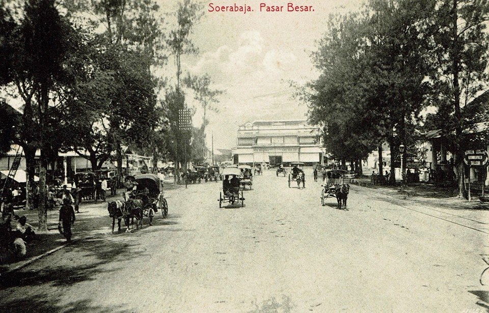 Suasana kehidupan jalanan Pasar Besar / jalan Pahlawan pada tahun 1900 – 1910