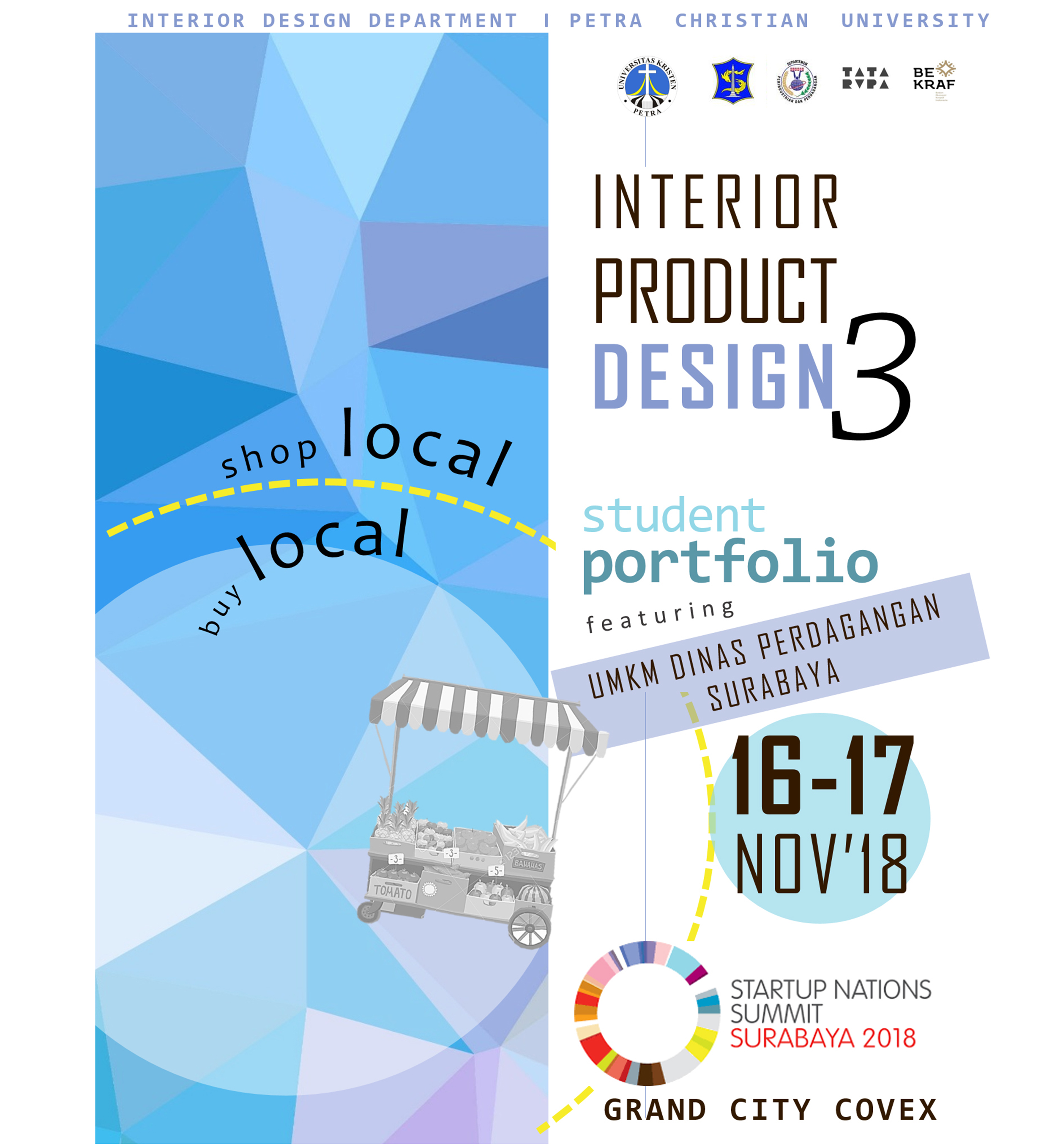 Program Studi Desain Interior Universitas Kristen Pera Surabaya mengadakan acara pameran desain produk pada tanggal 16-17 November 2018 di Grand City Covex Surabaya. Acara ini bekerja sama dengan UMKM Dinas Perdagangan kota Surabaya dengan mengangkat tema Interior Product Design III.