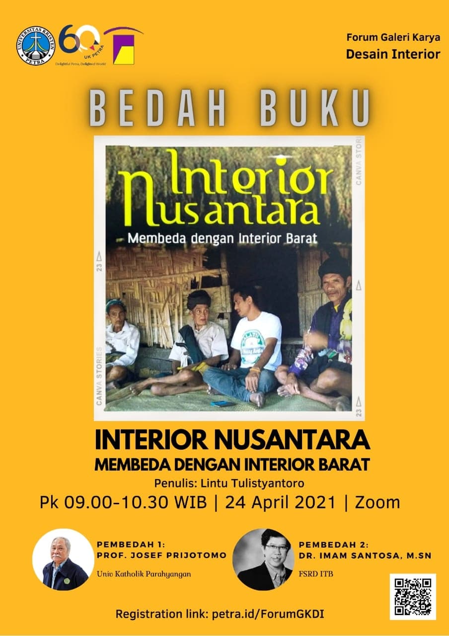 Program Studi Desain Interior Universitas Kristen Petra Surabhaya pada tanggal 24 April 2021 mengadakan acara bedah buku yang akan dilakukan secara online lewat aplikasi Zoom. Sebagai nara sumber Josef Prijotomo dan Imam Santosa. Adapun judul buku yang akan dikupas yaitu Interior Nusantara karya Lintu Tulistyantoro.