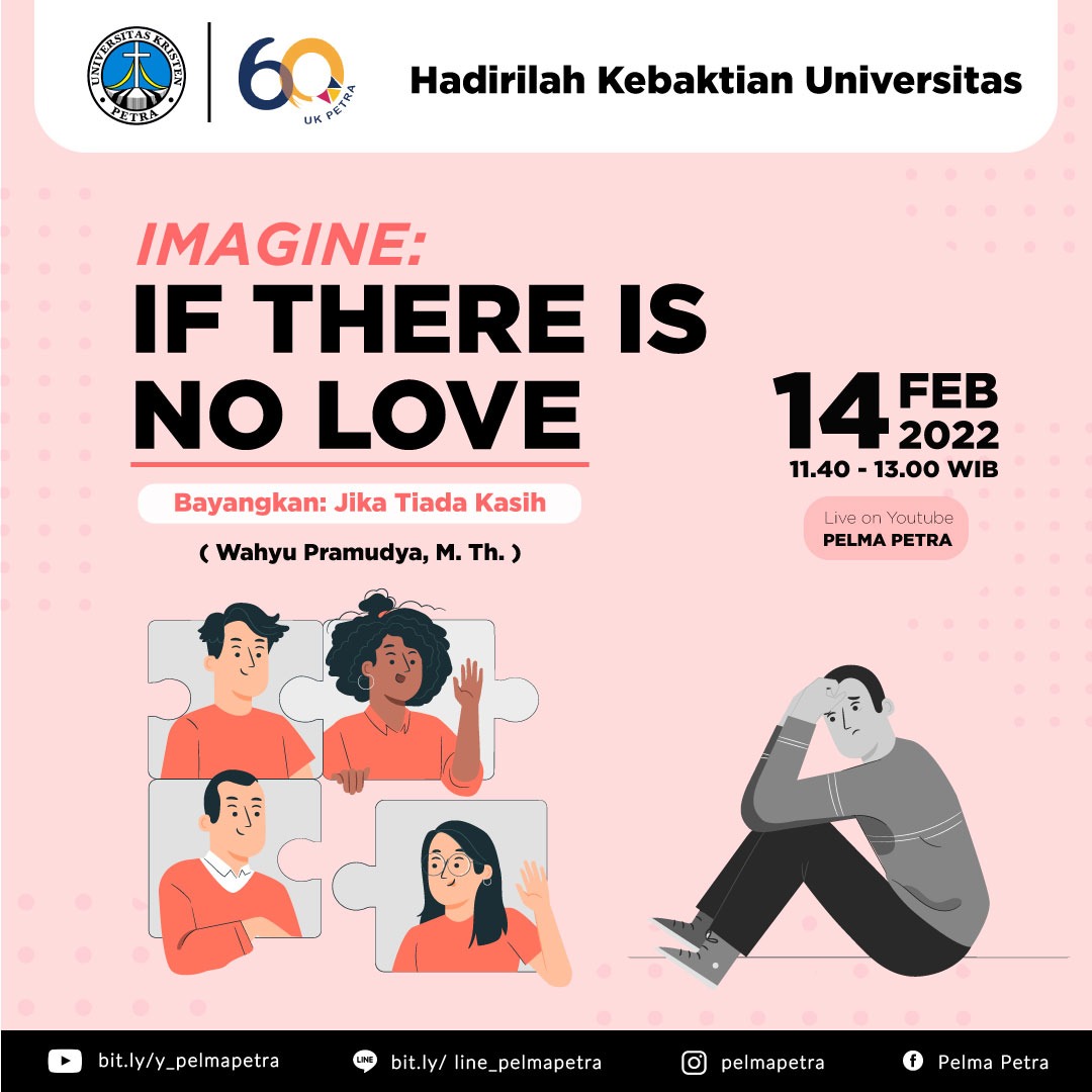 Pada Senin, 14 Februari 2022 Universitas Kristen Petra mengundang seleuruh cititas untuk hadir dalam Kebaktian Universitas yang diadakan setiap hari Senin. Dengan mengangkat tema Imagine: if there is no love (bayangkan: jika tiada kasih), kebaktian kali ini mengundang bapak Wahyu Pramudya, M.Th. sebagai pengkhotbah. Acara ini dilaksanakan secara daring melalui kanal Youtube.