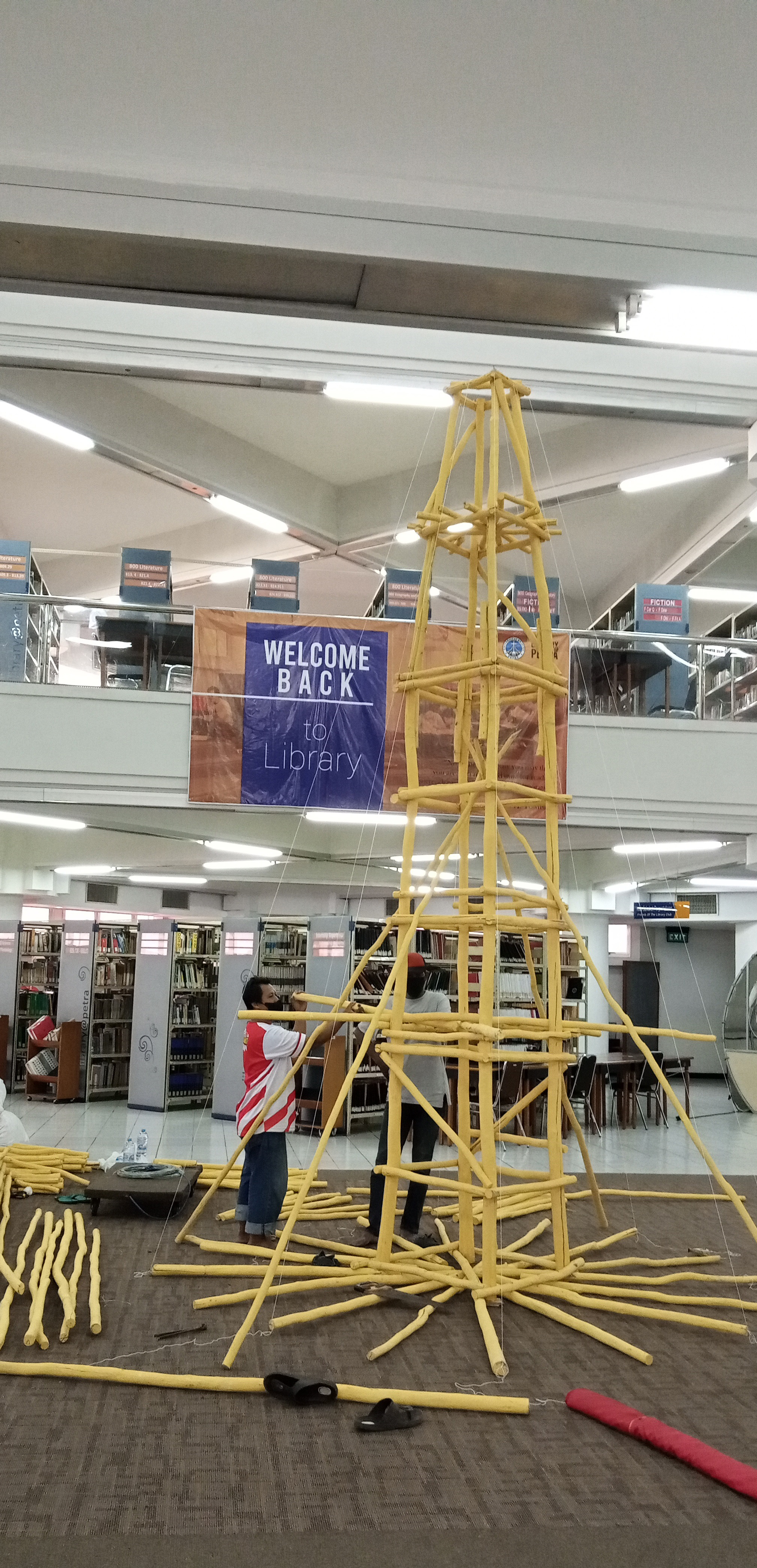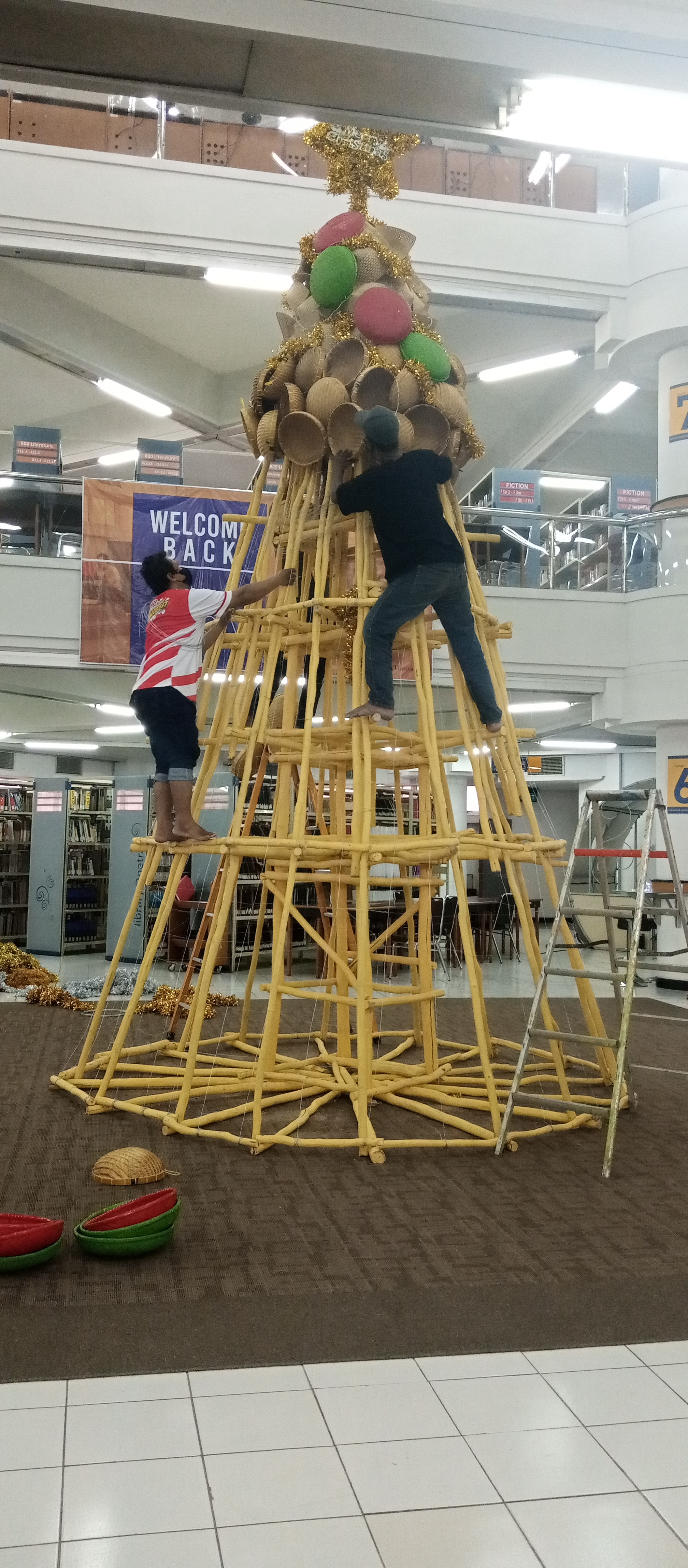 Mengusung tema Natal 2021 Universitas Kristen Petra yakni Nusantara, Perpustakaan UK Petra ikut ambil bagian dalam menyambut Natal dengan menghadirkan Pohon Natal Perkakas Bambu yang mencerminkan Nusantara karena bambu bisa tumbuh dari Aceh sampai Papua. Bambu meskipun tergolong rerumputan, namun memiliki akar yang sangat kuat. Ini mengandung filosofi yang sangat bagus, karena mengajarkan kepada kita untuk memiliki pondasi hidup yang kuat agar tidak gampang goyah menghadapi badai kehidupan, termasuk badai Covid-19. Kemudian, bambu hidupnya juga berkelompok atau tidak hanya berdiri sendiri, melainkan bergerombol dengan kelompok yang lain. Itu mengajarkan pada kita untuk hidup berdampingan dengan masyarakat sekitar supaya kita bisa saling menopang, saling tolong menolong. Filosofi bambu juga mengajarkan bahwa meskipun hanya sebuah rumput, tetapi bambu itu memiliki manfaat yang sangat bagus bagi manusia.