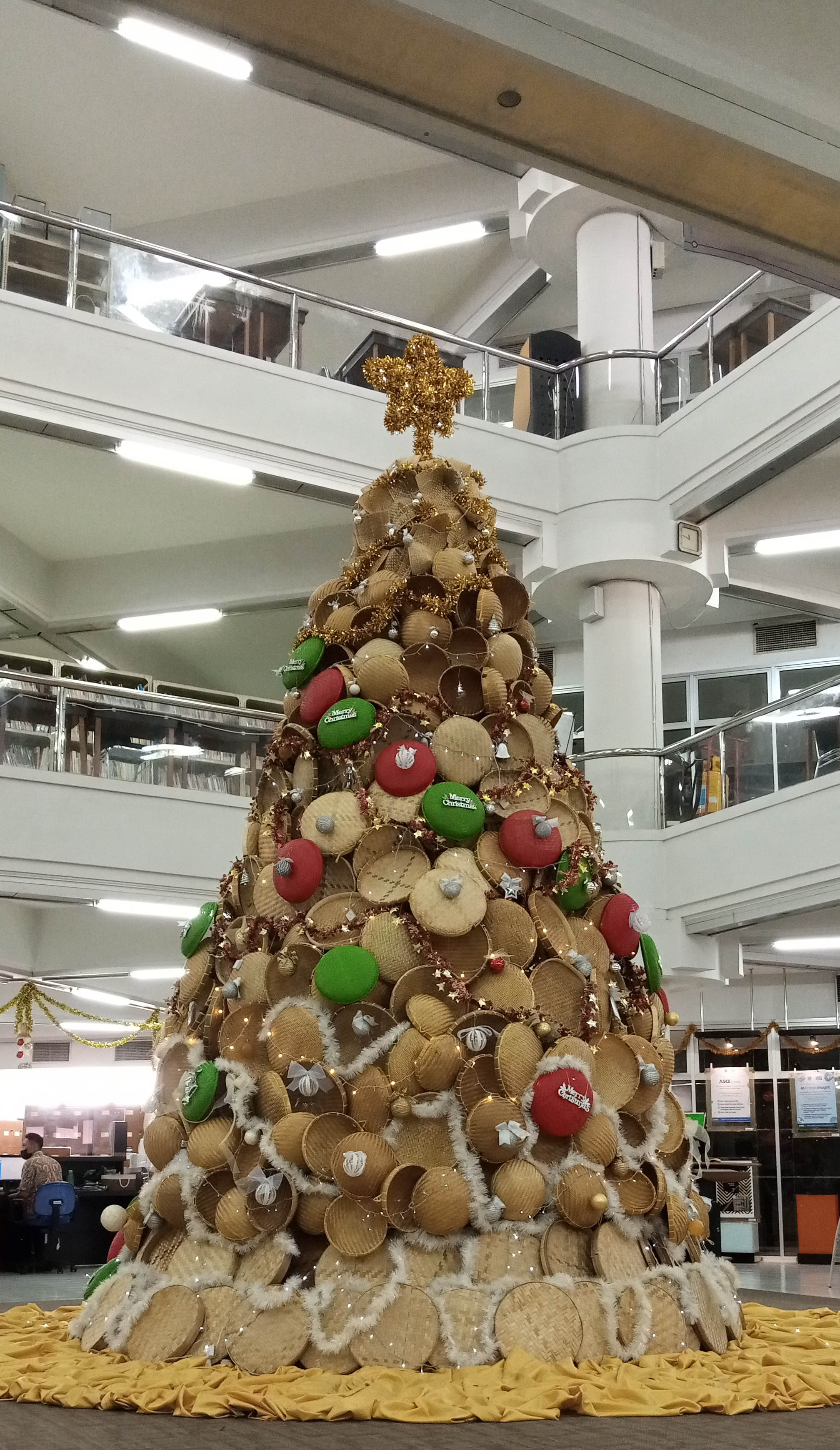 Pohon Natal ini terdiri dari 544 perkakas dapur dari bambu seperti kalo, tempeh, tedok, irek dan pincuk, selanjutnya semua itu dikumpulkan dan disusun hingga membentuk Pohon Natal dengan ketinggian mencapai 7 meter. Dibuat oleh dosen Prodi Desain Komunikasi Visual UK Petra yaitu Trimatra Bagus dan tim.