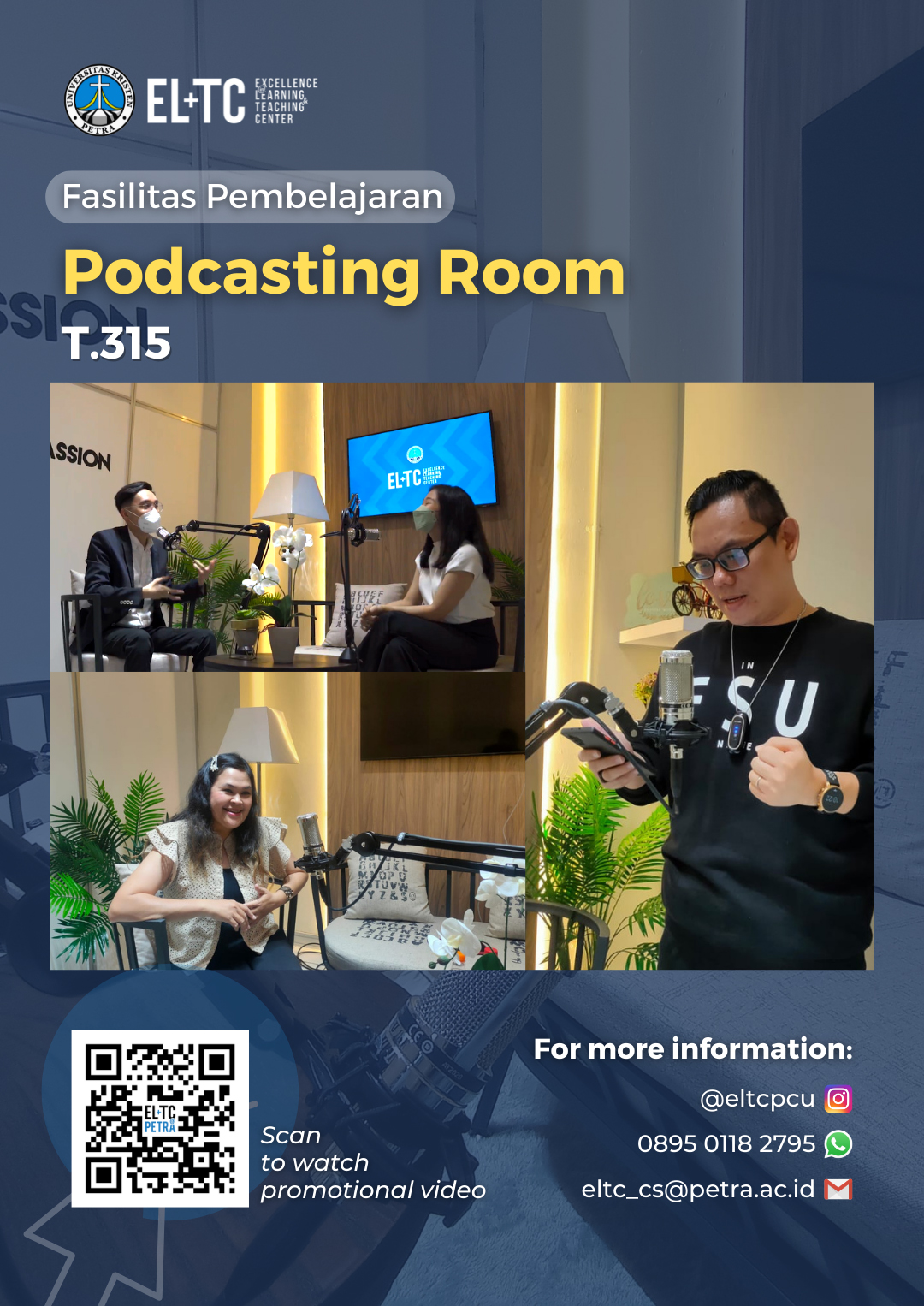 Untuk menunjang proses belajar mengajar dengan berbasis hybrid, UK Petra telah membuka kelas atau ruangan yang bisa dipakai untuk menunjang proses tersebut. Fasilitas pembelajaran: podcasting room ini ada di gedung T.315.