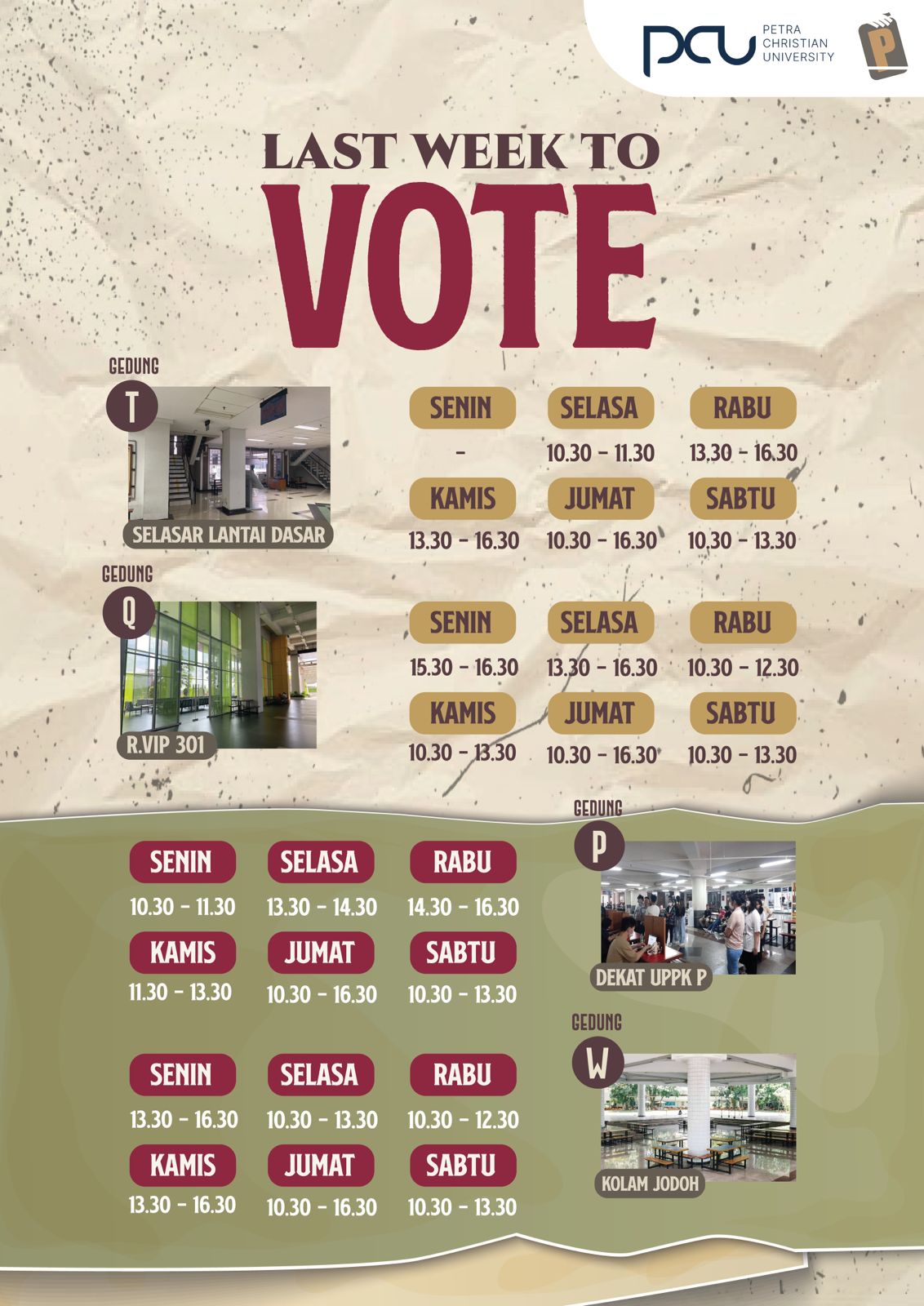Majelis Permusyarakatan Mahasiswa Universitas Kristen Petra Surabaya mengajak mahasiswa UK Petra untuk mengikuti pemilihan ketua Hima dan BPMF dan Ketua BEM untuk periode 2023/2024.