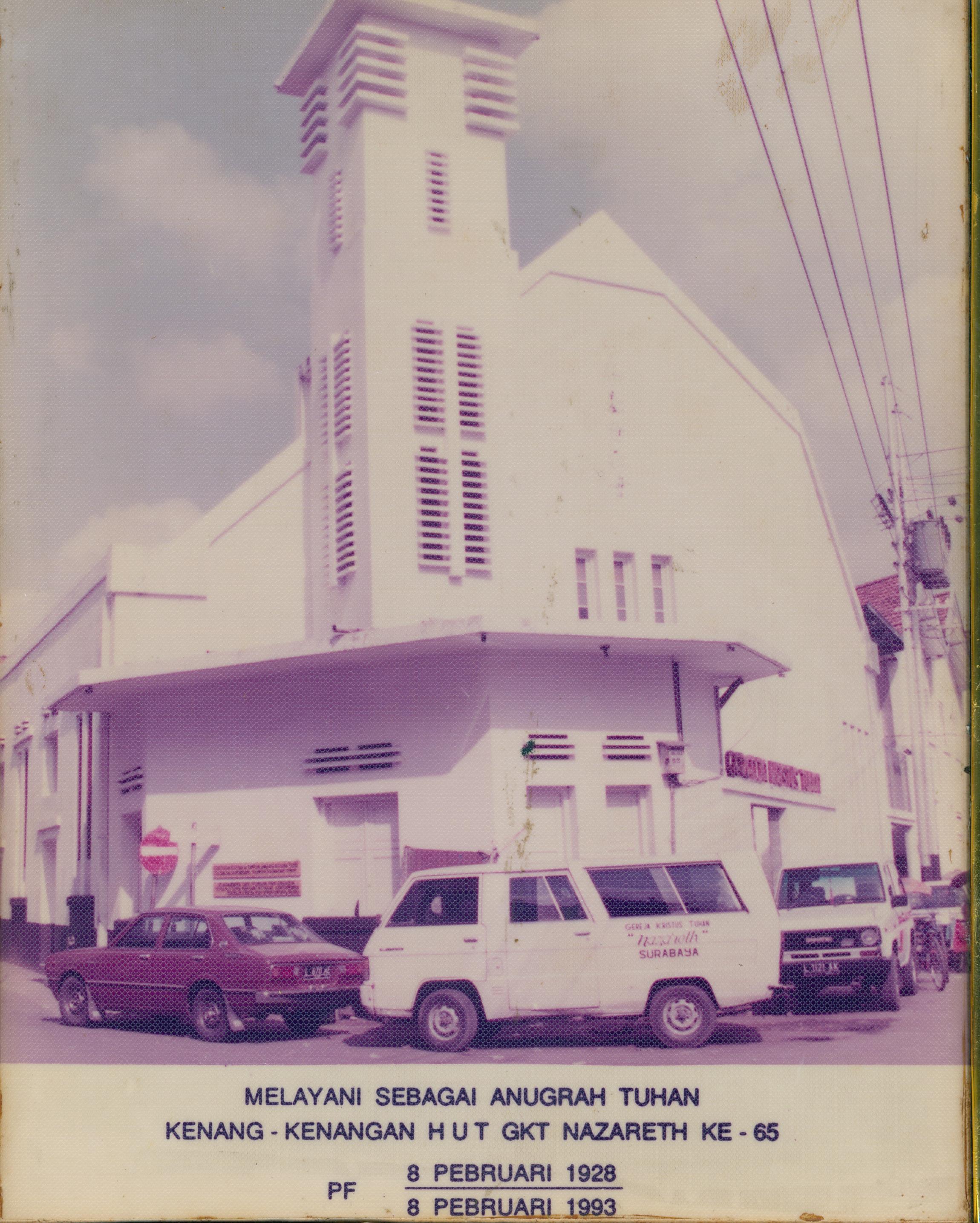 Nama gereja bertuliskan karakter Tionghoa ditutup menggunakan papan dicat putih pada masa Orde Baru