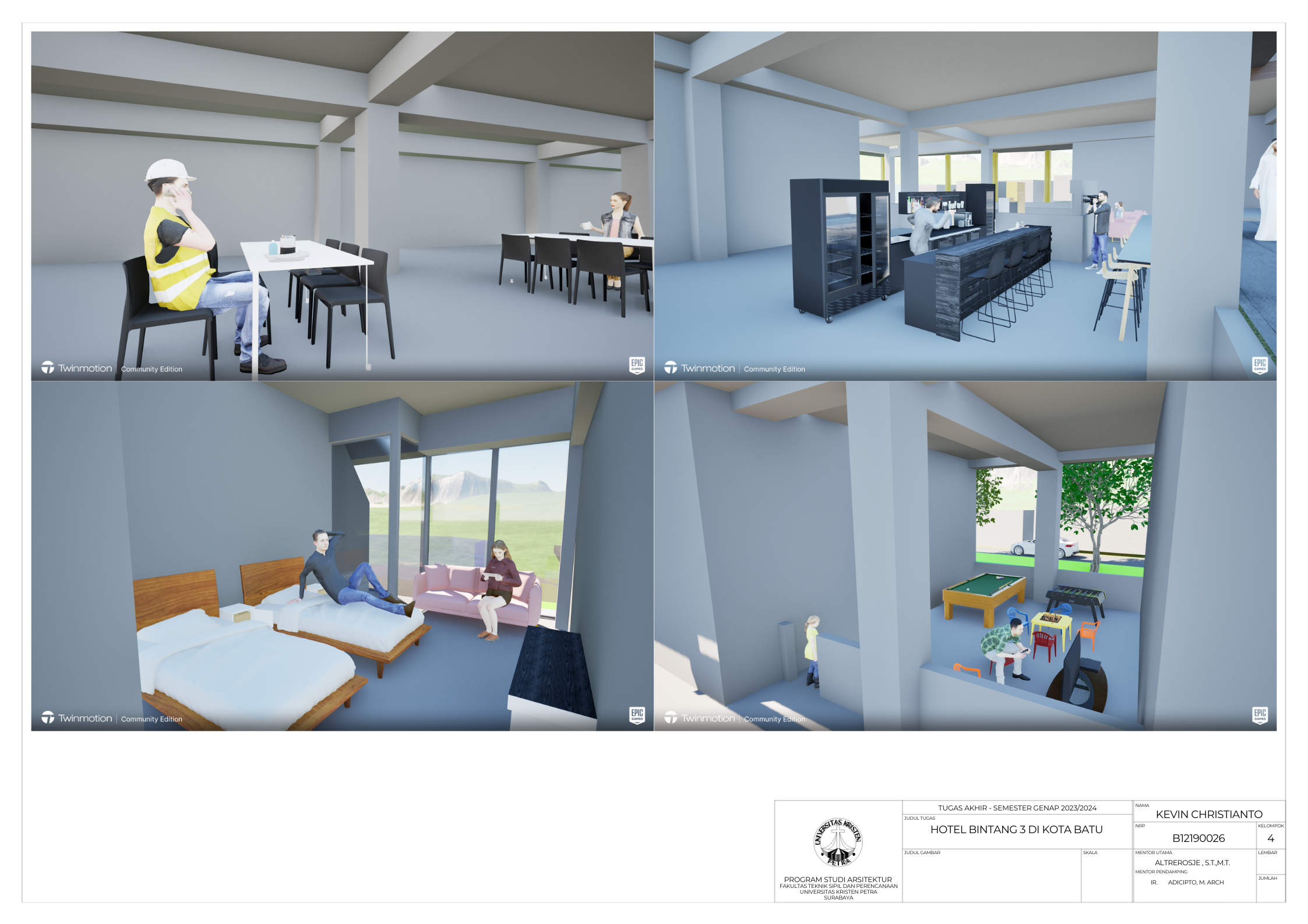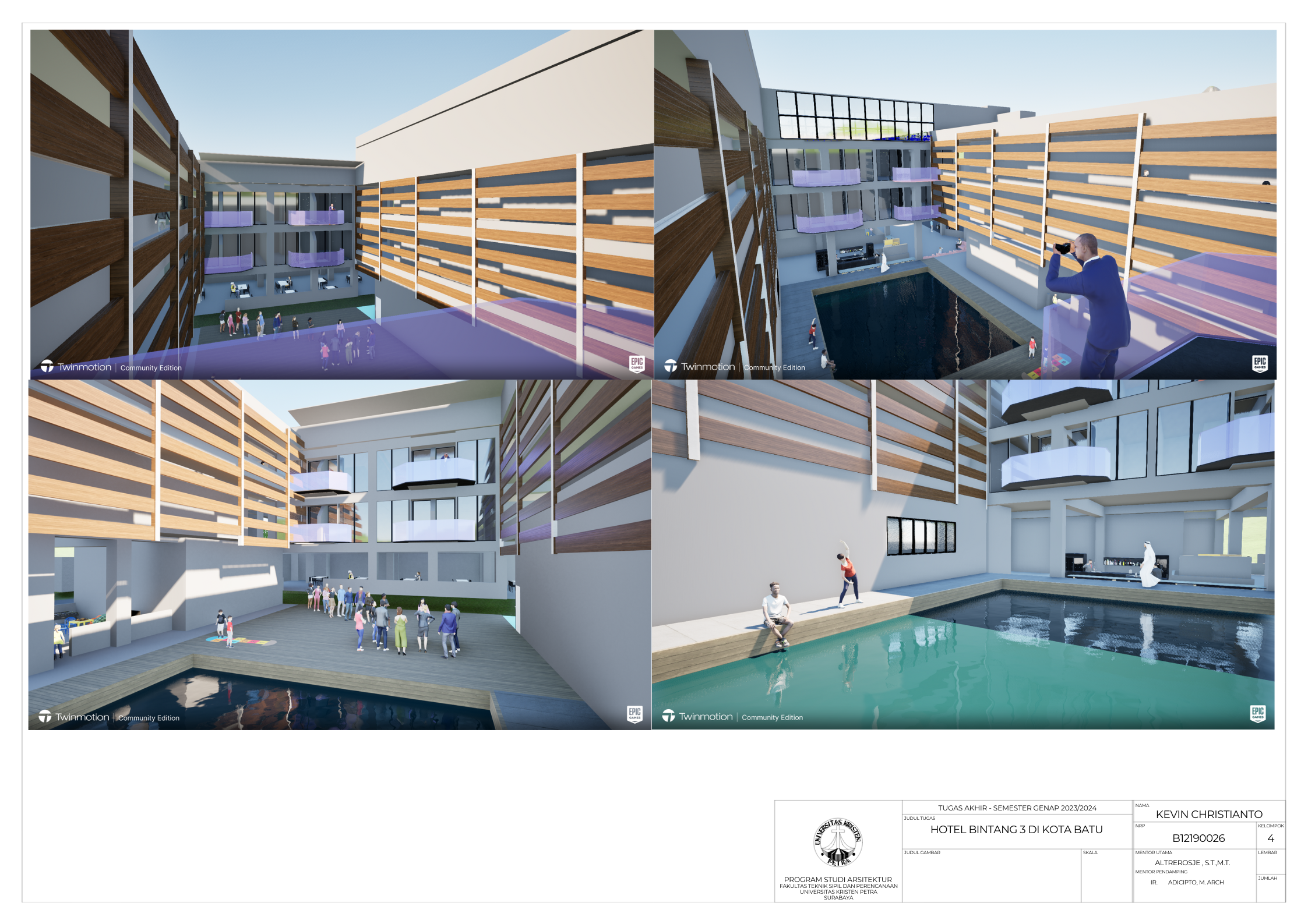 Kota Batu merupakan kota wisata yang ada di daerah pegunungnan dan karena memiliki banyaknya tempat wisata alami dan buatan . Kapasitas hotel di Kota Batu cenderung lebih sedikit daripada kapasitas tempat wisatanya, juga maraknya staycation yang membuat wisatawan staycation membutuhkan hotel untuk berlibur. Metode yang digunakan yaitu dengan merencanakan acara untuk mengisi kegiatan bagi pelaku staycation dan menyediakan ruangan indoor maupun outdoor yang diperlukan. Hasil yang diperoleh yaitu adanya ruang boardgame, ruang meeting atau ruang serbaguna, ruang outdoor di sebelah kolam renang, mini bioskop, outdoor lounge, dan ruang spa. Acara-acara yang diadakan hotel diselenggarakan di ruang serbaguna dan juga ruang outdoor. Ruang boardgame, mini bioskop, dan ruang spa merupakan fasilitas tambahan yang sebenarnya tidak wajib ada pada hotel bintang 3. Outdoor lounge dibuat sebagai fasilitas dengan memperhatikan pemandangan alam yang ada di sekitar site.