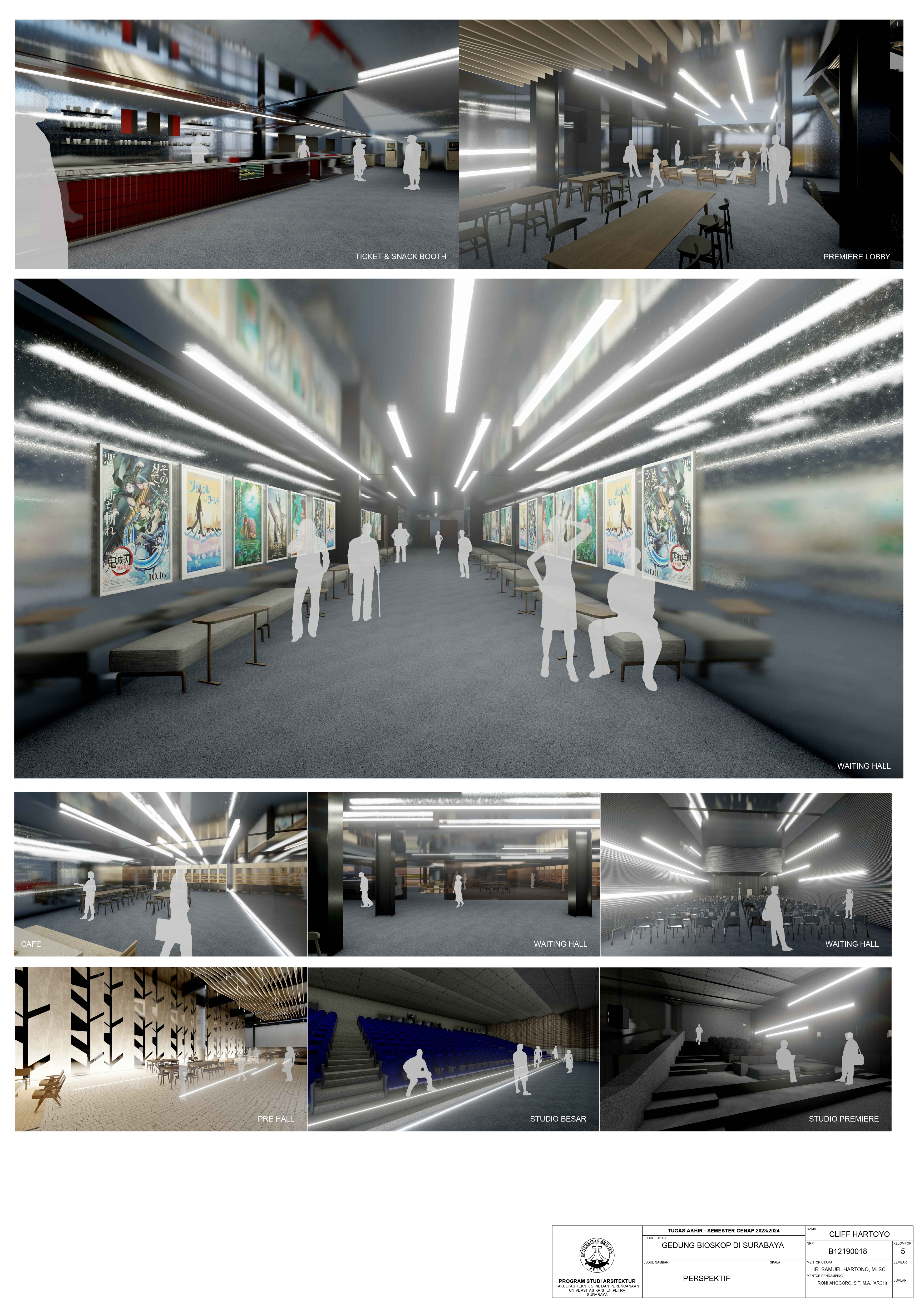 Bioskop adalah fasilitas menonton film layar lebar yang disediakan hampir di seluruh pusat perbelanjaan di Indonesia. Masyarakat Indonesia sangat suka menonton film layar lebar yang ditayangkan di bioskop. Ketika masyarakat Indonesia menonton film layar lebar di bioskop, mereka dapat menikmati keindahan dari seni film yang sudah diciptakan oleh pembuat film tersebut dengan penuh kepuasan melalui indera penglihatan dan pendengaran mereka. Kepuasan itu juga membuat penonton menikmati keindahan seni film tersebut sampai penuh perasaan yang masuk ke dalam perasaan hati dan ingatan mereka. Bioskop juga merupakan salah satu sarana masyarakat Surabaya untuk meninggalkan kesibukan dunia kerja dan studi. Penonton bisa menikmati film-film yang diputar dengan kualitas yang lebih tinggi dari pada menonton dengan televisi di rumah sendiri. Bioskop yang dirancang juga memiliki banyak sarana lainnya untuk relaksasi. Penulis ingin merancang bangunan bioskop yang lepas dari pusat perbelanjaan tapi masih bersifat rekreatif dan bangunan yang juga bisa mengisolasi pengunjung dari ruang luar bangunan dengan fasilitas-fasilitas yang memenuhi kebutuhan pengunjung untuk kabur dari kesibukan dunia kerja dan pendidikan dengan cara bangunan tidak memiliki bukaan seperti jendela untuk cahaya matahari dan angin masuk. Hasil yang diperoleh adalah bangunan bioskop yang lepas dari pusat perbelanjaan tapi bersifat rekreatif lalu bisa membantu pengunjung relaksasi dan meninggalkan kesibukan dunia kerja dan pendidikan.