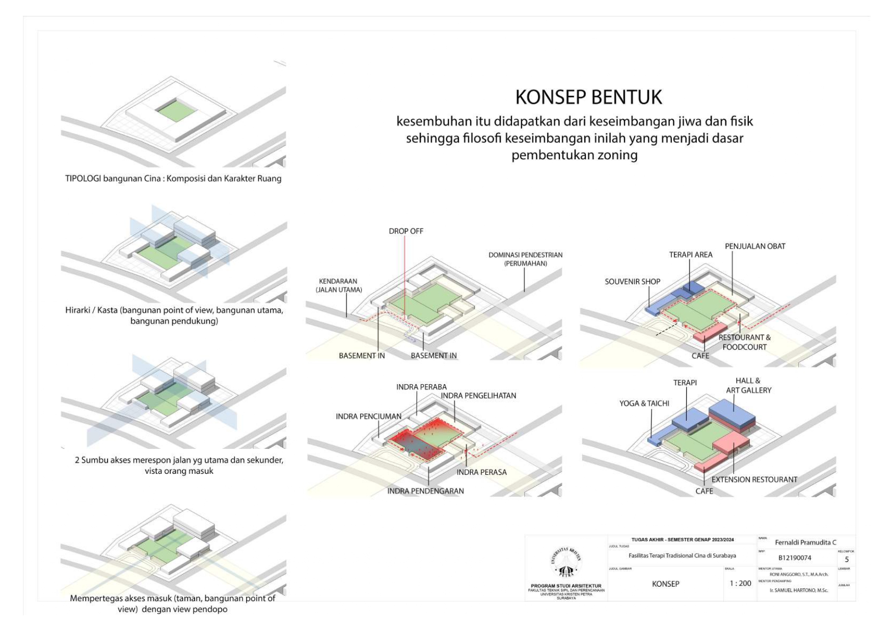 Fasilitas terapi tradisional Cina di Surabaya ini merupakan fasilitas rekreasi untuk masyarakat yang berkunjung baik dari masyarakat lokal kota Surabaya, Sidoarjo hingga masyarakat dari mancanegara yang hendak ke tempat pengobatan dan wisata, yang di mana tempat fasilitas ini dirancang dengan fungsi untuk memberikan kenyamanan seperti berada di alam aslinya. Tetapi terjadi penurunan dari jumlah pengguna pengobatan tradisional Cina. Penyebab dari berkurangnya penggunaan tersebut yaitu karna generasi muda yang tidak memahami akan pentingnya pengobatan dan lalu tidak dapat berbahasa Mandarin.
