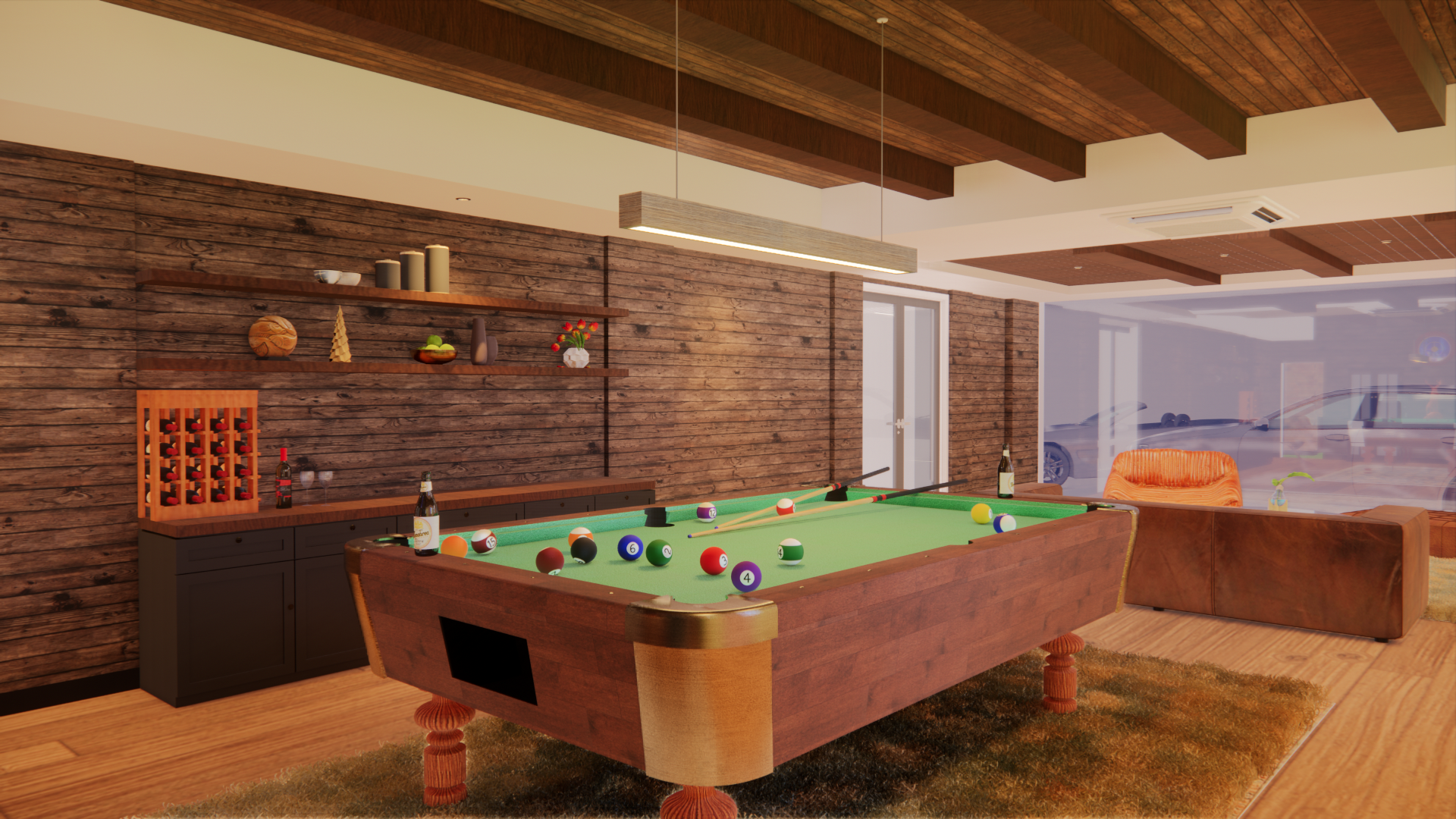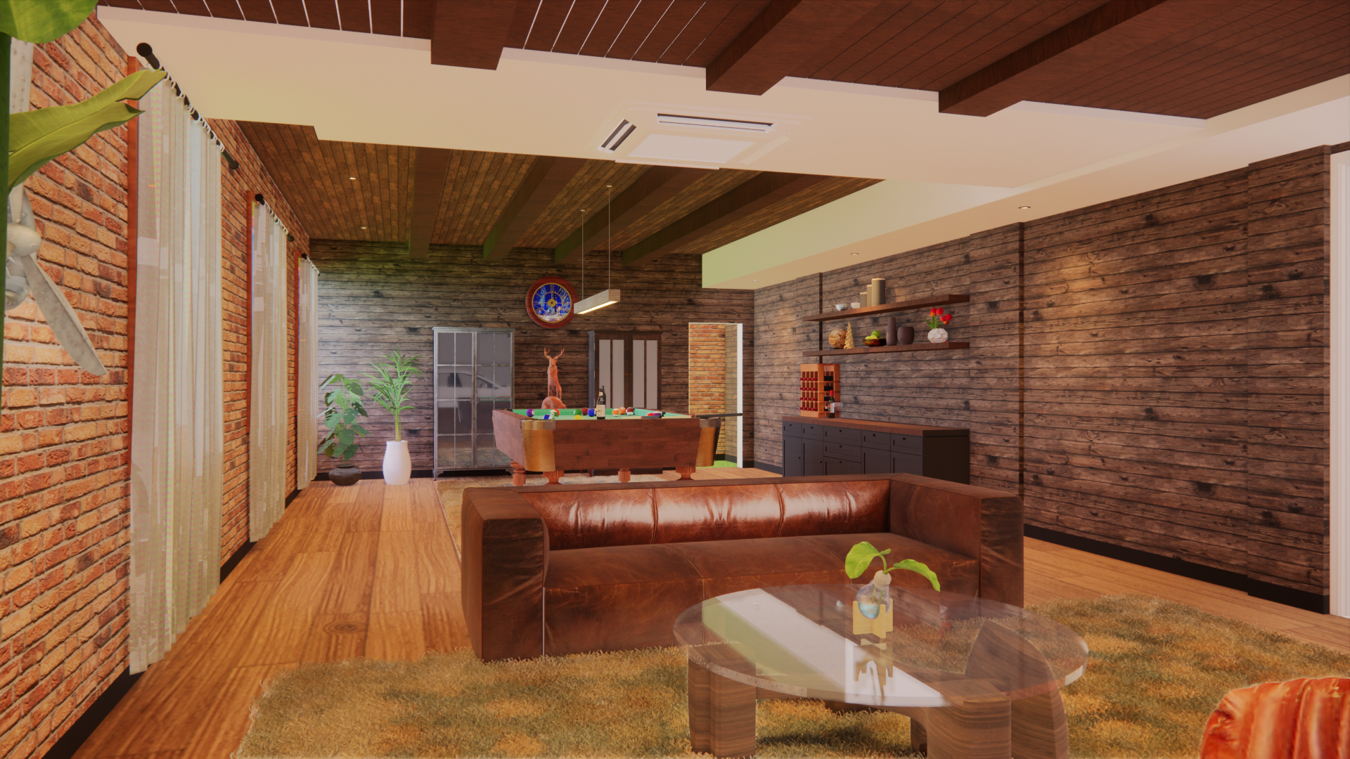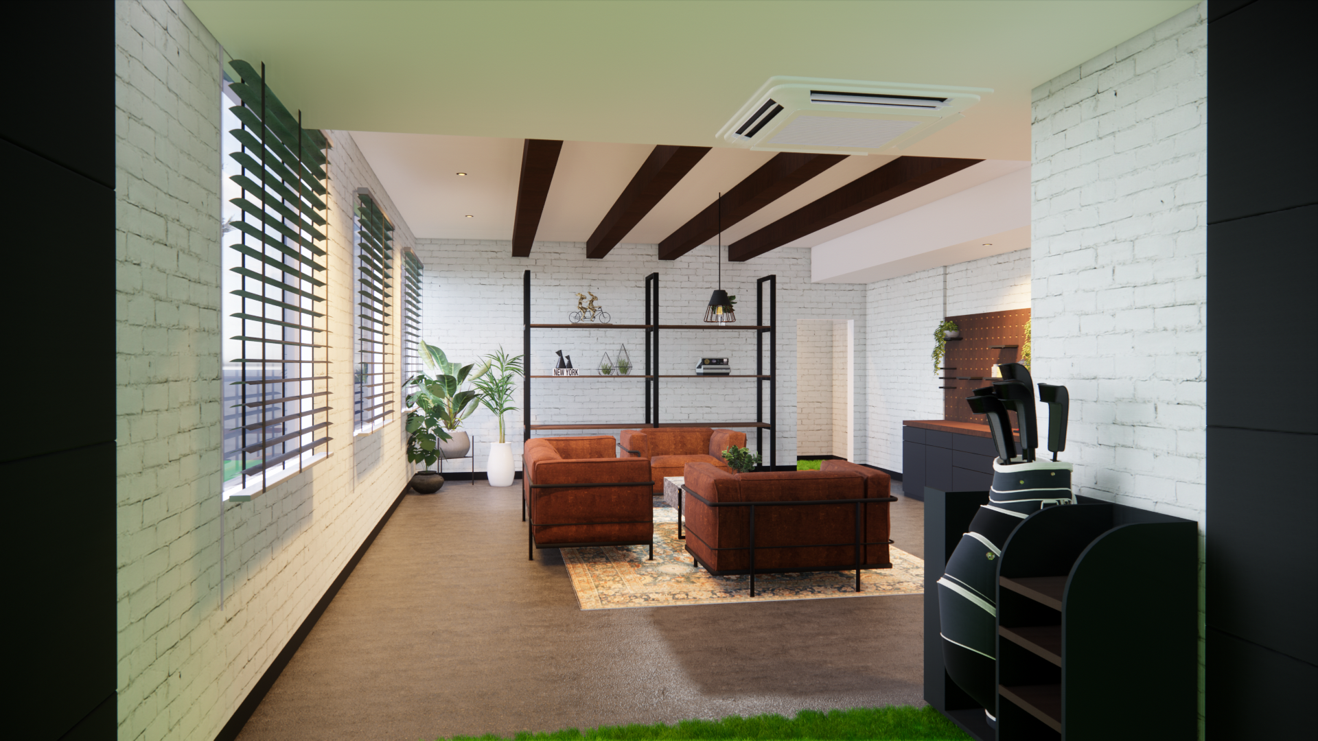 Penggunaan ruang hobi pada rumah tinggal di Indonesia masih cukup jarang. Terlebih ruang hobi merupakan kebutuhan tersier pada rumah tinggal, sehingga masyarakat di Indonesia lebih memanfaatkan ruangan untuk fungsi yang lebih bermanfaat. Sehingga hal ini menjadi sangat menarik untuk dikerjakan. Dalam menjalankan proyek ini, digunakan metode design thinking yang memiliki 5 tahapan yaitu empethize, define, ideate, prototype, dan test. Tahapan ini dilakukan untuk mengidentifikasi, merumuskan masalah, mencari solusi melalui desain, serta menguji hasil desain tersebut agar layak digunakan. Dengan metode design thinking yang dilakukan ini, didapatkan bahwa mendesain ruang hobi dan golf simulator pada rumah tinggal dapat dilakukan. Namun ada beberapa hal yang perlu diperhatikan yaitu, setiap alat simulator memiliki spesifikasi ukuran, jangkauan, dan model yang berbeda. Sehingga penting bagi desainer untuk memperhatikan hal ini. Karena akan berpengaruh pada ukuran dan model ruang yang dibutuhkan untuk memenuhi kebutuhan permainan golf.