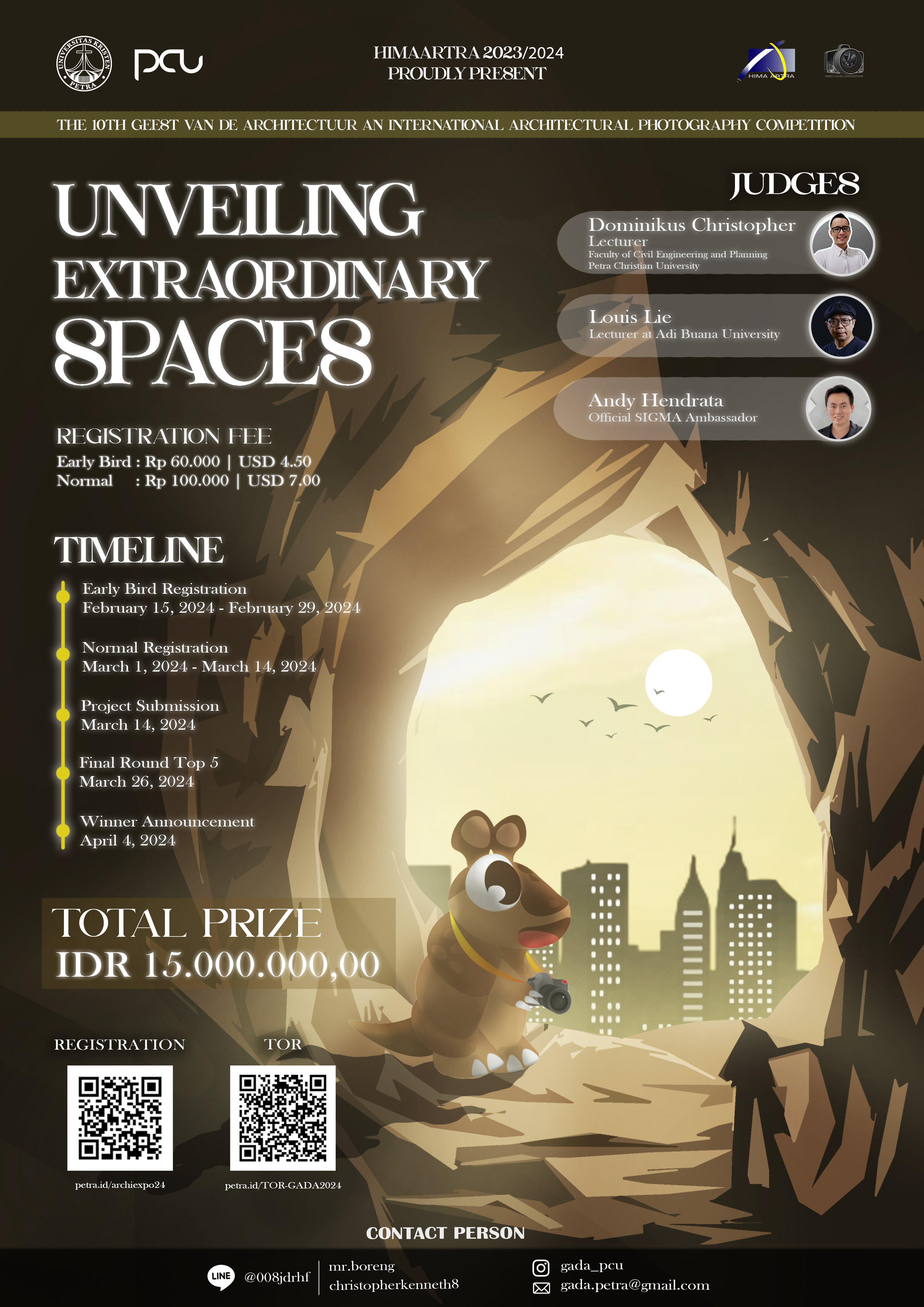 Geest Van De Architectuur atau lebih dikenal dengan GADA merupakan kompetisi fotografi arsitektur berskala internasional yang setiap tahunnya para peserta ditantang untuk menemukan dan mengambil foto lingkungan sekitar termasuk bangunan atau ruang lanskap sekaligus menjelaskan makna arsitektur di balik setiap permasalahan dan solusi dalam lingkup tersebut. tema kompetisi. Setiap foto yang dikirimkan harus dilengkapi dengan konsep arsitektural yang sesuai dengan tema kompetisi tahun ini. Produk-produk peserta inilah yang akan menjadi penilaian utama dalam kompetisi tersebut. Pendaftaran dibuka pada tanggal 15-29 Februari 2024. Untuk pengumuman pemenang pada tanggal 4 April 2024