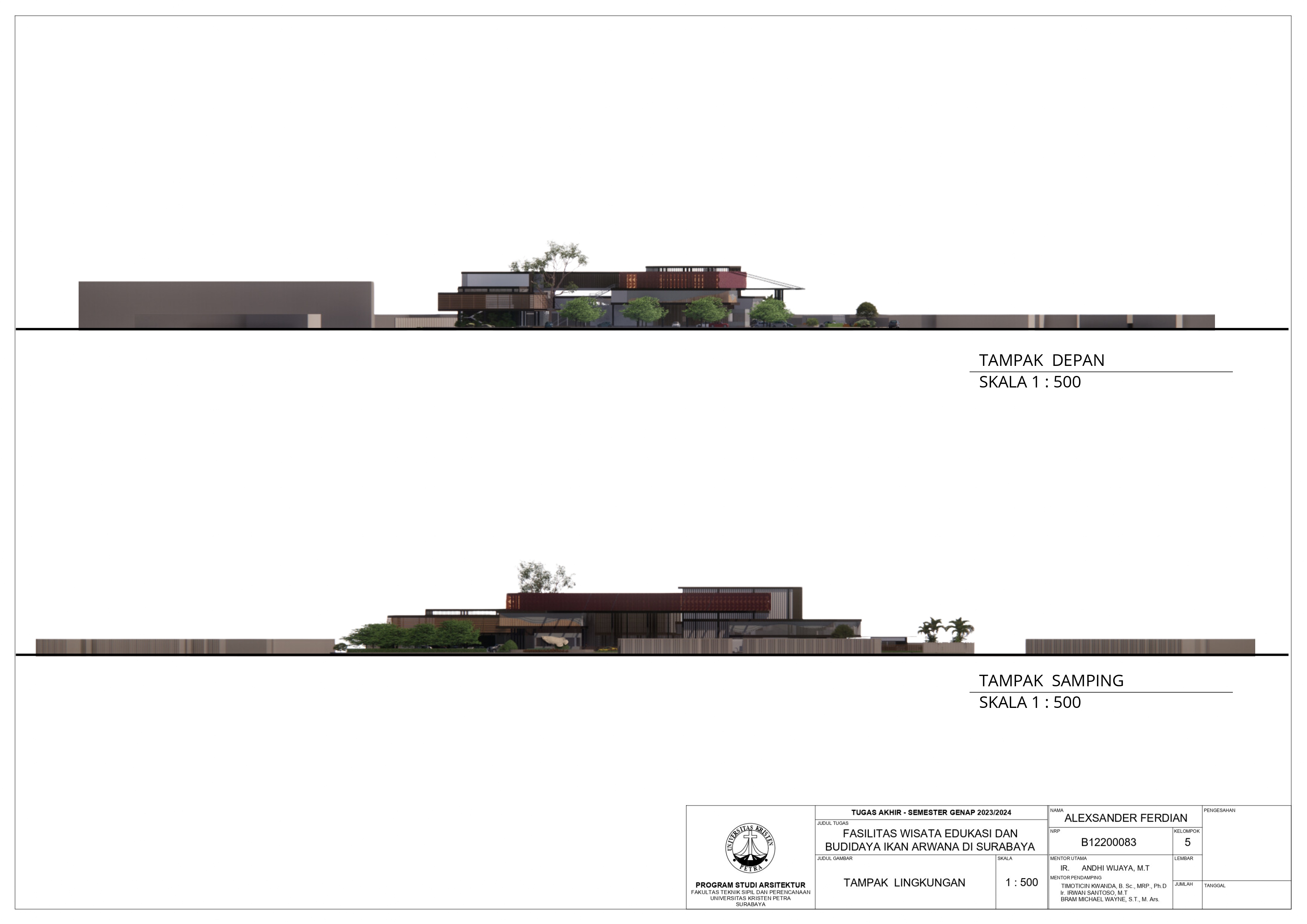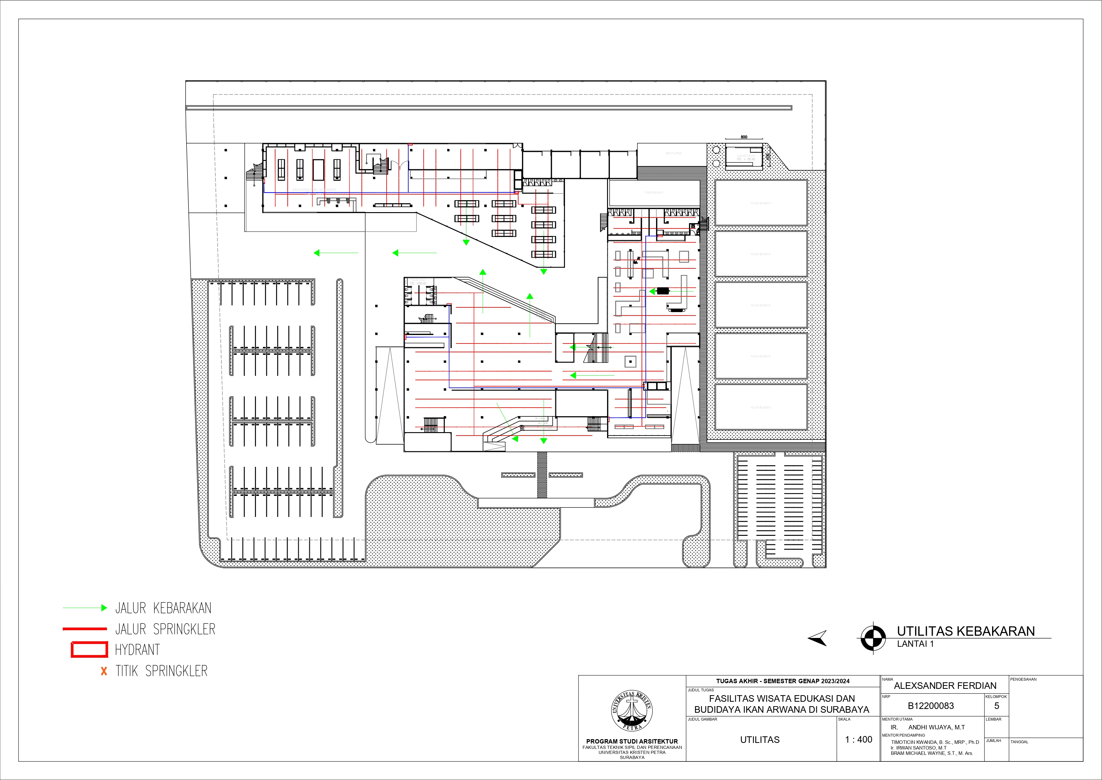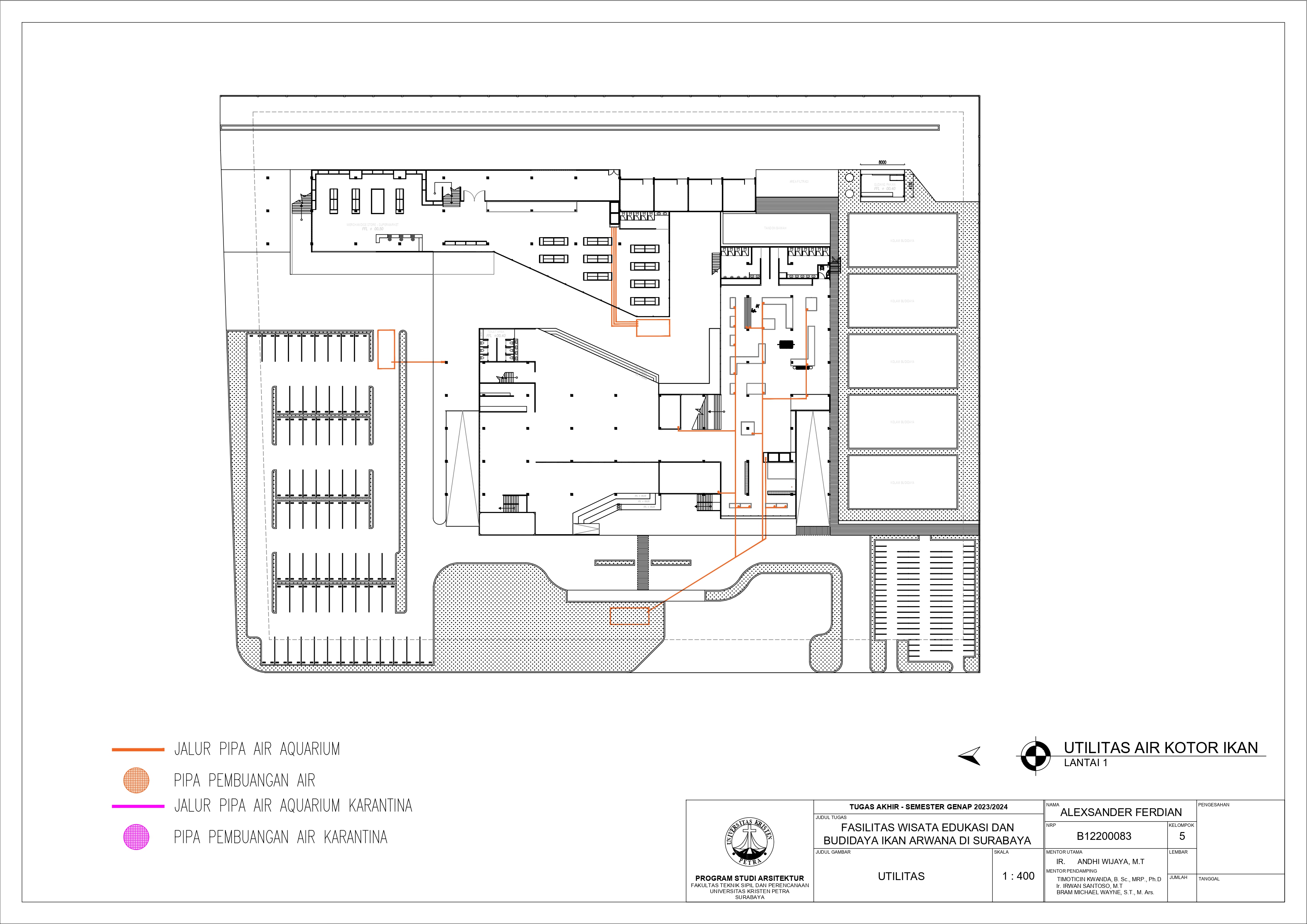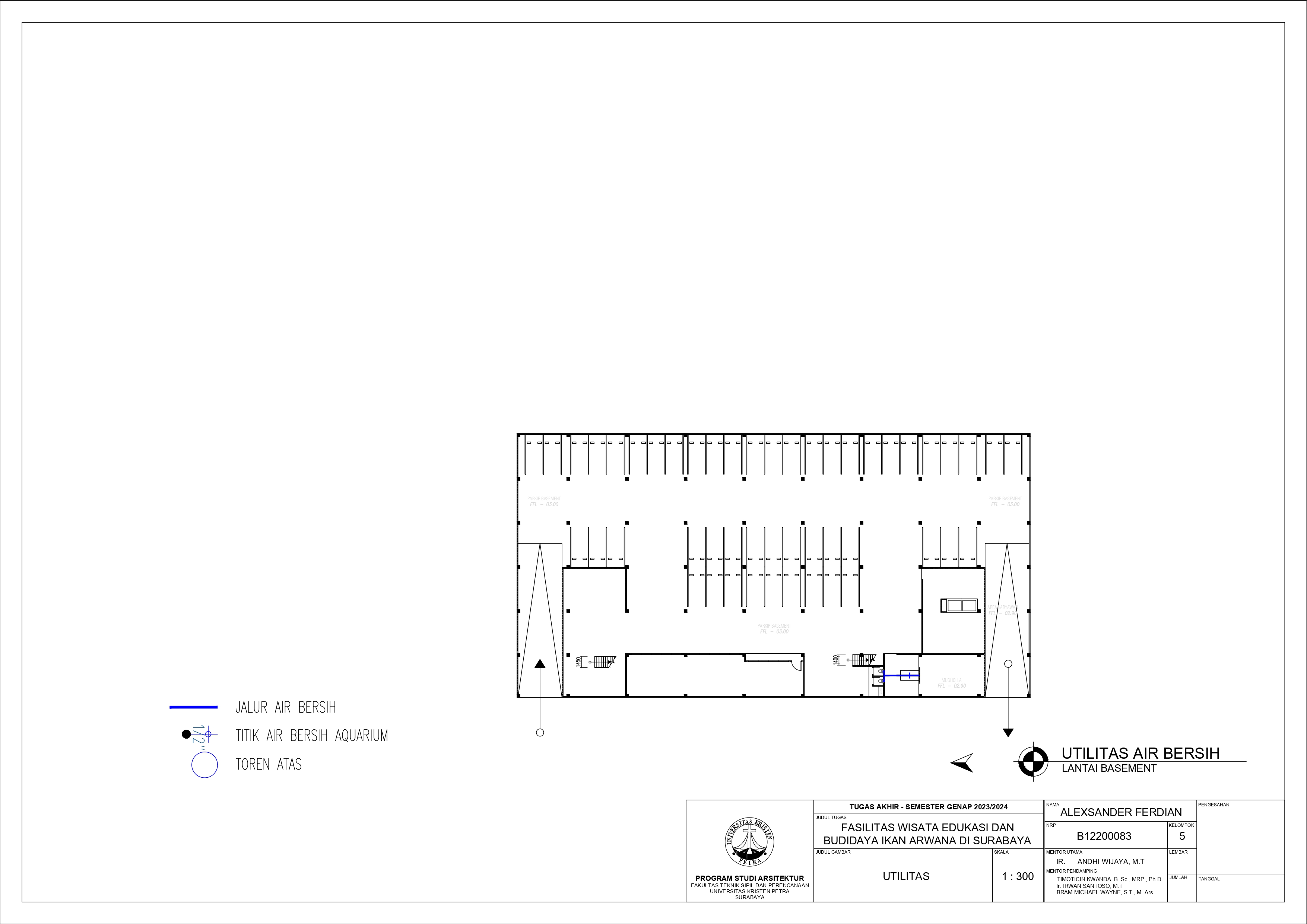 Ikan arwana adalah salah satu ikan hias yang sangat digemari masyarakat. Ikan arwana memiliki histori sebagai ikan pangan yang berkembang menjadi ikan hias yang sangat populer dan mahal. Ikan arwana memiliki julukan sebagai “Raja Ikan Hias” karena keindahannya. Dengan naiknya popularitas ikan arwana sebagai ikan hias membuat masyarakat memburu ikan arwana secara besar-besaran, sehingga populasi ikan arwana semakin menurun. Seiring berjalannya waktu upaya-upaya penangkaran berhasil dilakukan sehingga populasi ikan arwana bisa dikontrol. Namun, penangkaran-penangkaran dan fasilitas untuk ikan arwana belum tersebar secara merata di Indonesia. Fasilitas Wisata Edukasi dan Budidaya Ikan Arwana di Surabaya hadir untuk memfasilitasi kebutuhan masyarakat kota Surabaya. Perencanaan fasilitas ini bertujuan untuk memberikan edukasi kepada masyarakat serta memberikan fasilitas untuk masyarakat menyalurkan hobi di bidang ikan arwana. Fasilitas akan menghadirkan sebuah galeri untuk pembelajaran tentang ikan arwana dan menghadirkan fasilitas budidaya untuk masyarakat menyalurkan hobi. Dalam proses desain, fasilitas ini menggunakan pendekatan utilitas dengan konsep hemat energi. Pendekatan utilitas digunakan untuk memaksimalkan penggunaan energi dengan memanfaatkan desain bangunan dengan alam.