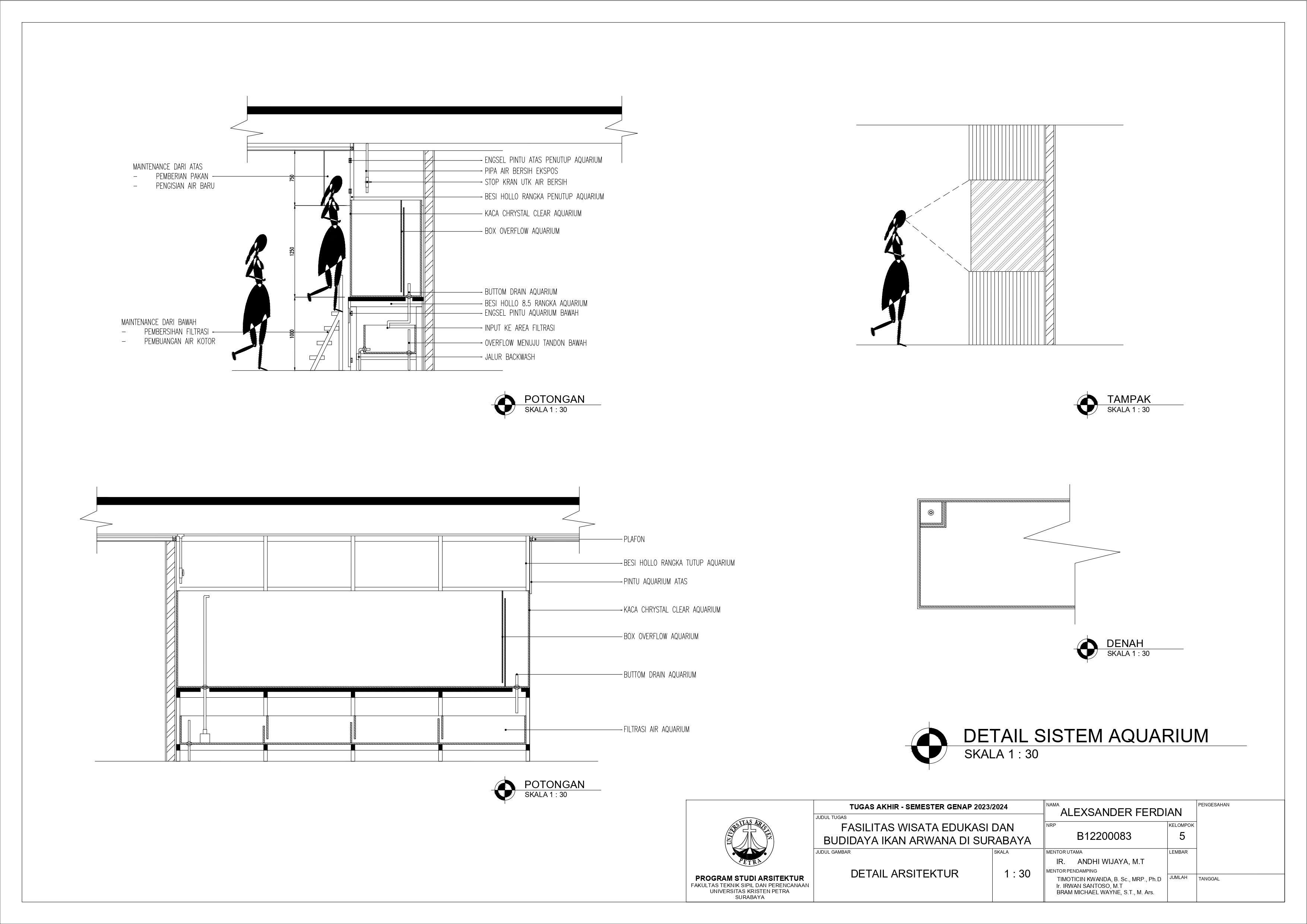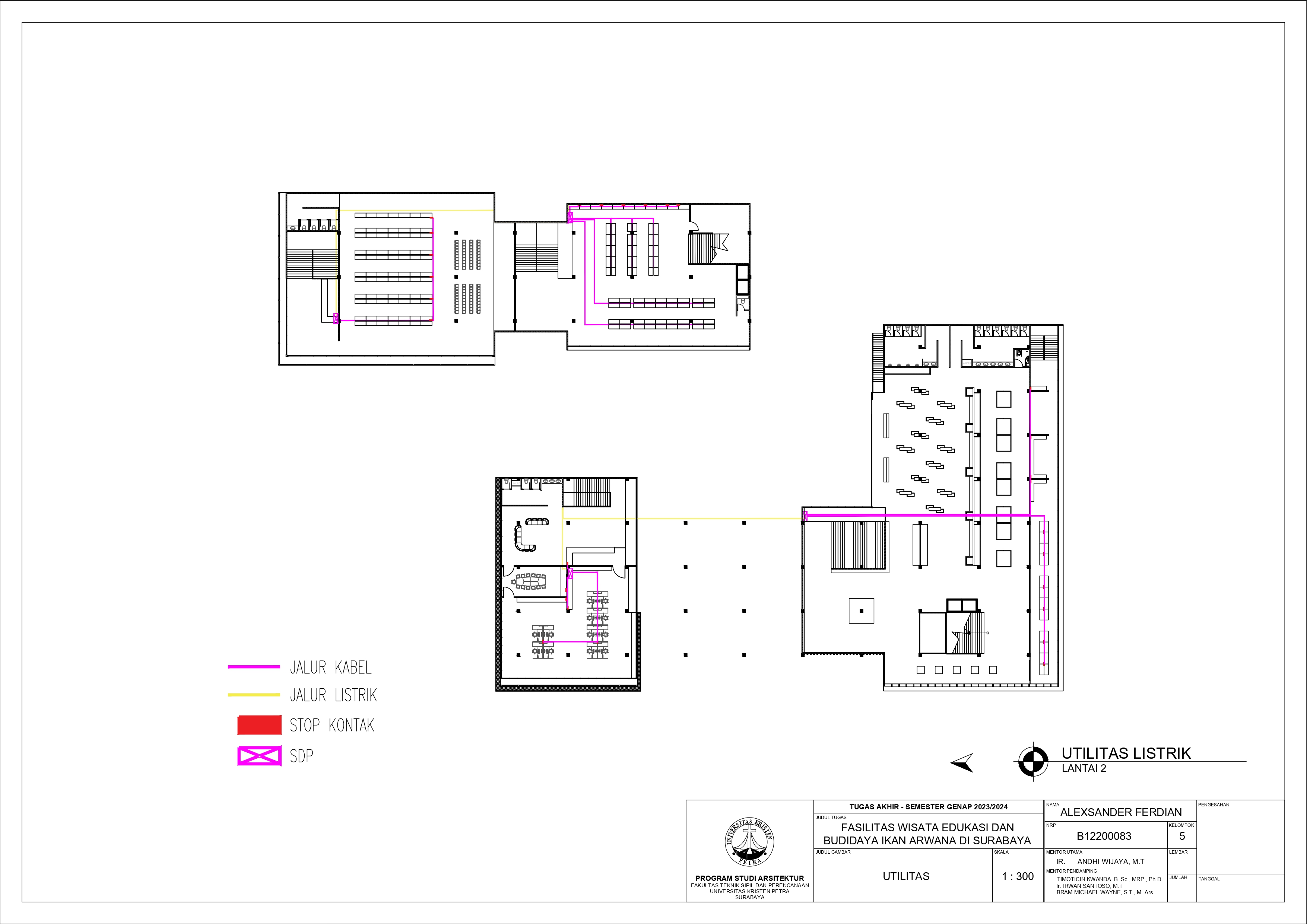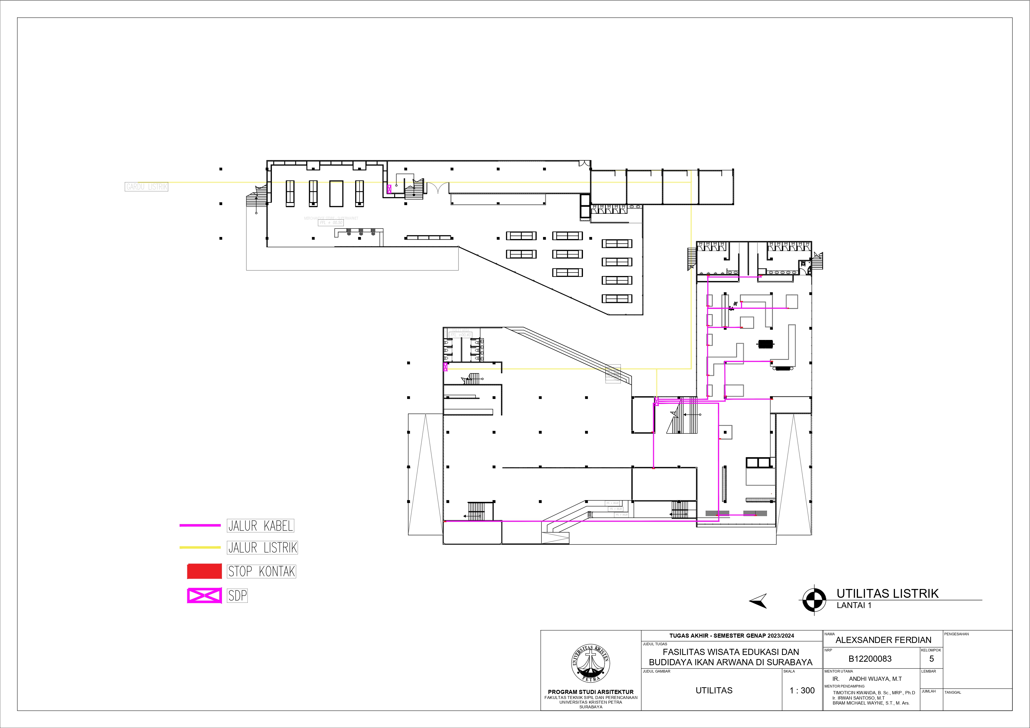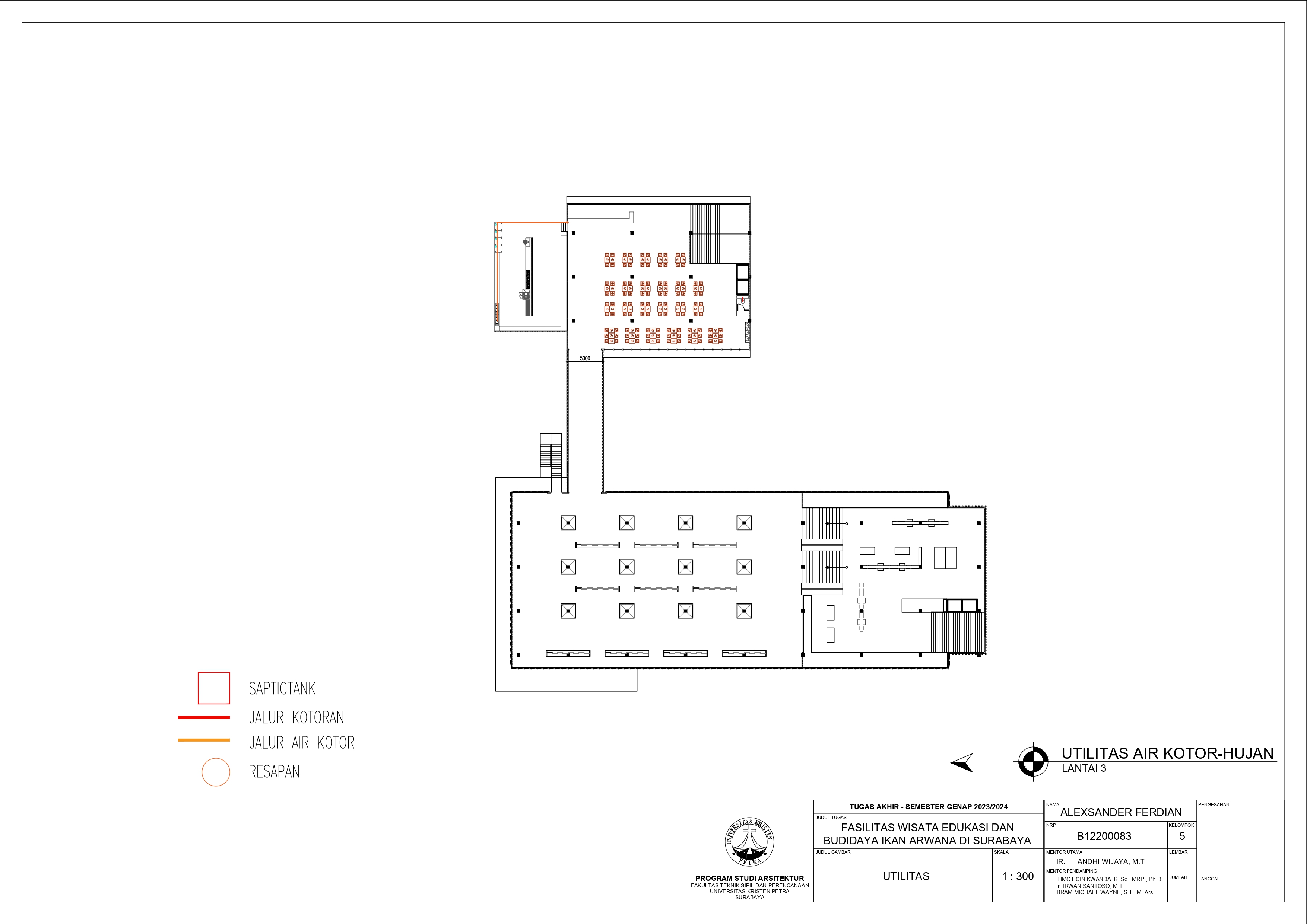 Ikan arwana adalah salah satu ikan hias yang sangat digemari masyarakat. Ikan arwana memiliki histori sebagai ikan pangan yang berkembang menjadi ikan hias yang sangat populer dan mahal. Ikan arwana memiliki julukan sebagai “Raja Ikan Hias” karena keindahannya. Dengan naiknya popularitas ikan arwana sebagai ikan hias membuat masyarakat memburu ikan arwana secara besar-besaran, sehingga populasi ikan arwana semakin menurun. Seiring berjalannya waktu upaya-upaya penangkaran berhasil dilakukan sehingga populasi ikan arwana bisa dikontrol. Namun, penangkaran-penangkaran dan fasilitas untuk ikan arwana belum tersebar secara merata di Indonesia. Fasilitas Wisata Edukasi dan Budidaya Ikan Arwana di Surabaya hadir untuk memfasilitasi kebutuhan masyarakat kota Surabaya. Perencanaan fasilitas ini bertujuan untuk memberikan edukasi kepada masyarakat serta memberikan fasilitas untuk masyarakat menyalurkan hobi di bidang ikan arwana. Fasilitas akan menghadirkan sebuah galeri untuk pembelajaran tentang ikan arwana dan menghadirkan fasilitas budidaya untuk masyarakat menyalurkan hobi. Dalam proses desain, fasilitas ini menggunakan pendekatan utilitas dengan konsep hemat energi. Pendekatan utilitas digunakan untuk memaksimalkan penggunaan energi dengan memanfaatkan desain bangunan dengan alam.