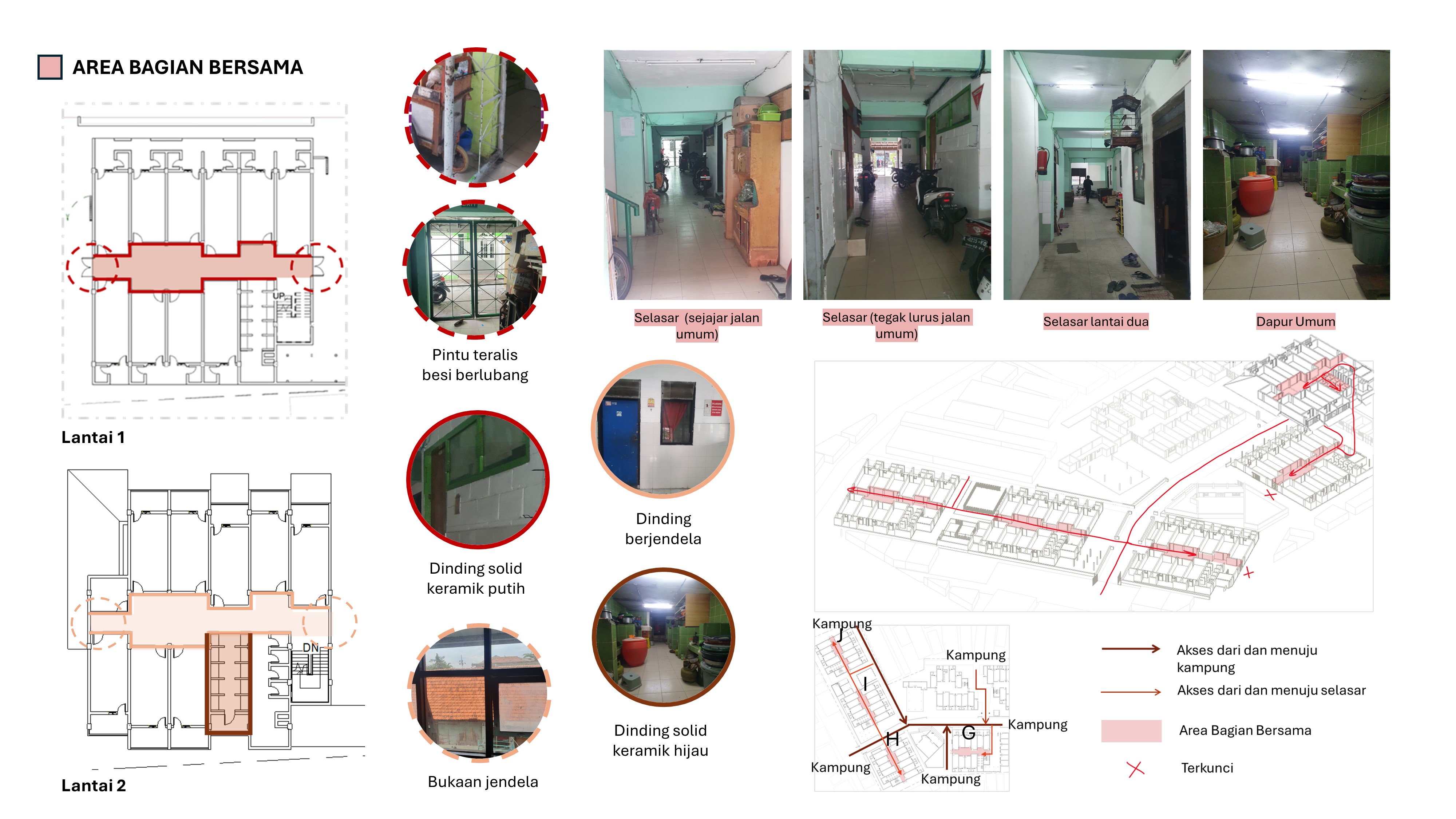 Banyaknya permasalahan mengenai isu kriminalitas di hunian, khususnya hunian bersama membuat hidup warganya menjadi kurang sejahtera. Di Surabaya, terdapat Rusunawa Dupak Bangunrejo yang memiliki kejahatan pencurian yang cukup sering berdasarkan dari data kepolisian setempat dan juga penelitian sebelumnya jika dibandingkan dengan rusunawa sejenis. Dalam mencegah terjadinya kejahatan yang ada di rusunawa, penelitian ini akan mencari hubungan antara penceahan kriminalitas dengan kualitas ruang di Rusunawa Dupak Bnagunrejo. Tujuannya adalah untuk memperoleh kualitas ruang yang berperan terhadap terjadinya kejahatan di Rusunawa Dupak Bangunrejo dan memberikan usulan desain yang dapat meningkatkan kualitas ruang rawan tersebut. Metode yang digunakan adalah metode deskriptif dengan bantuan studi kasus. Hasilnya menunjukkan bahwa adanya hubungan antara kualitas ruang dengan parameter pencegahan kriminalitas. Dalam konteksnya dalam Rusunawa Dupak Bangunrejo, di lokasi tersebut ditemukan adanya tiga ruang dari pengelompokan ruang terjadi kriminalitas yang elemen kualitas ruangnya tidak berperan terhadap pencegahan kriminalitas di lokasi. Ruang-ruang yang memiliki elemen kualitas ruang yang paling buruk terhadap pencegahan kriminalitas yang ada di Rusunawa Dupak Bangunrejo kemudian dibuat prototype dan saran desain berdasarkan elemen-elemen yang masih kurang untuk dapat ditingkatkan.
