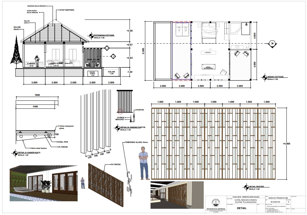 Kabupaten Tulungagung merupakan salah satu kabupaten di Jawa Timur yang berada pada wilayah laut selatan Jawa yang memiliki potensi alam pantai yang dapat dimanfaatkan sebagai pusat pariwisata. Salah satu pusat pariwisata di Kabupaten Tulungagung adalah Pantai Klatak, yang mana area tersebut dilewati oleh Jalur Lintas Selatan Pulau Jawa sehingga memudahkan akses pengunjung menuju Pantai Klatak. Namun, area tersebut belum terdapat fasilitas yang memperkenalkan Pantai Klatak kepada wisatawan yang datang, sehingga akan lebih baik jika wisatawan dapat kenal dan merasakan tinggal ditengah alam pesisir dari Pantai Klatak dari fasilitas penginapan berupa hotel resor bintang 4. Pendekatan yang diambil merupakan pendekatan sirkulasi yang mana memberikan suatu makna dan kesan terhadap ruang yang terbentuk dalam desain. Dalam sirkulasi tersebut terdapat hubungan antar ruang yang optimal serta membentuk suatu vista dari pengalaman ruang yang dirasakan. Perencanaan fasilitas penginapan bertujuan untuk mengakomodasi para wisatawan yang ingin kenal serta menikmati keindahan alam pesisir di Pantai Klatak. Dalam desain, fasilitas yang ditawarkan berupa standar hotel resor bintang 4 yang mana terdapat fasilitas penginapan resor, kamar standar, spa, kolam renang, restoran, serta area lansekap yang dikelilingi oleh alam pesisir. Semua area fasilitas yang di desain, memanfaatkan secara optimal dari alam pedisir dari Pantai Klatak sehingga membentuk sebuah karakteristik ruang dengan menciptakan suasana yang diinginkan.