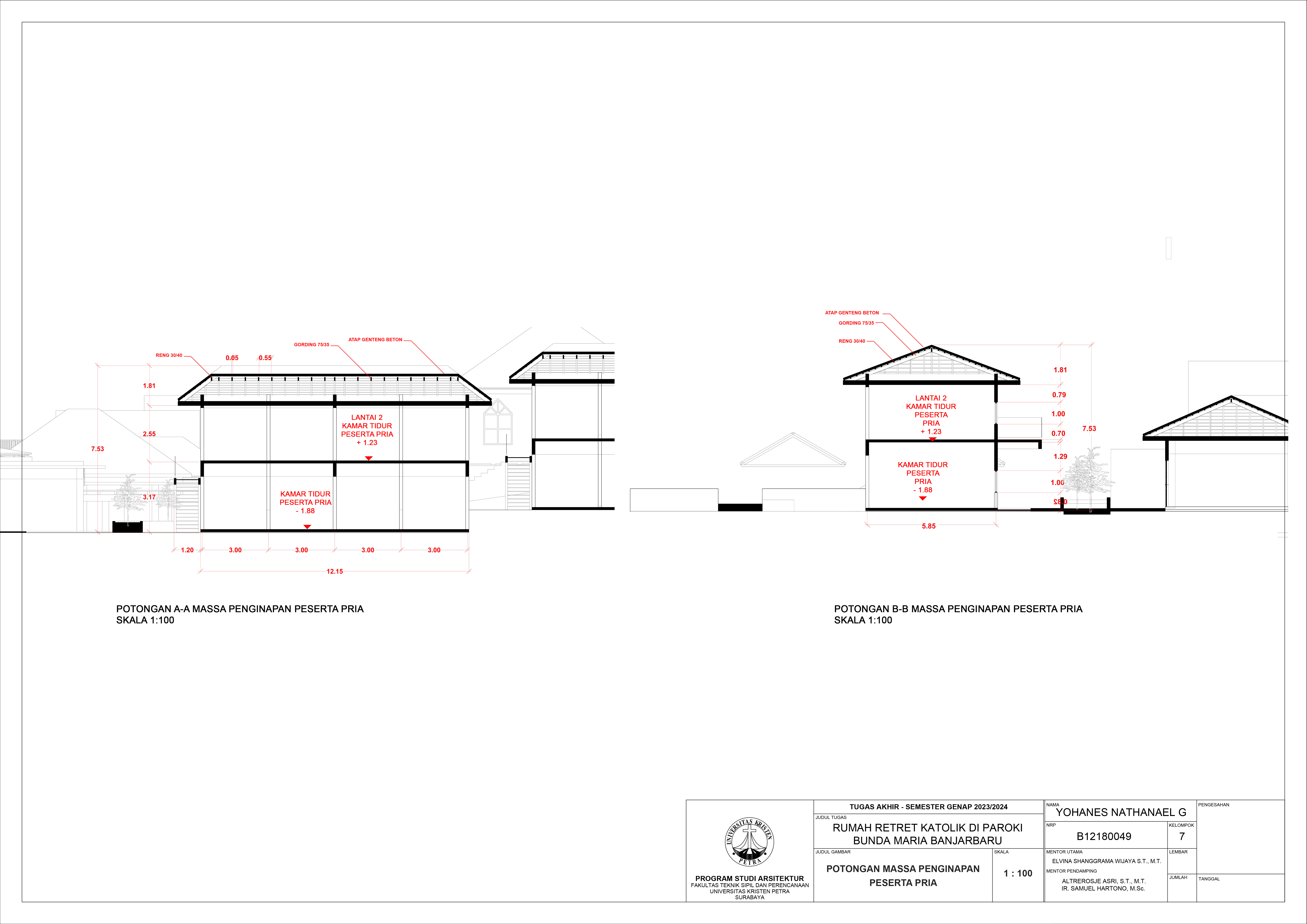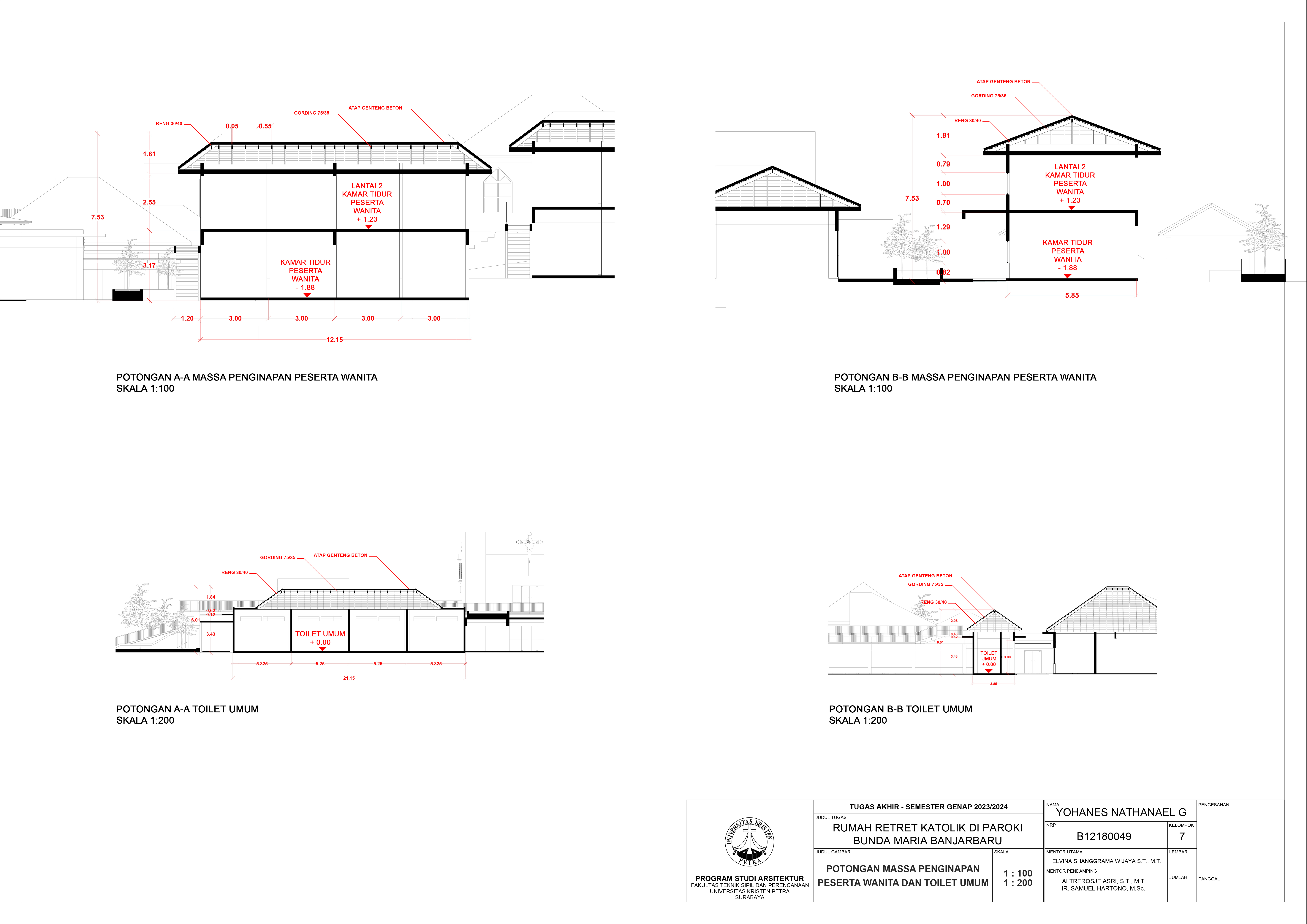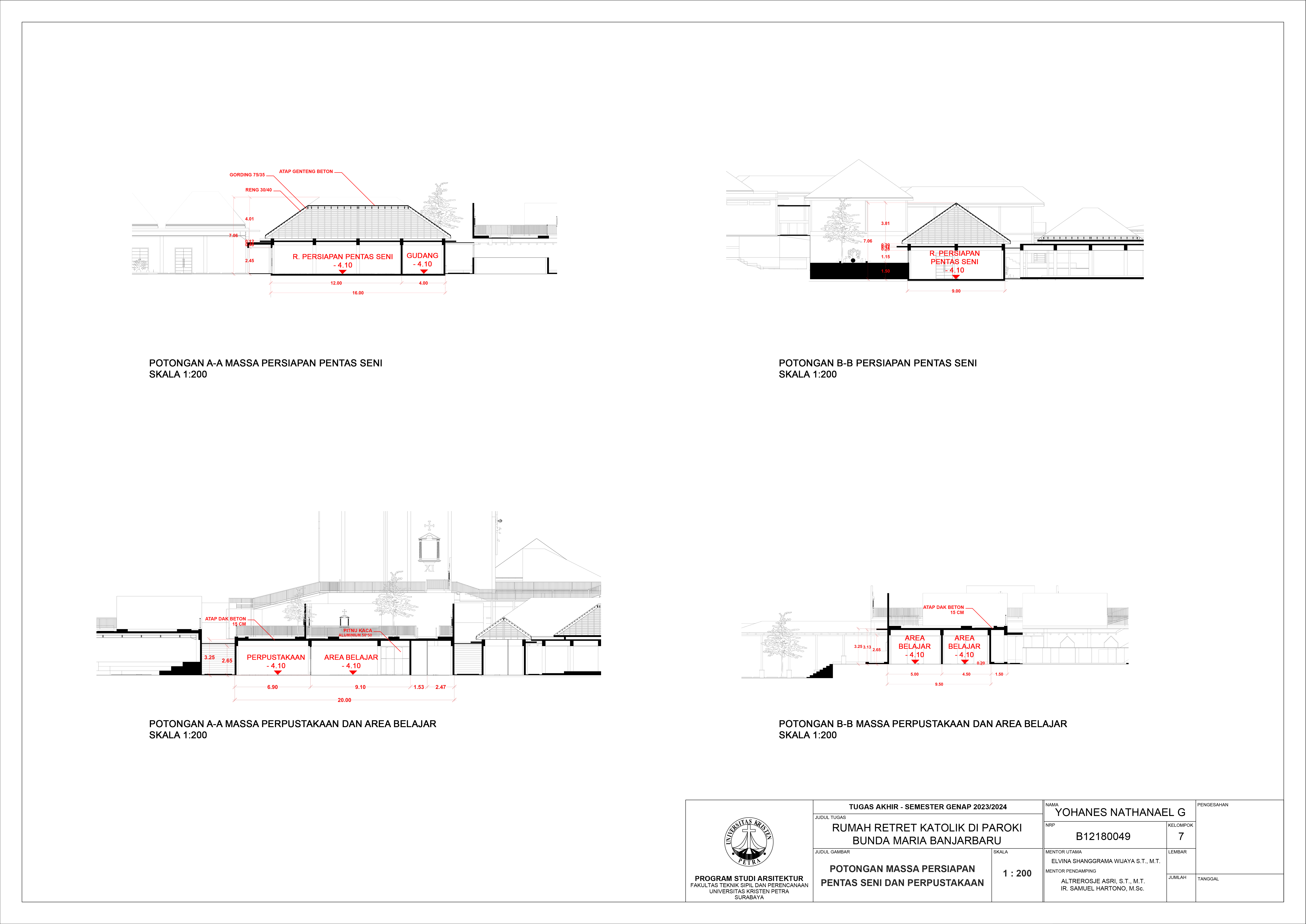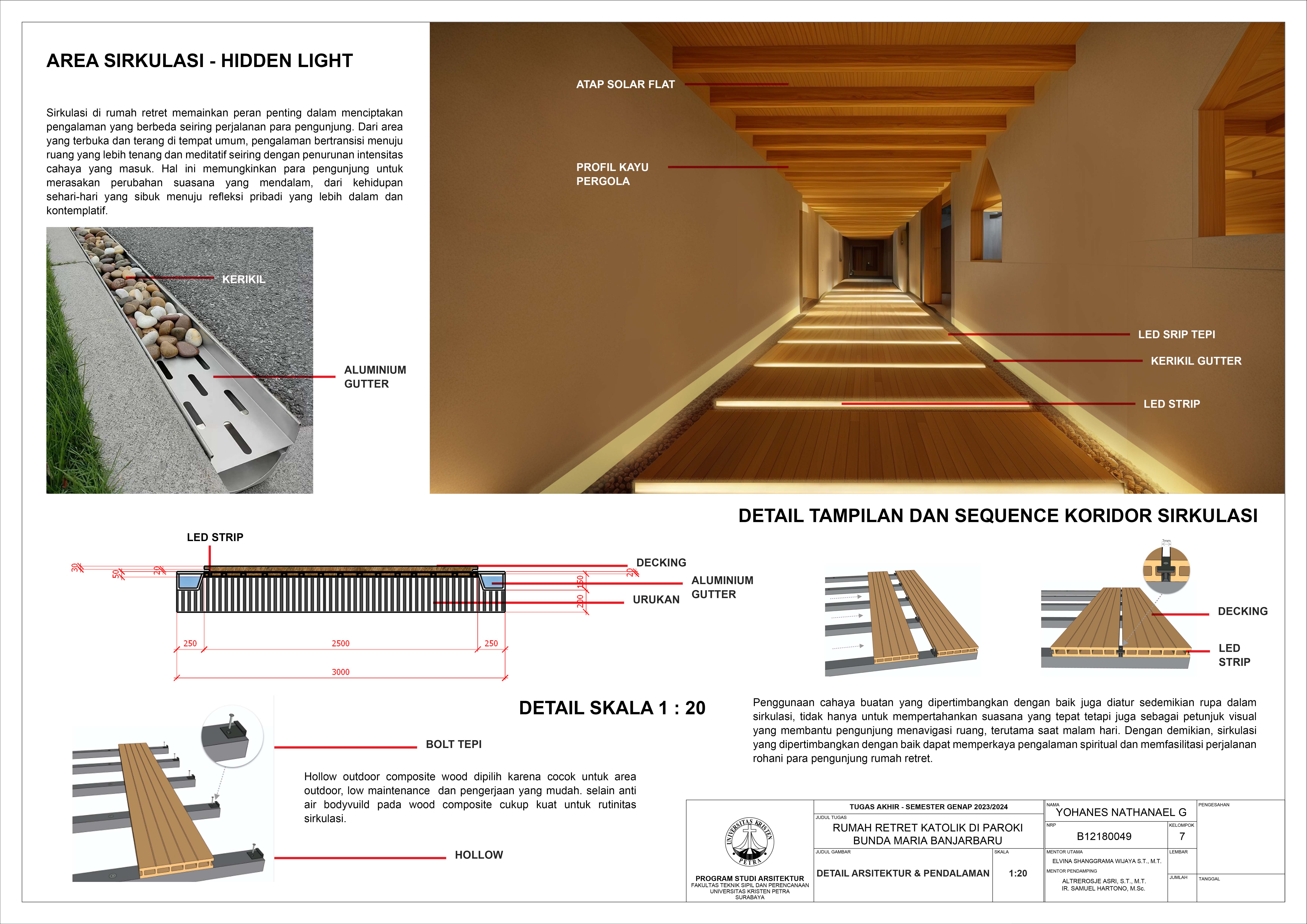 dan juga dihadapkan pada tantangan Ekonomi yang meningkat. Situasi ini menyoroti perlunya ruang-ruang suciuntuk memperdalam iman dan spiritualitas di tengah kesibukan dan tekanan kehidupan modern. Rumah RetretKatolik di Paroki Bunda Maria Banjarbaru adalah sebuah respons kebutuhan mendalam komunitas Katolik diKalimantan Selatan untuk memiliki tempat refleksi spiritual yang tenang dan mendalam. Perancangan RumahRetret ini menawarkan solusi dengan menyediakan fasilitas komprehensif termasuk kapel, ruang doa, aula, areahunian, ruang makan, serta fasilitas pendukung lainnya seperti toilet umum dan area parkir. Desainnyamengutamakan kesakralan dan kenyamanan personal dengan pendekatan holistik melalui penggunaan pencahayaan alami, lanskap yang terintegrasi, dan akustik yang mendukung. Penggunaan material yang dipilih dengan hati-hati dan penempatan strategis elemen religius juga memperkuat konsep desain yang mengutamakan kontemplasi dan interaksi spiritual. Inisiatif ini bertujuan untuk memperbarui dan memodernisasi fasilitas spiritual, yang ditunjukkan dengan transformasi dari Wisma Sikhar yang sudah tua menjadi Rumah Retret modern yang memenuhi kebutuhan spiritual saat ini sambil mempertahankan signifikansi historis dan spiritualnya.