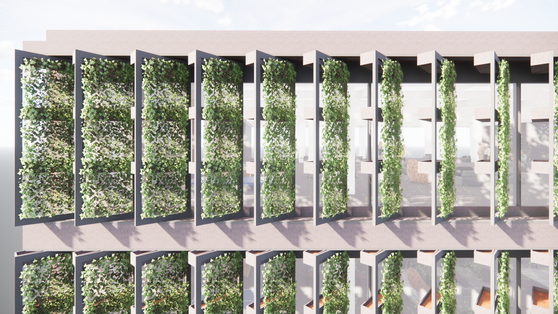 Berkurangnya lahan hijau akibat dari pembangunan yang terus menerus menyebabkan banyak bangunan yang menerapkan sistem vertical garden yang memiliki banyak manfaat seperti sebagai penyaring polusi udara, memberikan kenyamanan thermal pada bangunan, serta kesehatan dan well-being manusia. Namun penggunaan vertical garden khususnya dalam bentuk secondary facade dapat berdampak pada ketidaknyamanan visual salah satunya karena faktor ketebalan, jenis tanaman, maupun penyusunan vertical garden yang justru menyebabkan terhalangnya cahaya alami untuk masuk ke dalam bangunan sehingga menyebabkan bertambahnya penggunaan energi oleh pencahayaan buatan. Tujuan penelitian ini adalah mengevaluasi nilai DF dari modul fasad dengan kerapatan daun yang berbeda dan mendesain modul green façade yang memberikan kenyamaman pencahayaan yang memenuhi standar minimum pencahayaan SNI untuk aktivitas ruang kantor. Penelitian ini bermanfaat untuk membantu arsitek dalam mendesain green facade pada ruang kantor agar memiliki pencahayaan yang optimal. Penelitian ini menggunakan metode kuantitatif melalui eksperimen dengan membuat 3 modul green facade lalu menghitung nilai DF dari ketiga modul tersebut lalu dianalisa modul fasad manakah yang memiliki nilai DF yang paling memenuhi standar SNI untuk ruang kantor.