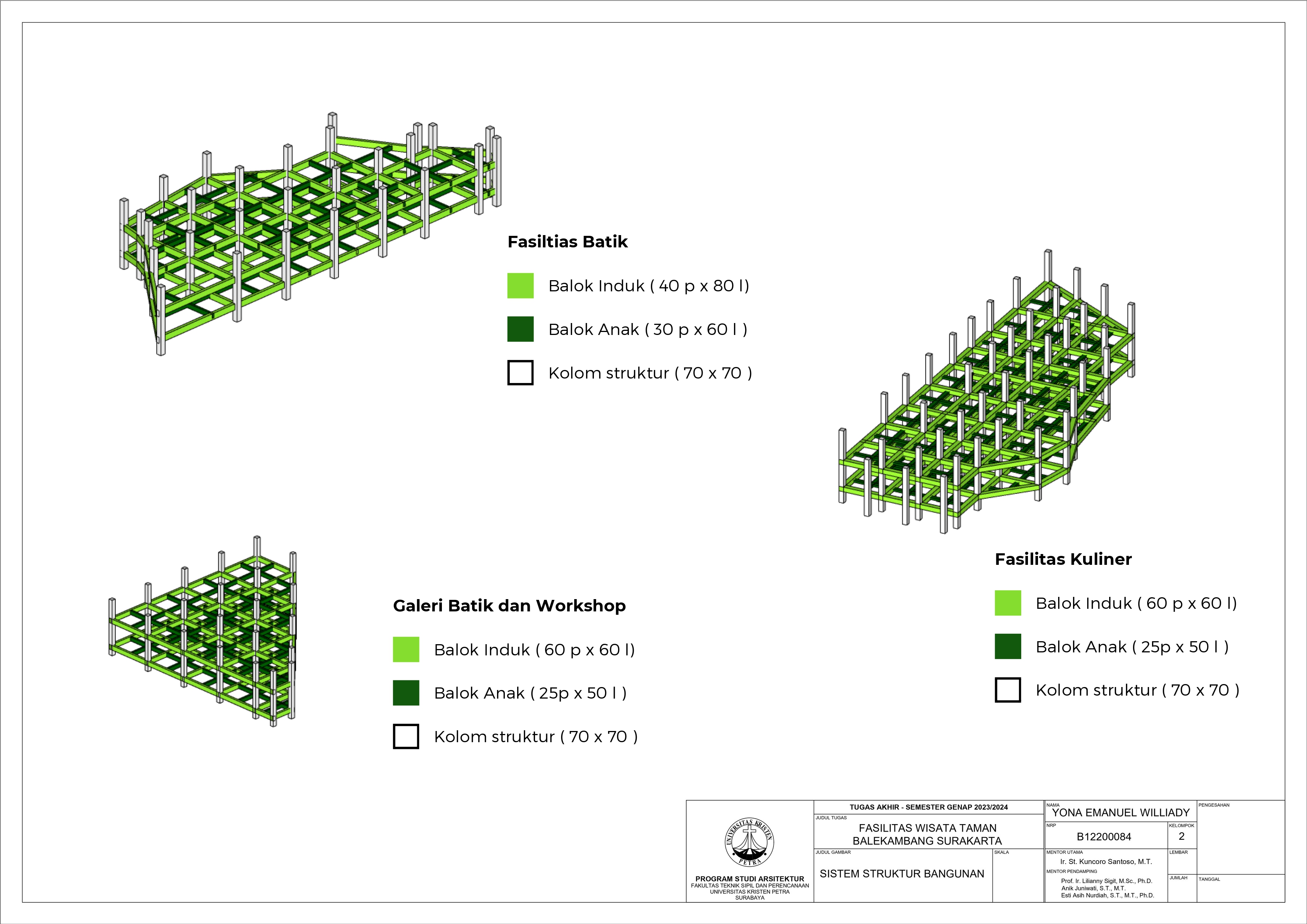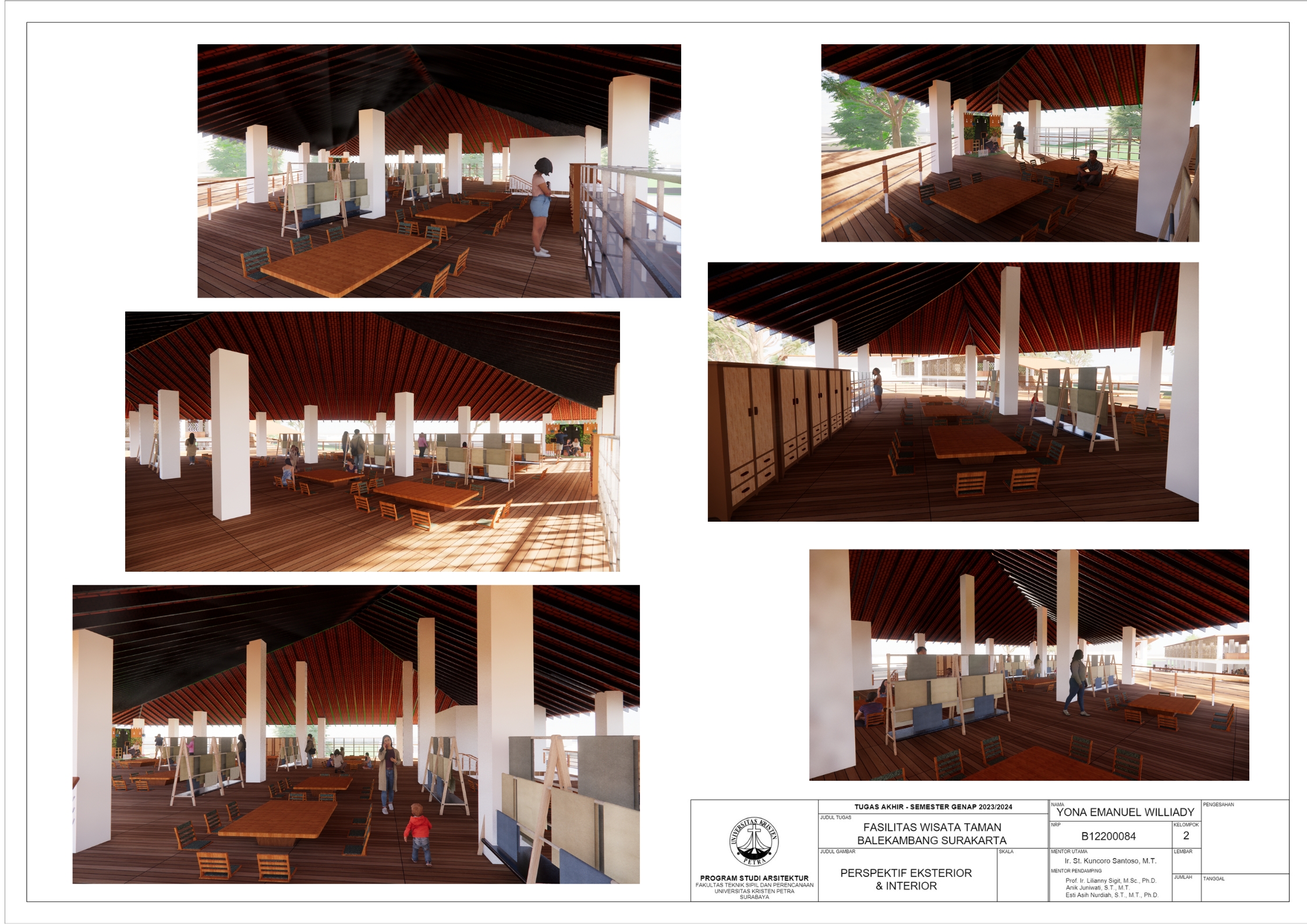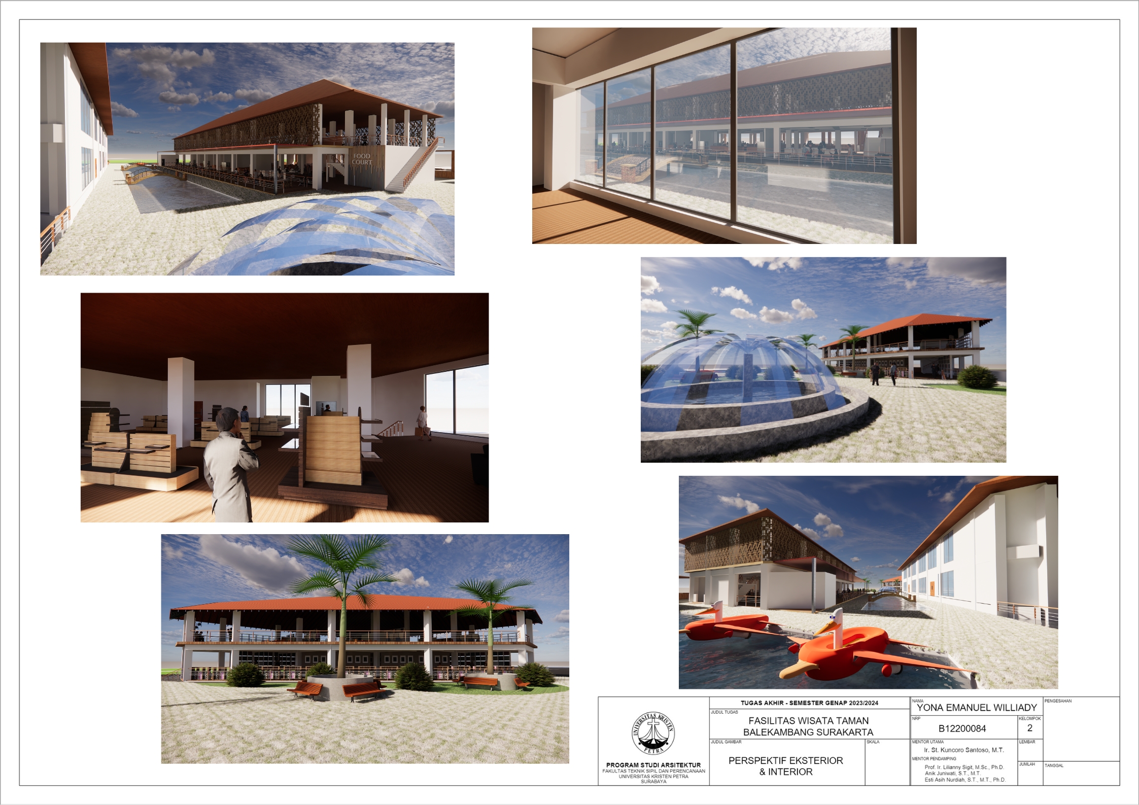 Tugas akhir ini bertujuan untuk menjalankan revitalisasi taman Balekambang yang bertujuan untuk mengembangkan fasilitas wisata di taman Balekambang Surakarta, dengan fokus pada pengembangan dan peningkatan wisata khas dari Surakarta. Adapun tujuan utama proposal ini adalah menciptakan lingkungan yang mendukung pertumbuhan daerah wisata di taman Balekambang Surakarta, meningkatkan daya tarik wisatawan, dan memberikan pengalaman wisata yang memuaskan bagi penduduk setempat dan wisatawan. Proposal ini mencakup langkah-langkah konkrit dalam pengembangan infrastruktur wisata, pelatihan tenaga kerja, promosi setempat, dan pengembangan inovasi infrastruktur. Target dari fasilitas wisata ini ialah parawisata dan masyarakat sekitar yang ingin menikmati hal-hal khas Surakarta agar lebih mudah untuk menemukan dan dapat menikmati semua ciri khas dari Surakarta. Melalui usaha pembangunan fasilitas wisata di taman Balekambang ini diharapkan parawisata dan masyarakat sekitar yang ingin menikmati hal khas dari Surakarta akan lebih mudah untuk menikmati semua yang khas dari Surakarta.