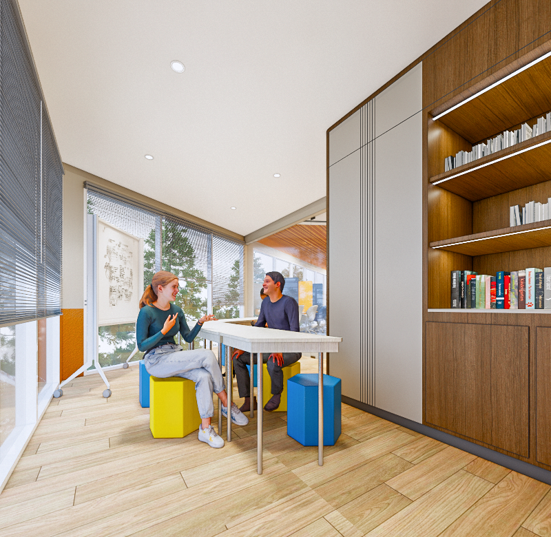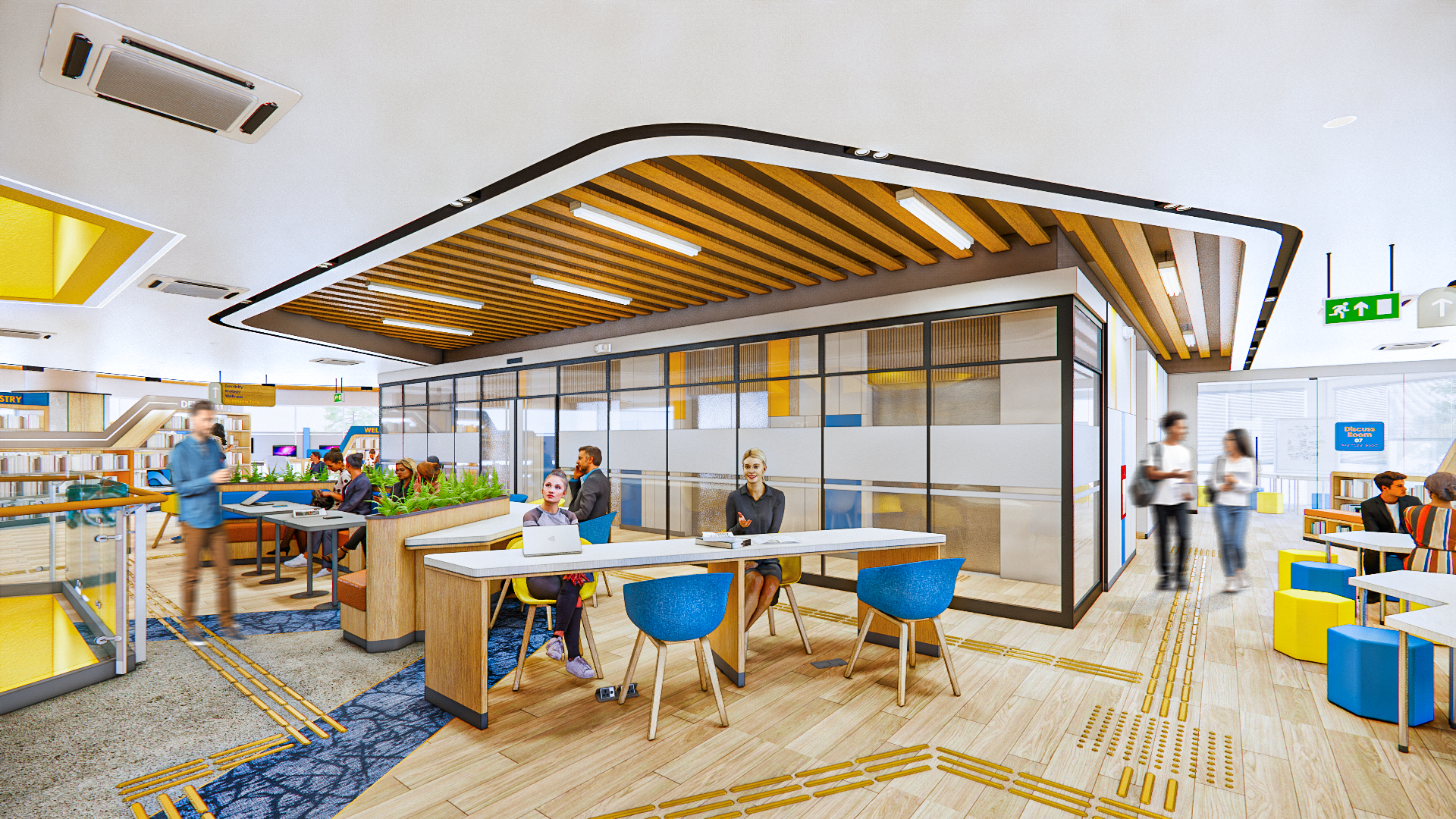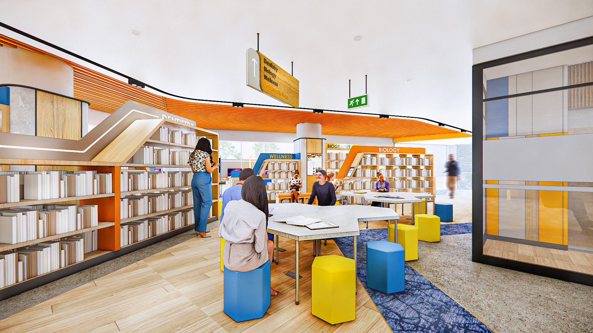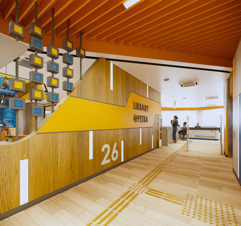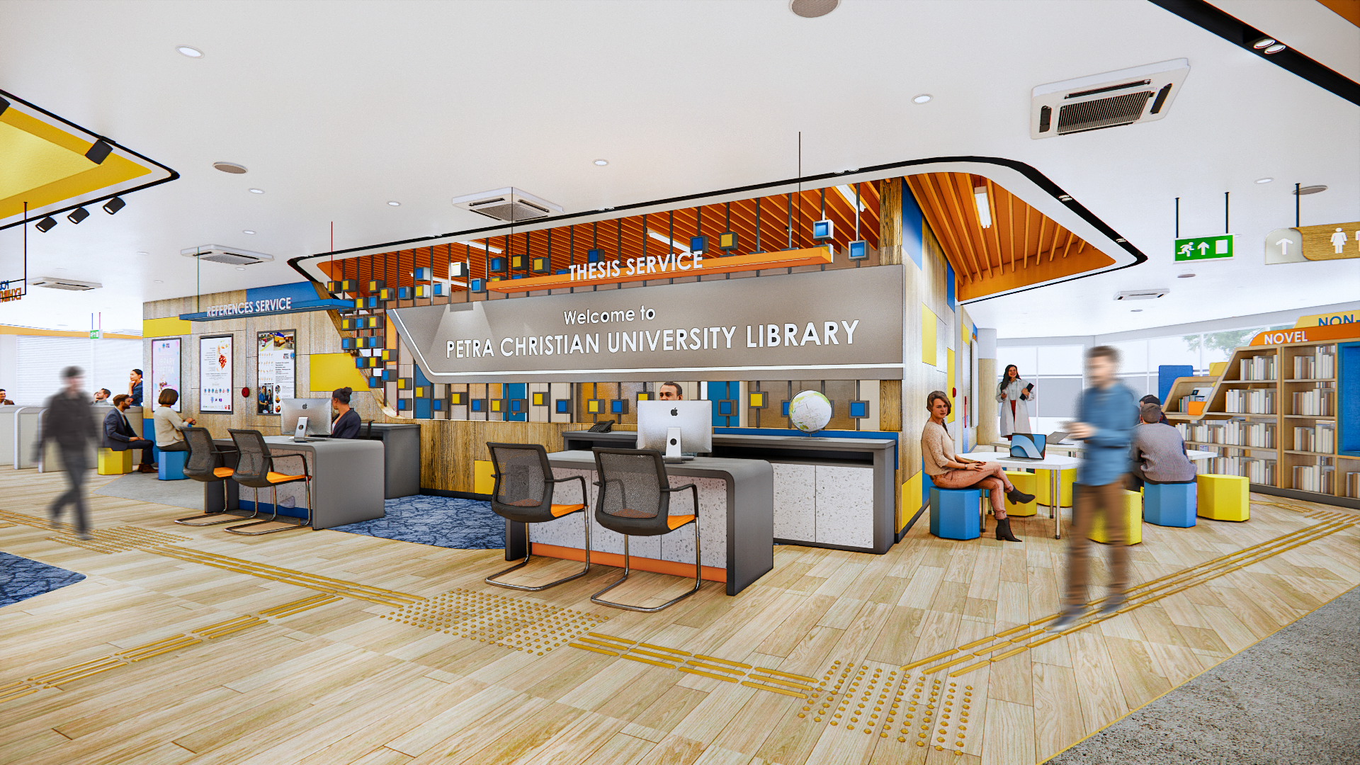 Seiring perkembangan zaman, informasi dengan mudah diakses melalui internet tanpa mengenal tempat dan waktu. Saat ini, kegiatan belajar dan membaca mahasiswa tidak perlu dilakukan di perpustakaan. Hal ini merupakan tantangan tersendiri, agar minat berkunjung mahasiswa ke perpustakaan kampus tidak menurun. Mahasiswa di era ini didominasi generasi Z yang memiliki kecenderungan untuk berkolaborasi dalam berbagai konteks. Oleh karena itu, perancangan interior ini bertujuan untuk menciptakan lingkungan pembelajaran yang optimal melalui integrasi teknologi dan ruang kolaboratif bagi mahasiswa. Tersedianya area studi individu sekaligus area studi kolaboratif diharapkan dapat mendukung pertukaran ide. Pada era digital ini, penekanan teknologi bertujuan untuk mempermudah sistem pembelajaran dan memberikan sarana informasi yang lebih efisien kepada pengguna perpustakaan, termasuk ke penyandang disabilitas. Hasil perancangan interior perpustakaan kampus Royal Residence Universitas Kristen Petra di Surabaya diharapkan tidak hanya dapat meningkatkan produktivitas dan efektivitas belajar, tetapi juga memperkaya interaksi sosial antara mahasiswa.