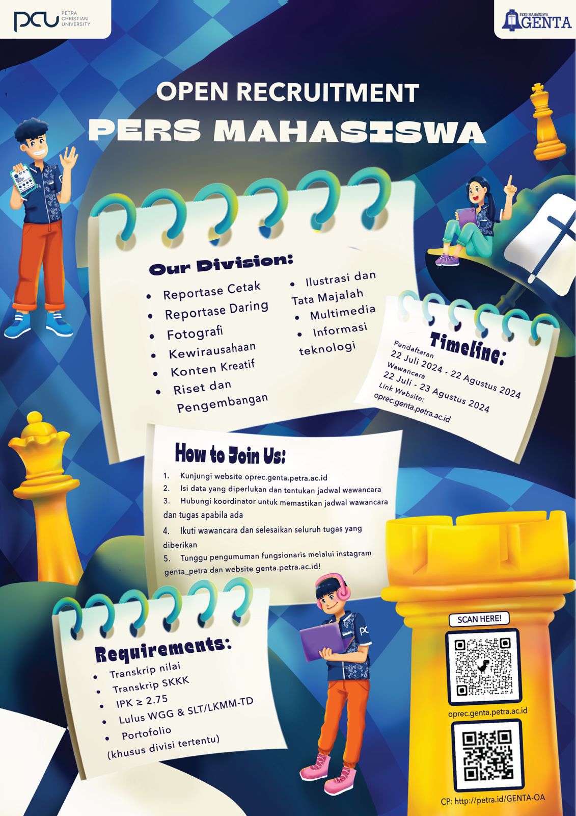 Pers Mahasiswa kembali membuka kesempatan kepada angkatan 2023 keatas untuk bergabung menjadi keluarga Persma dengan berbagai divisi yang bisa diikuti sobat GENTA!Pilihlah divisimu dan bergabunglah dengan GENTA untuk semakin meng GENTAKAN KARYAMU!