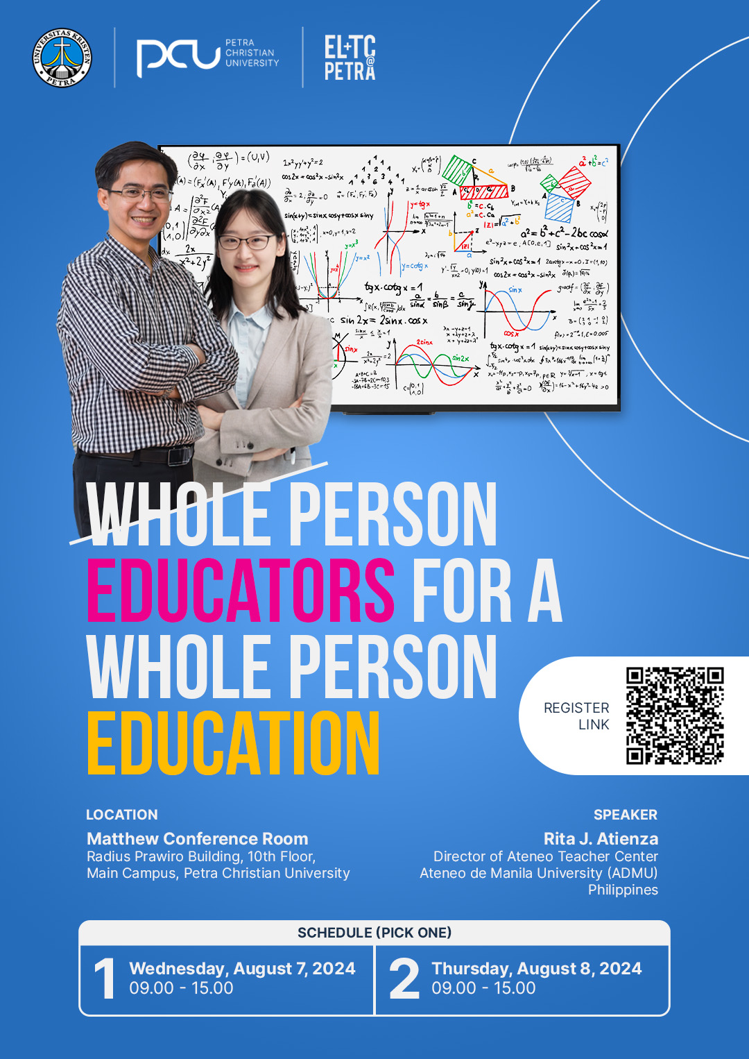 Universitas Kristen Petra Surabaya, mengadakan acara Pelatihan Dosen dengan Tema : Whole Person Educators for a Whole Person Education. Narasumber : Dr. Rita Atienza, Director of Ateneo Teacher CenterAteneo de Manila University (ADMU), PhilippinesTempat : Matthew Conference Room, Lantai 10 Gedung Radius Prawiro Kampus Pusat, Universitas Krsiten Petra