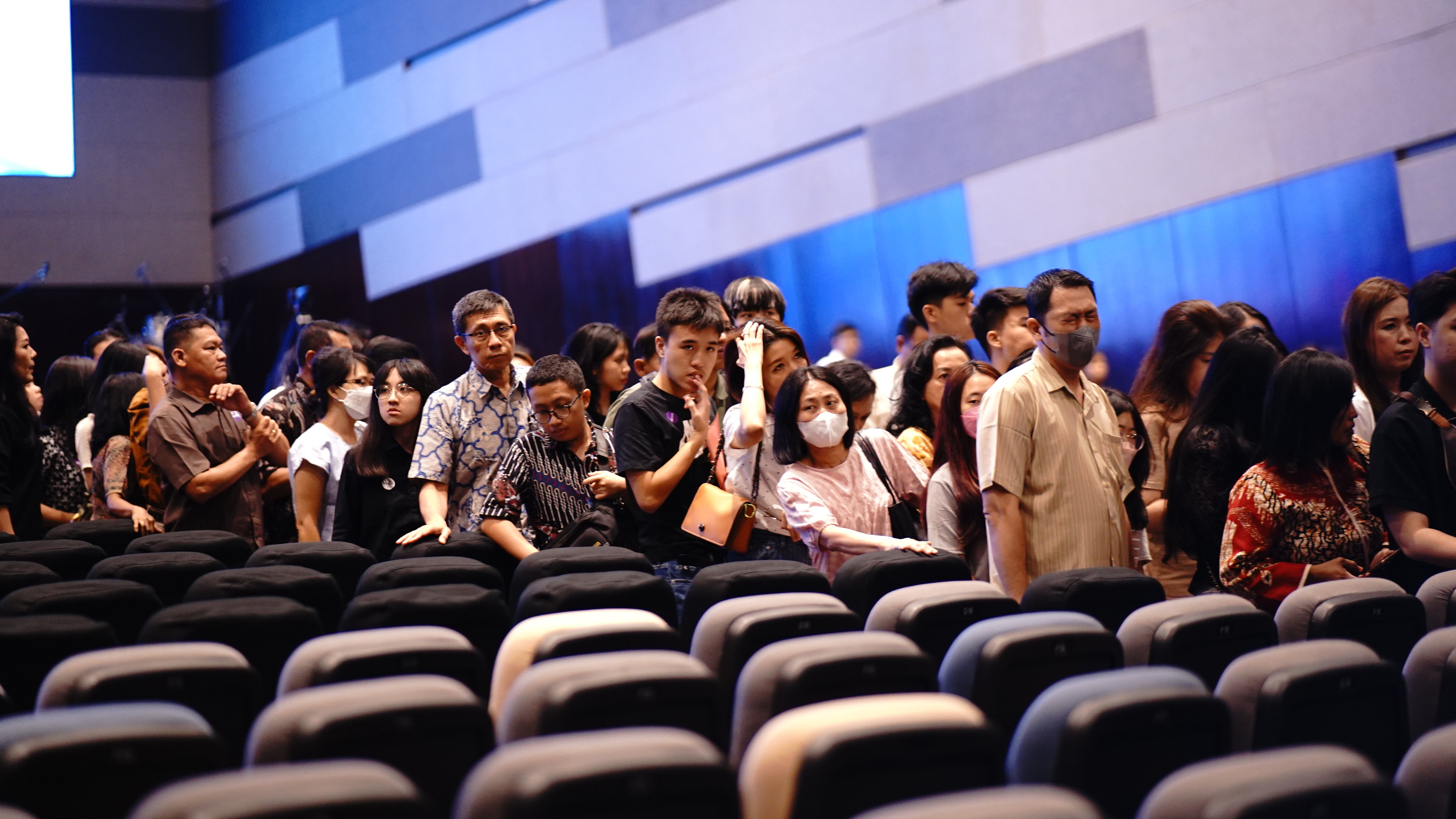 Suasana kedatangan orang tua dari para mahasiswa baru angkatan 2024/2025, saat berada di ruang Auditorium UK Petra. Acara ini berlangsung pada tanggal 20 Juli 2024 di gedung Auditorium gedung Q