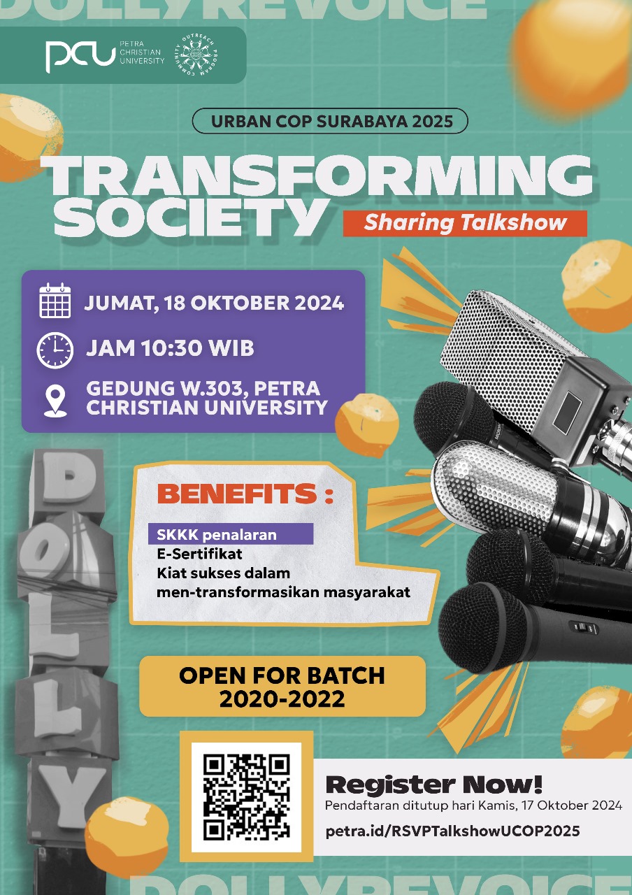 Dalam rangkaian kegiatan Urban COP Surabaya 2025, panitia melaksanakan kelas perdana dengan konsep talkshow terbuka yang dapat dihadiri oleh seluruh mahasiswa lintas jurusan dan angkatan dengan tema "Transforming Society" kegiatan ini dilaksanakan pada 18 Oktober 2024 jam 10.30 WIB bertempat di gedung W.303 Universitas Kristen Petra Surabaya