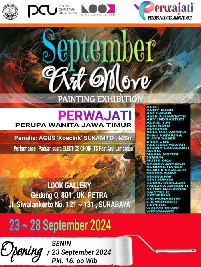 Pada tanggal 23-28 September 2024 Fakultas Humaniora dan Industri Kreatif UK Petra menggelar acara pameran lukisan dari Perwajati (Perupa Wanita Jawa Timur). Bertempat di Look Galery gedung Q.801 Universitas Kristen Petra Surabaya.