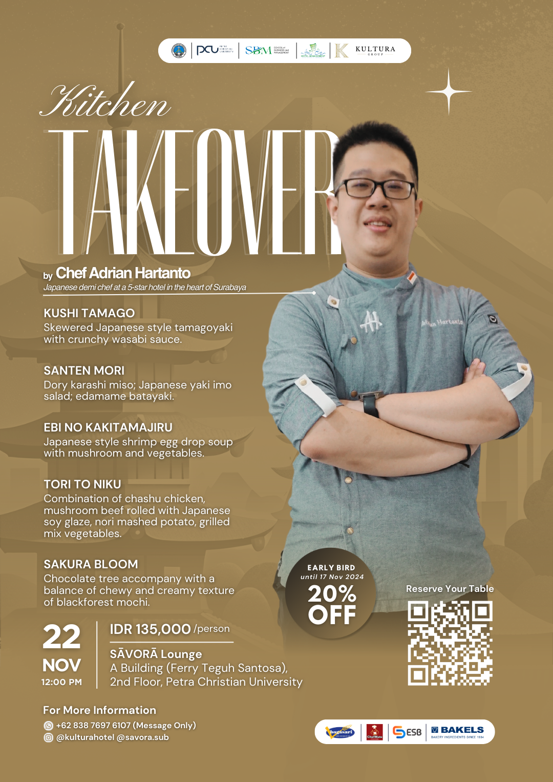 KULTURA Group is thrilled to invite you to our debut event: Kitchen Takeover, a unique fine dining journey brought to life by the expertise of Chef Adrian, an acclaimed Japanese demi chef at a 5-star hotel in the heart of Surabaya!