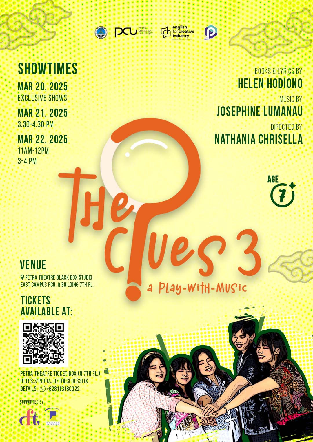 Dita tidak sabar ingin segera mengirimkan komik buatannya ke Lomba Penulisan Komik Surabaya, tapi semuanya berantakan sebelum Dita sempat melakukannya. Apakah yang terjadi pada komik Dita? Siapa yang merusaknya? Sepertinya Dita, si jago teknologi, membutuhkan bantuan The Clues Soldiers untuk mengungkap kasusnya. Ikuti mereka memecahkan misteri dalam The Clues 3 tanggal 20-22 Maret 2025!