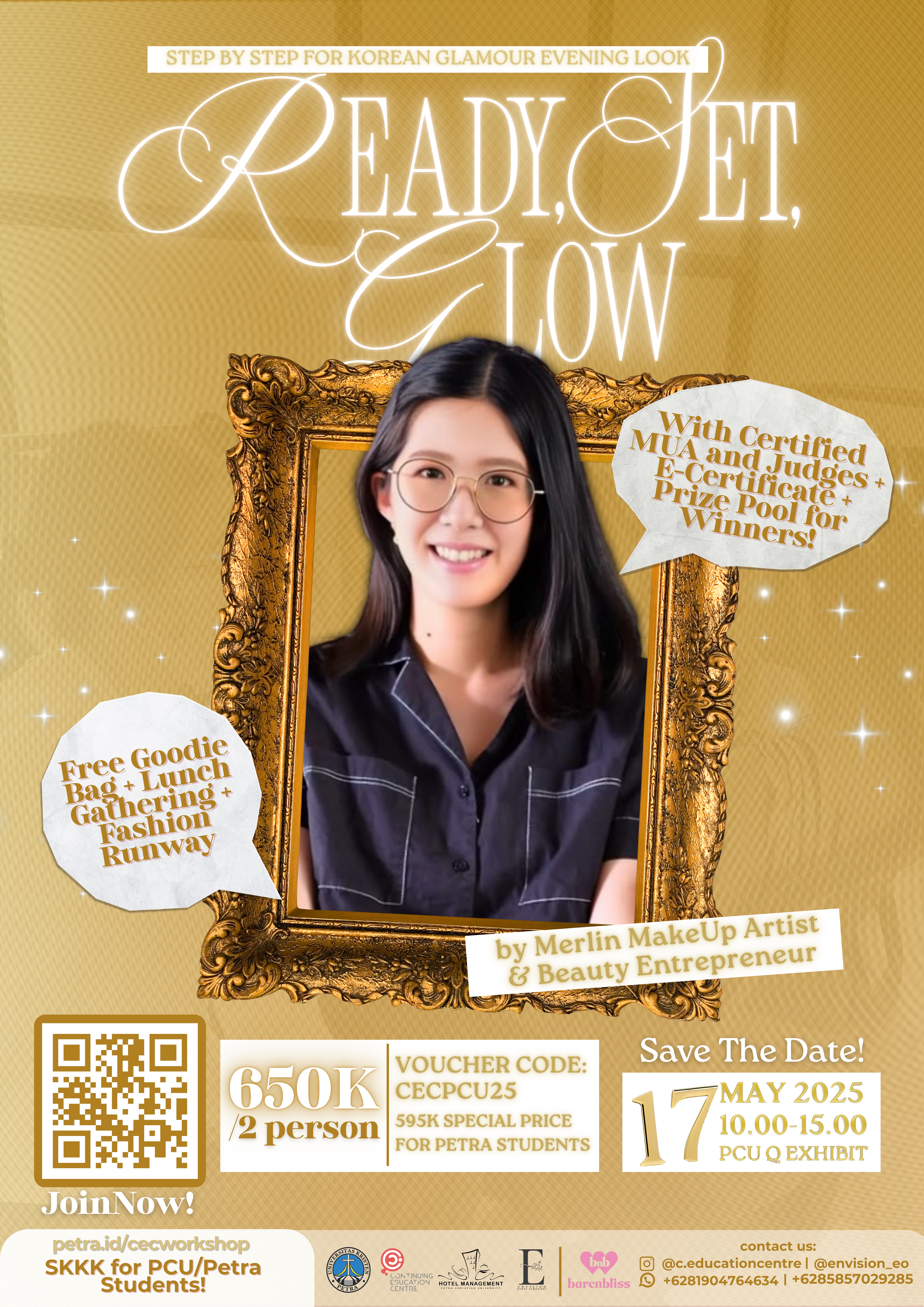 ✨ Ready to SLAY the Night, Gorgeous? ✨Let the spotlight be yours di GLAM EVENING MAKEUP CLASS bareng @merlinmua , Professional Makeup Artist kece! 💄🌟🎨 Belajar langsung step-by-step makeup glamour dari sore sampai malam—dari complexion flawless sampai mata cetar membahana!🔥 WHY YOU NEED TO BE THERE:💋 Hands-On Practice – Langsung praktik! Gampang banget buat pemula, seru buat yang mau leveling up!👯 Duo Deal: 599K for 2! – Daftar bareng bestie sebelum 26 April & dapet harga spesial!🙌 Self or Partner Makeup? – Kamu pilih! Mau tampil kece sendiri atau belajar jadi MUA.🎁 Free Makeup Products & Tools – Bisa dibawa pulang!📜 Eksklusif Sertifikat – Bukti kamu pernah join kelas glam ini!👠 Mini Runway Challenge – Tunjukin hasil makeup kamu dan menangkan hadiah spesial!📅 SAVE THE DATE:🗓️ 17 Mei 2025 | ⏰ 10.00 – 15.00 WIB📍 Universitas Kristen Petra, Gedung Q🎟️ Daftar sekarang di: petra.id/cecworkshop🔍 Info lengkap: petra.id/cecmakeupclass🚨 Limited seats only! Jangan sampai kehabisan tempat yaa!Dan hey… event ini bukan cuma buat ladies loh! Cowok-cowok yang passionate di dunia makeup, you’re more than welcome!💫 LET’S GLOW UP TOGETHER!Tampil stunning, lebih percaya diri, dan siap jadi versi paling glam dari dirimu! 💖✨