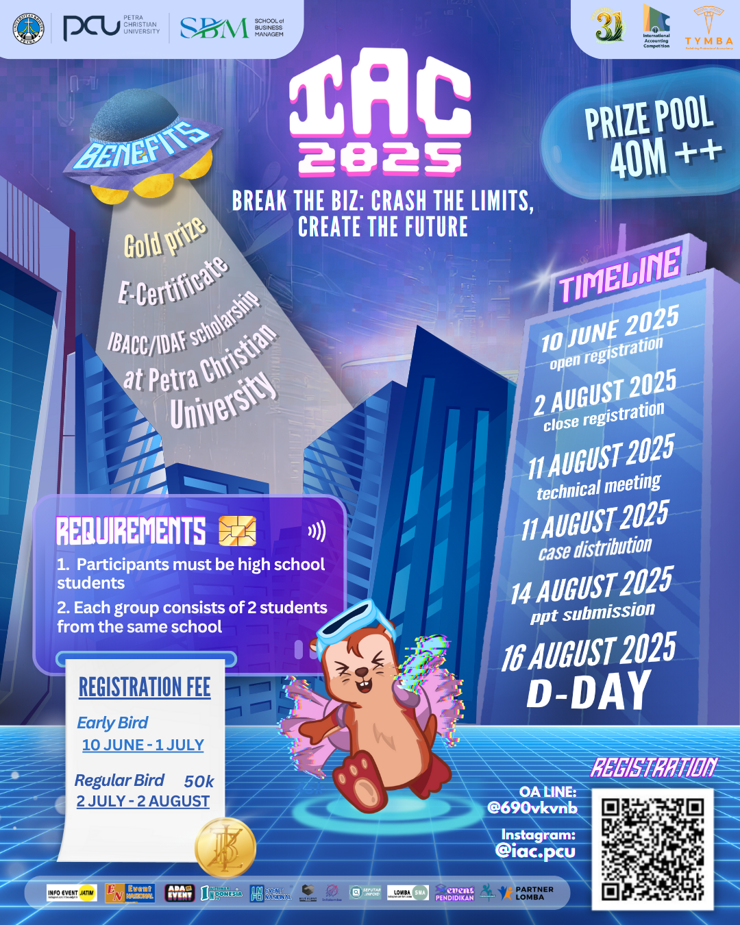 Kompetisi Akuntansi Internasional (IAC) 2025 merupakan kompetisi bergengsi bagi siswa SMA yang berminat mempelajari dunia akuntansi dan bisnis. Diselenggarakan oleh Universitas Kristen Petra bekerja sama dengan program International Business Accounting (IBAcc) dan International Digital Accounting & Fraud (IDAF), kompetisi ini menjadi kesempatan bagi siswa untuk mempelajari lebih lanjut tentang konsep dasar akuntansi sekaligus mendapatkan paparan praktik terbaik internasional. IAC 2025 bukan sekadar ujian intelektual, tetapi pengalaman belajar yang memadukan kecerdasan, kerja sama tim, inovasi, dan perencanaan strategis. Kompetisi ini diselenggarakan pada 16 Agustus 2025.