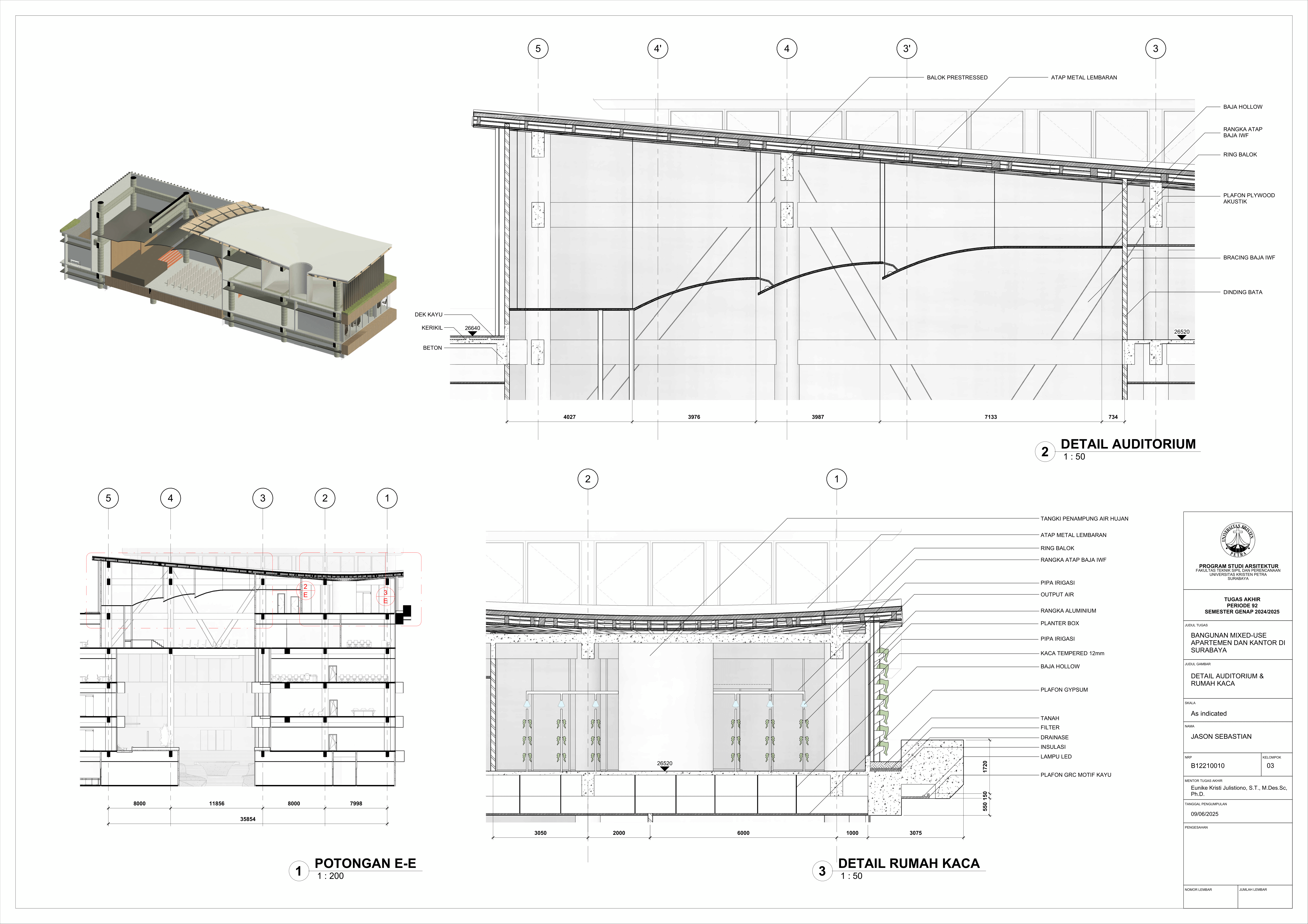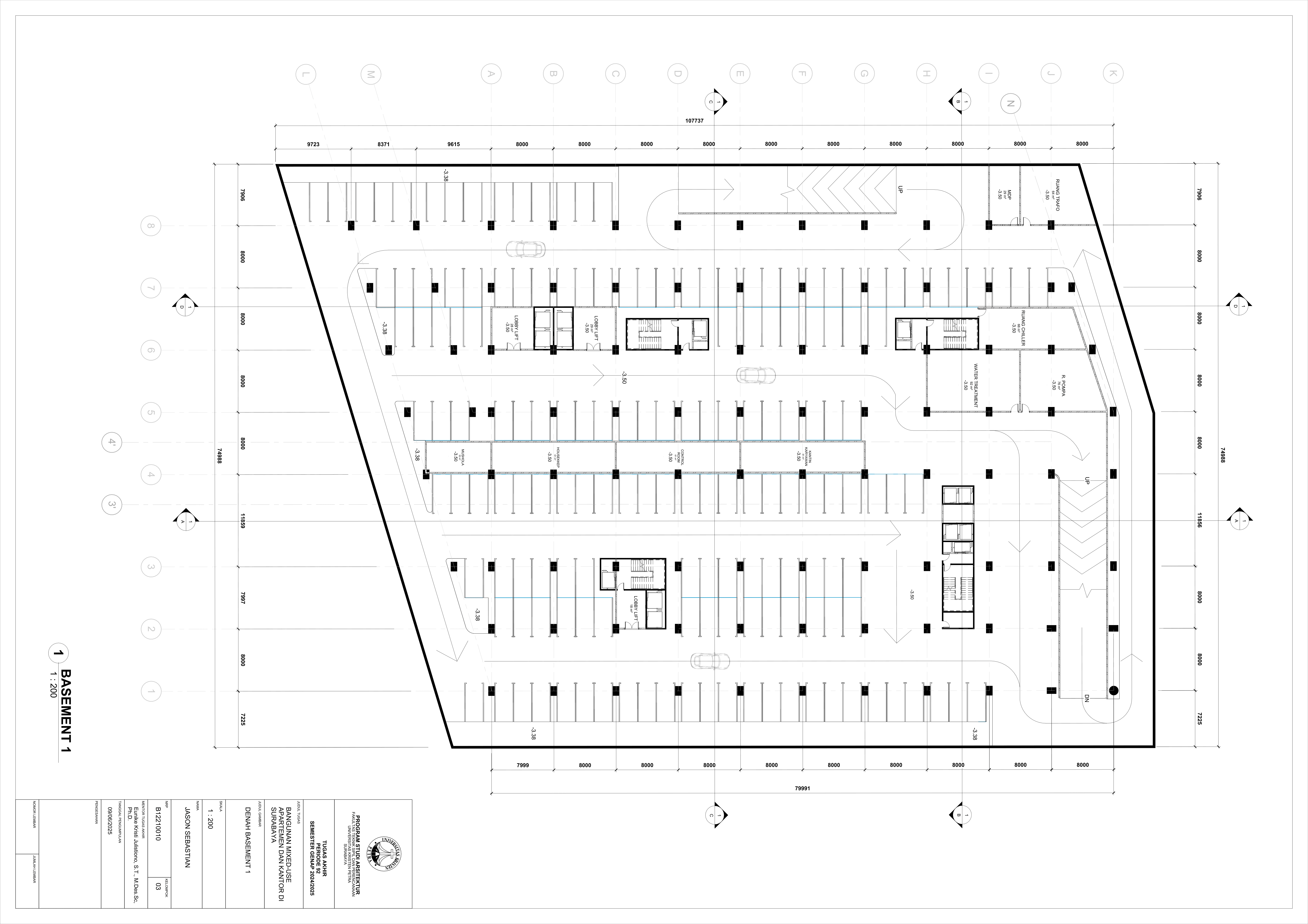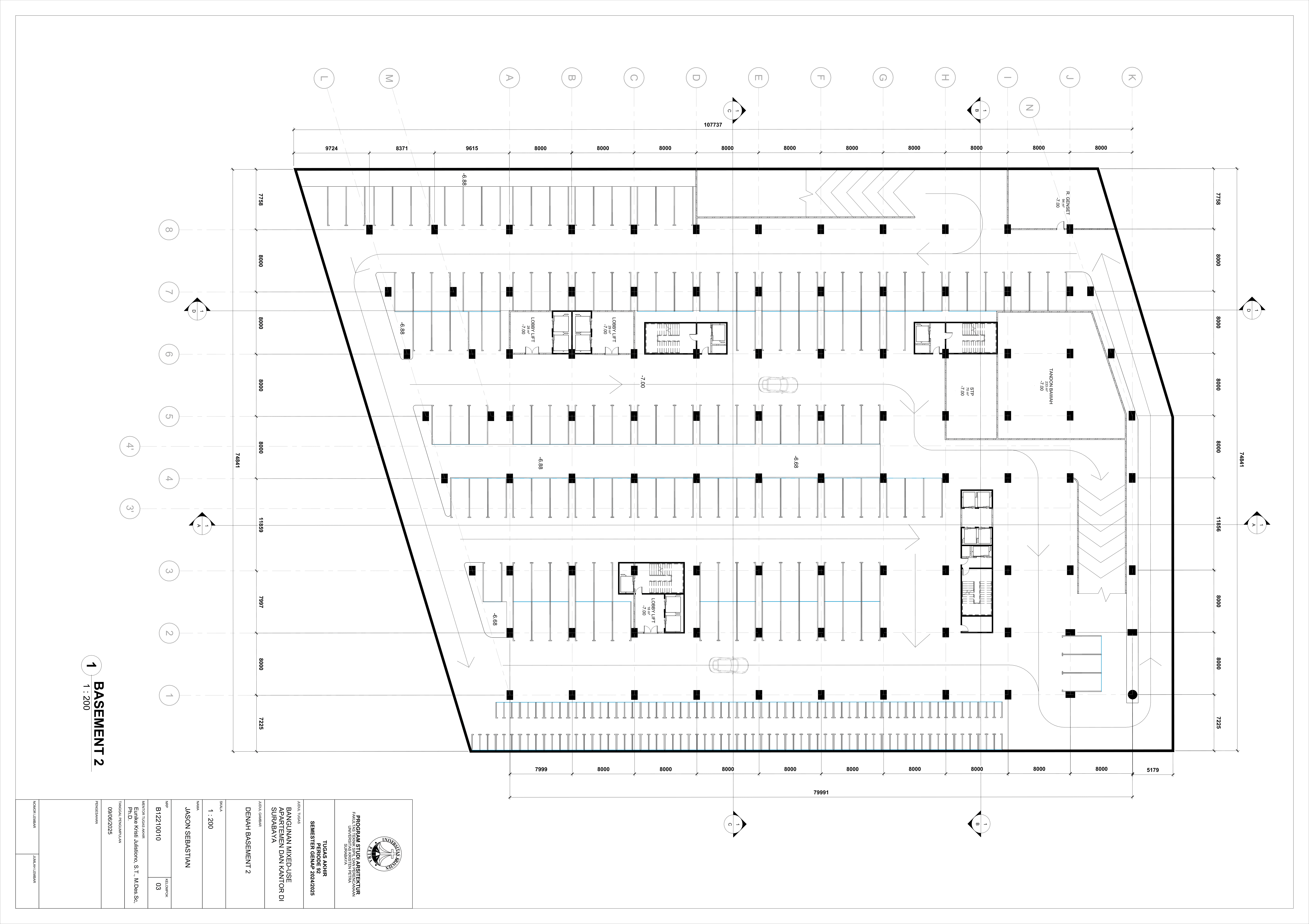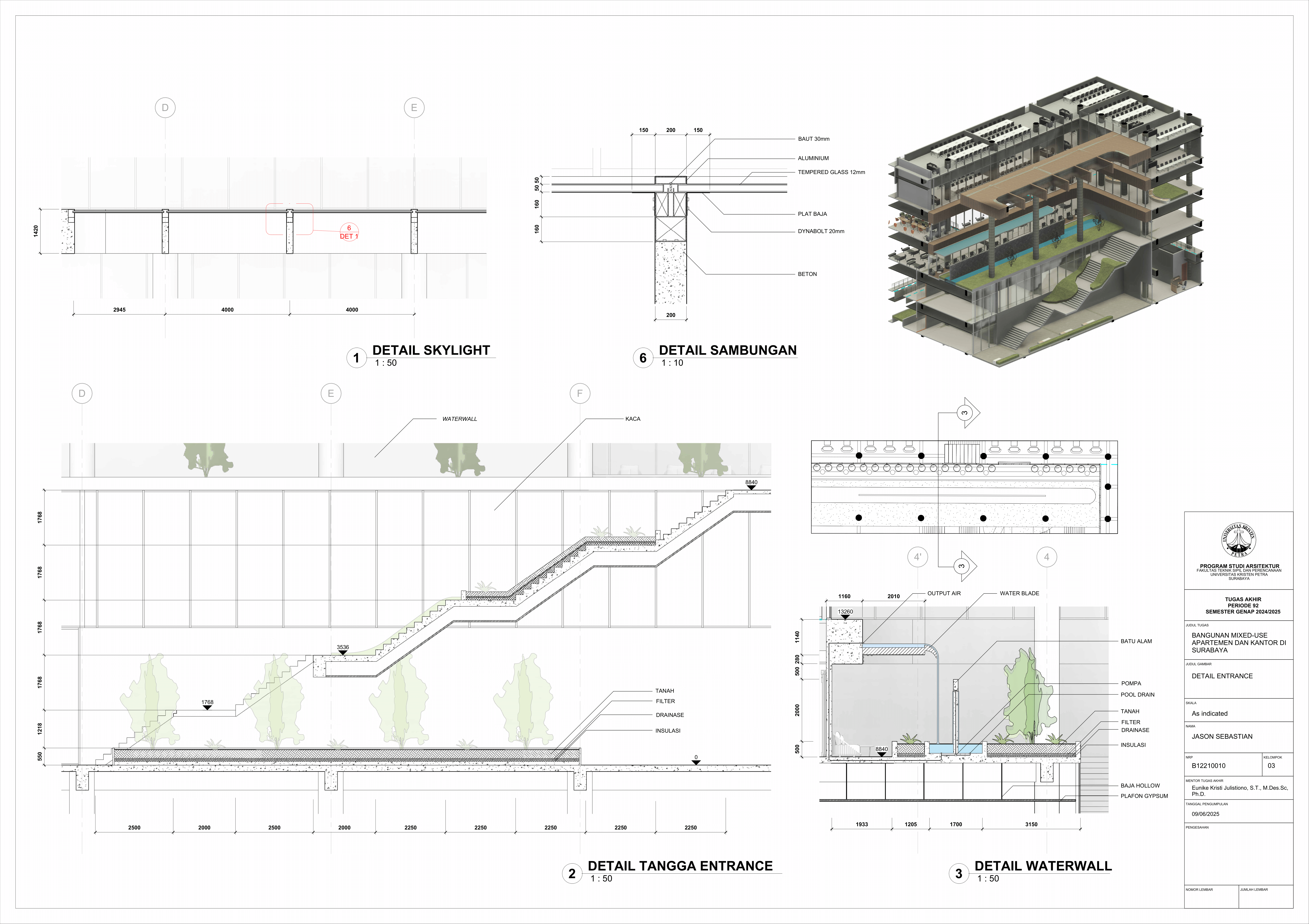 Pertumbuhan urbanisasi dan kebutuhan ruang di Surabaya mendorong pengembangan bangunan vertikal yang mampu mengintegrasikan fungsi hunian dan perkantoran dalam satu lokasi. Perancangan ini bertujuan untuk menghasilkan sebuah bangunan mixed-use yang menggabungkan apartemen dan kantor, dengan pendekatan berkelanjutan sesuai target net-zero emission carbon. Proyek ini mengakomodasi kebutuhan generasi milenial, pengusaha muda, dan pekerja kreatif untuk mengembangkan bisnis startup mereka dengan memaksimalkan efisiensi ruang, kemudahan akses, dan penerapan elemen biophilic untuk meningkatkan kualitas hidup pengguna. Metodologi perancangan melibatkan survei tapak, studi literatur, dan studi preseden untuk bisa menghasilkan desain yang menjawab permasalahan lingkungan saat ini. Bangunan dirancang untuk meminimalisir emisi karbon operasional melalui efisiensi energi, optimalisasi pencahayaan alami, dan penghawaan. Fasilitas yang dirancang meliputi apartemen, kantor sewa, coworking space, area hijau, dan fasilitas penunjang komersial. Perancangan ini juga memperhatikan Sustainable Development Goals (SDGs) terkait penghematan energi dan pertumbuhan ekonomi yang berkelanjutan. Hasil rancangan yang diharapkan adalah desain yang fungsional, fleksibel, dan ramah lingkungan, yang mampu memenuhi kebutuhan masyarakat urban dan memberikan kontribusi positif terhadap arsitektur berkelanjutan di Surabaya.