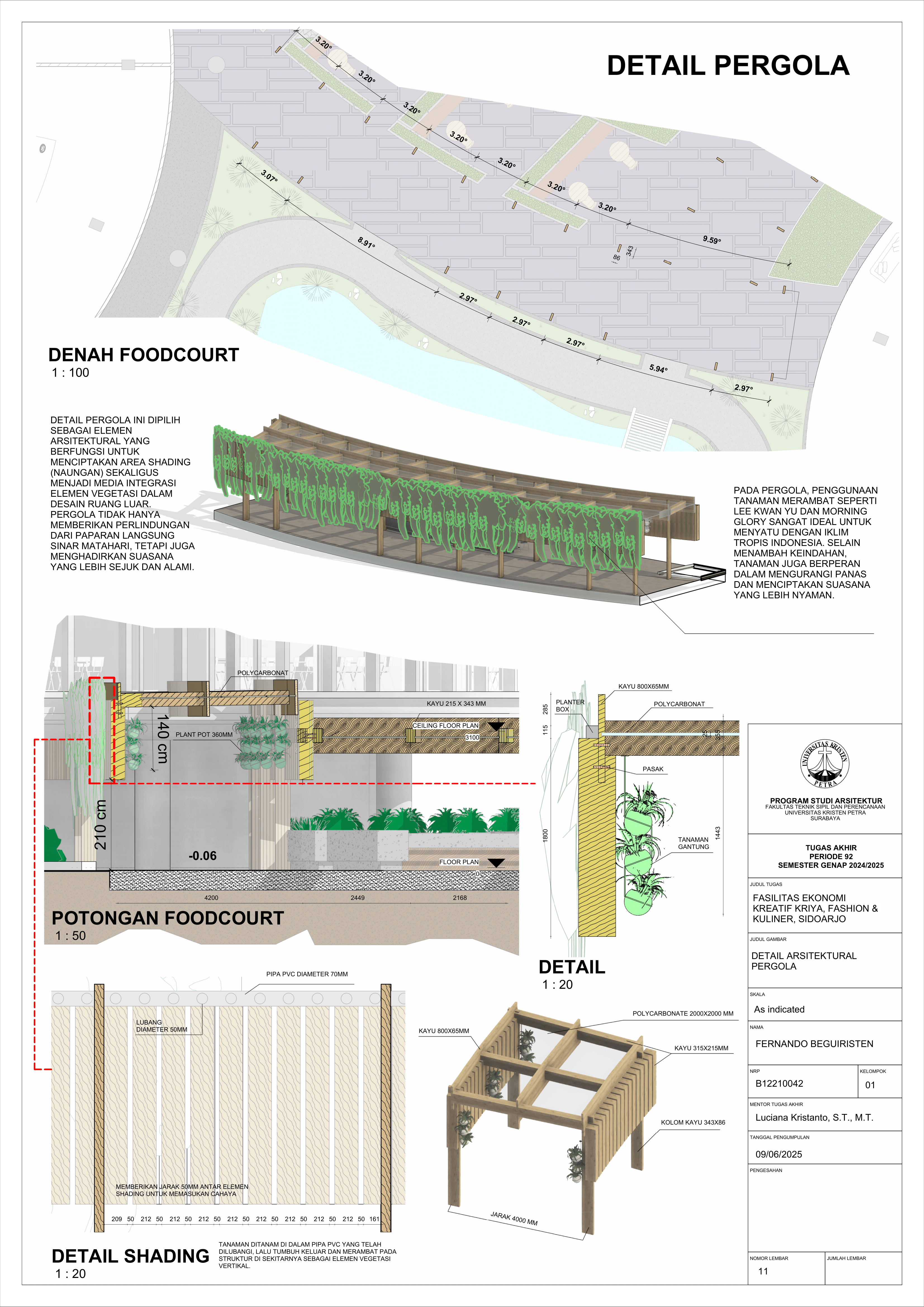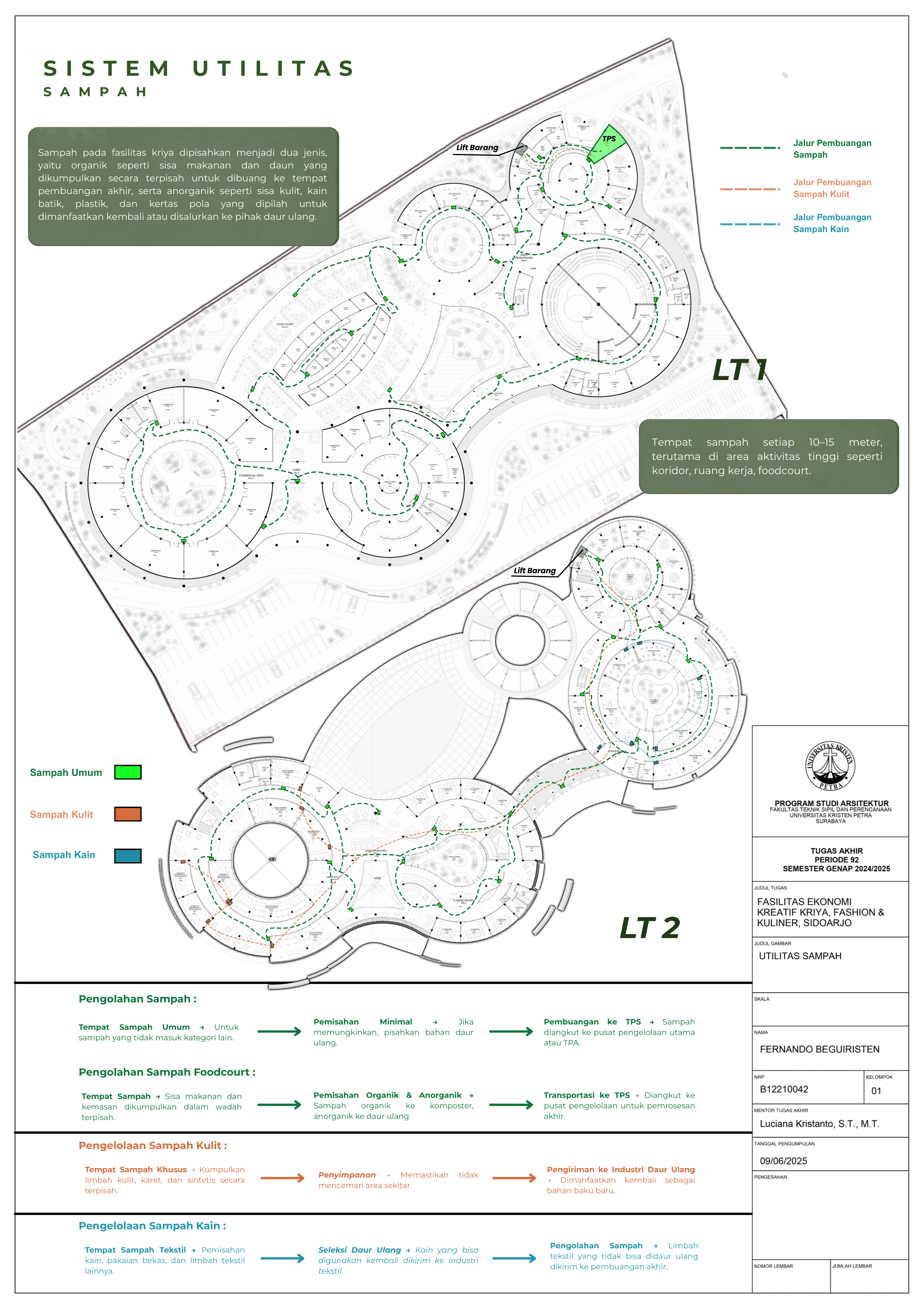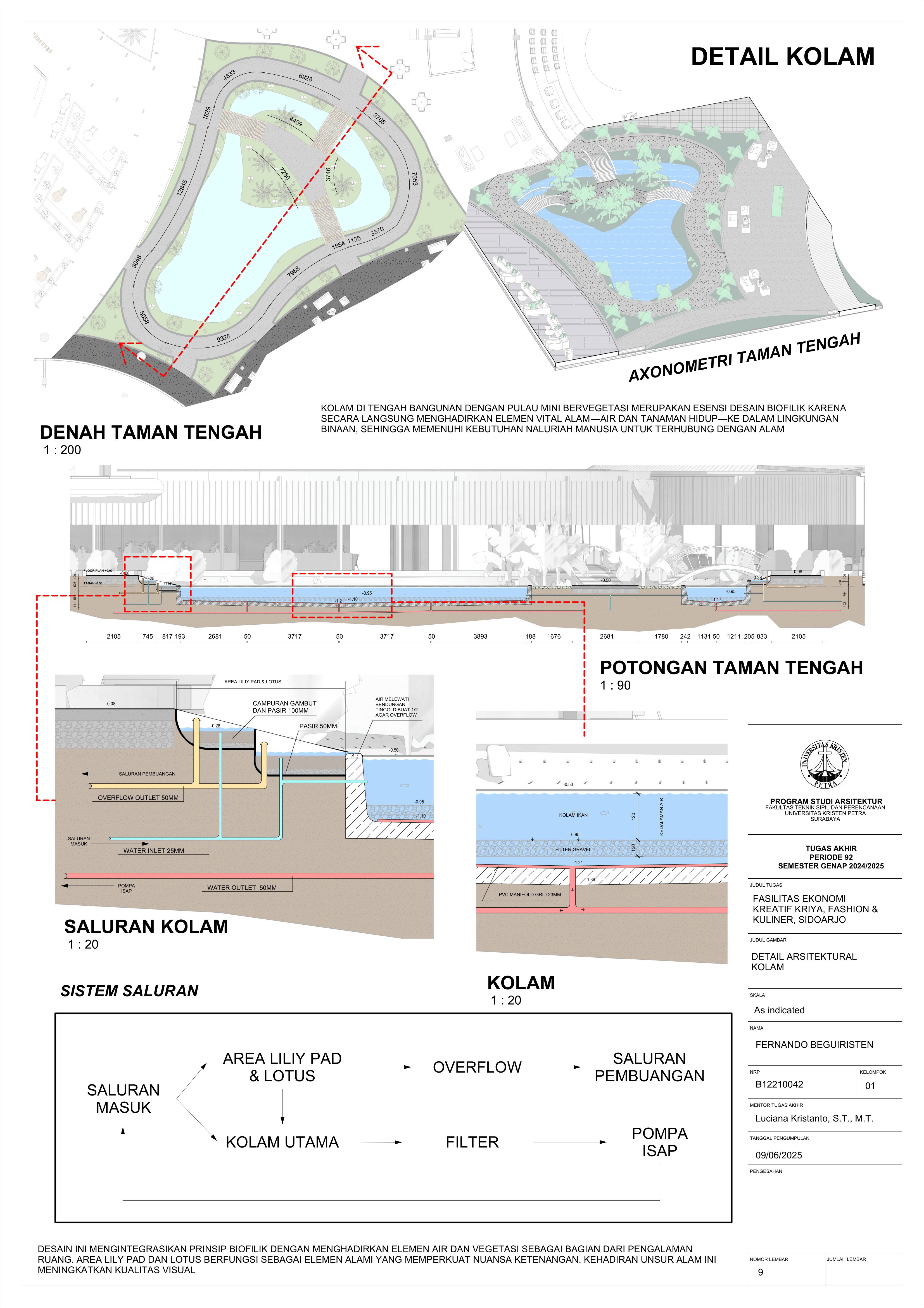 Jawa Timur, provinsi dengan populasi terbesar kedua di Indonesia, menghadapi tantangan besar dalam mengelola kepadatan penduduk dan pengangguran yang meningkat selama pandemi Covid-19. Kabupaten Sidoarjo, salah satu daerah yang terdampak parah, mencatat peningkatan tingkat pengangguran terbuka (TPT) dari 4,72% pada 2019 menjadi 10,97% pada 2020. Proyek ini bertujuan untuk mengatasi kekurangan fasilitas yang mendukung perkembangan industri kreatif di Sidoarjo. Dengan pendekatan biofilik, proyek ini akan menciptakan lingkungan yang mendukung produktivitas dan kreativitas, serta memastikan keberlanjutan lingkungan. Metodologi yang digunakan meliputi studi literatur, studi preseden, observasi, dan survei untuk mengumpulkan data yang relevan. Fasilitas ini akan menyediakan ruang kerja yang memadai, peralatan lengkap, dan program pelatihan komprehensif untuk meningkatkan keterampilan dan daya saing pelaku industri kreatif. Selain itu, fasilitas ini mendukung kolaborasi antar kreator, menyediakan akses ke pasar, dan mempromosikan strategi pemasaran yang efektif. Hasil yang diharapkan adalah peningkatan kesejahteraan masyarakat, penciptaan lapangan kerja baru, dan kontribusi signifikan terhadap pertumbuhan ekonomi daerah. Dengan memenuhi tujuan-tujuan ini, Fasilitas Ekonomi Kreatif di Sidoarjo diharapkan dapat menjadi pusat unggulan yang mendukung perkembangan industri kreatif, meningkatkan kesejahteraan masyarakat, dan mendorong pertumbuhan ekonomi daerah.