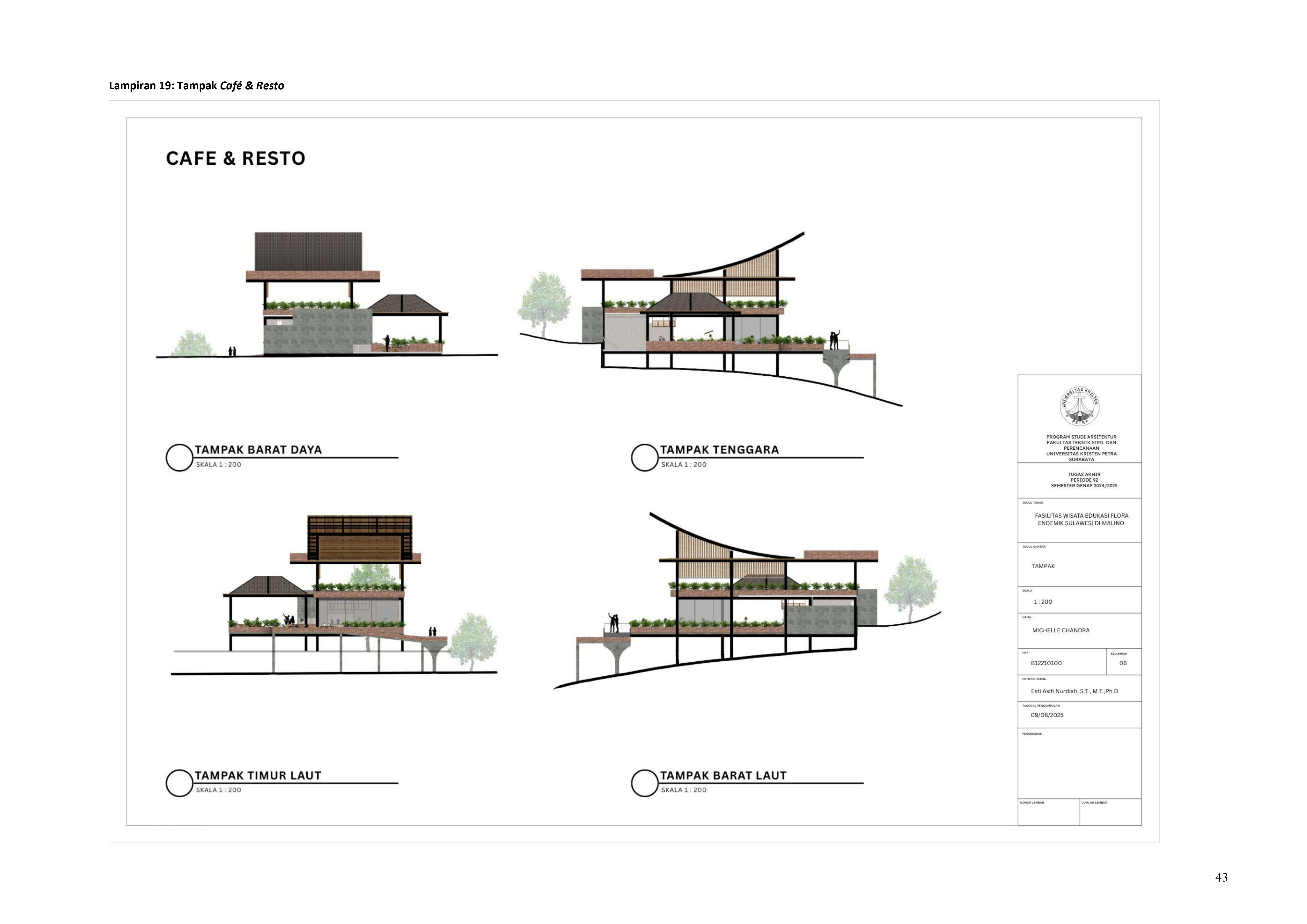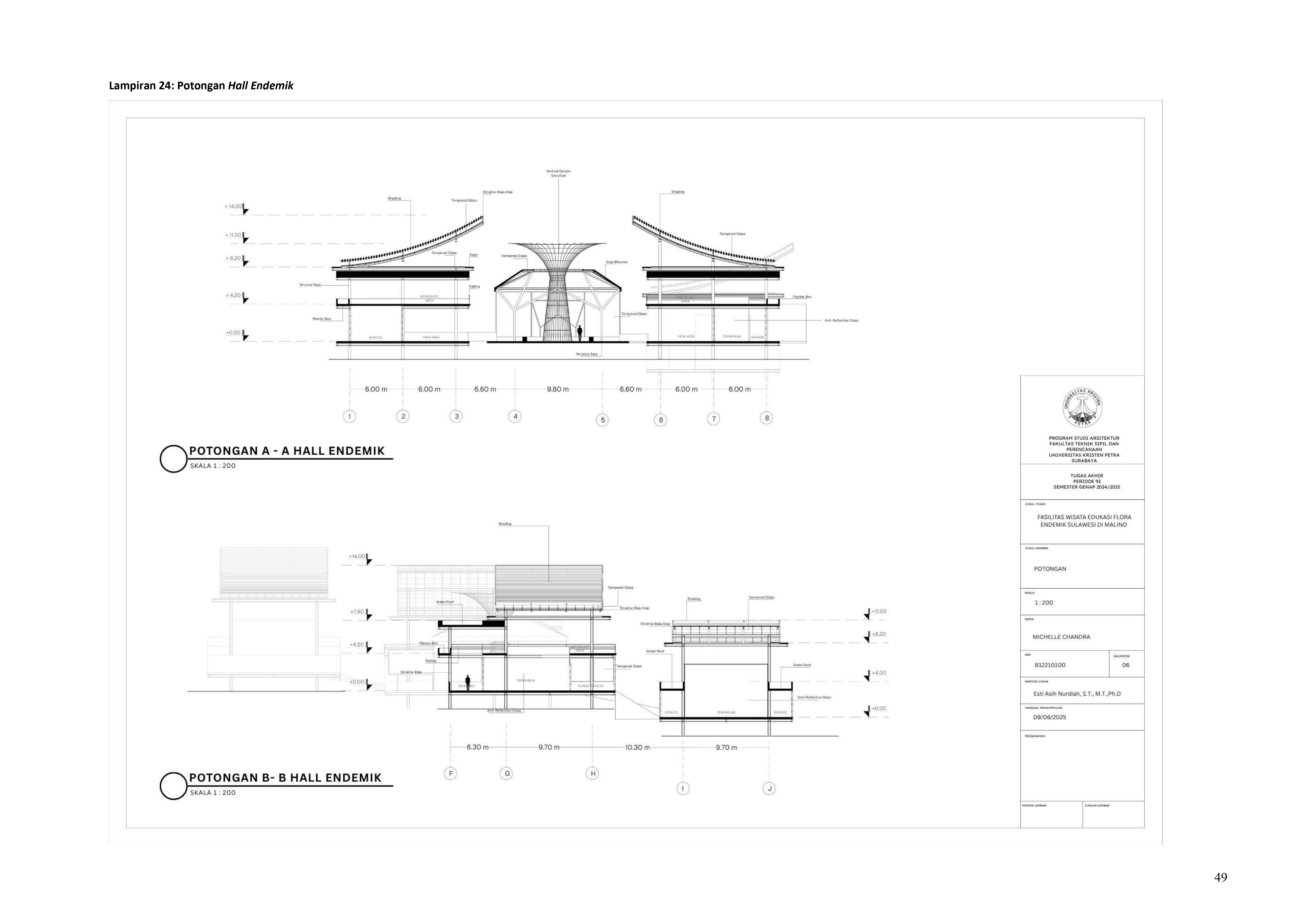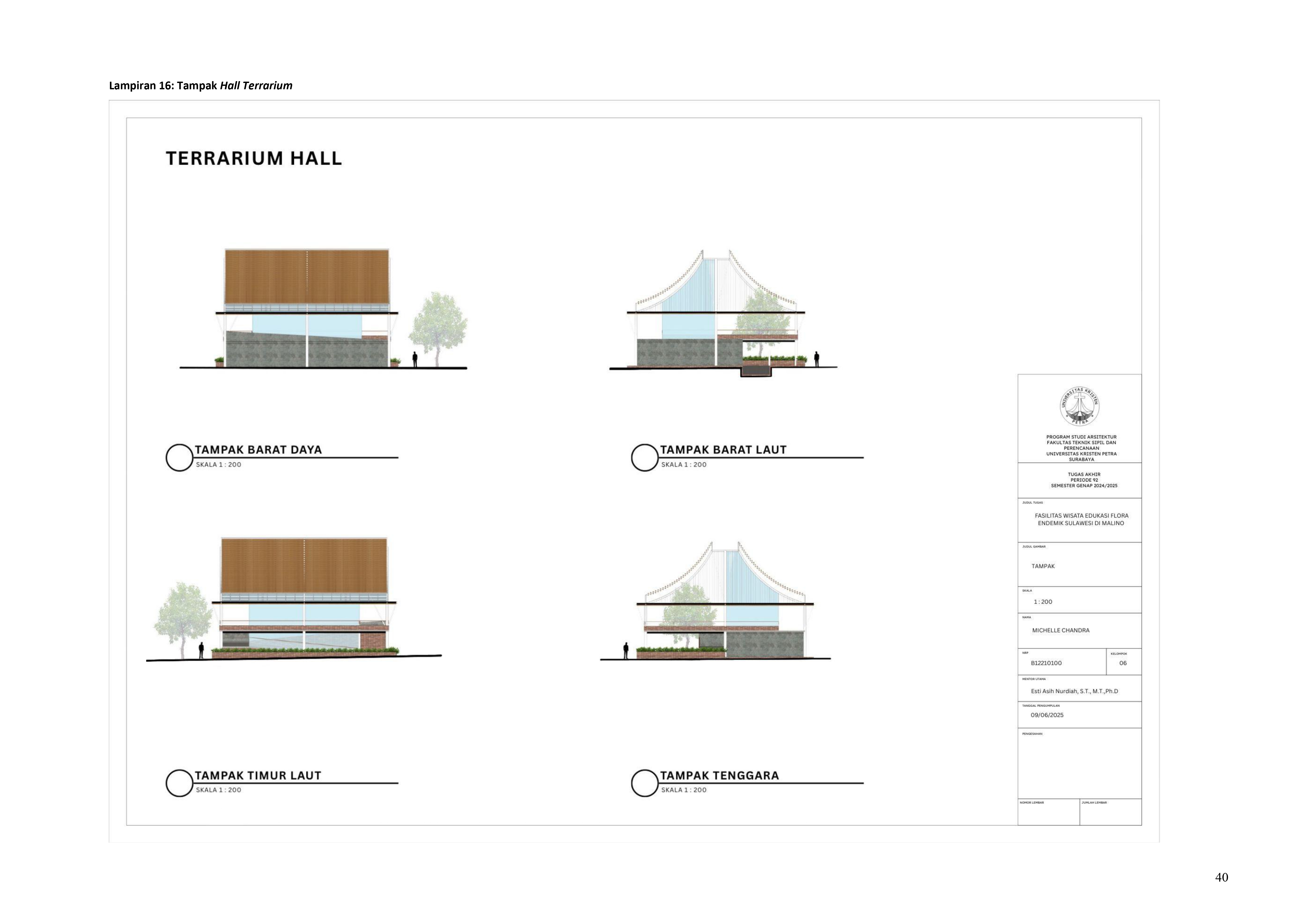 Perkembangan fasilitas edukasi saat ini menuntut perancangan ruang yang tidak hanya berfungsi sebagai media pembelajaran, tetapi juga mampu menjadi penghubung langsung antara manusia dan alam. Perancangan Fasilitas Wisata Edukasi Flora Endemik Sulawesi di Malino dilatarbelakangi oleh menurunnya kesadaran masyarakat terhadap pentingnya pelestarian flora lokal, yang semakin terancam oleh aktivitas pariwisata yang tidak terkontrol dan degradasi lingkungan. Untuk menjawab tantangan ini, pendekatan constructed ecosystem diterapkan sebagai strategi utama dalam perancangan. Pendekatan ini bertujuan untuk menciptakan lingkungan buatan yang meniru dan merepresentasikan sistem kerja ekosistem alami, sehingga mampu menghadirkan pengalaman ekologis secara nyata dalam konteks ruang arsitektur. Melalui metode studi literatur, observasi lapangan, dan analisis tapak, desain dikembangkan ke dalam bentuk terarium besar, ruang interpretatif, jalur edukatif, serta zona konservasi semi-terbuka yang saling terhubung secara fungsional dan ekologis. Setiap elemen ruang dirancang tidak hanya untuk menampilkan keanekaragaman flora endemik Sulawesi, tetapi juga menciptakan sistem mikroklimat yang mendukung pertumbuhan tanaman dan kenyamanan pengunjung. Ruang-ruang ini saling terhubung dan memberi pengalaman langsung dengan ekosistem buatan, untuk menumbuhkan kesadaran akan pentingnya lingkungan. Proyek ini bertujuan menjadi contoh arsitektur edukatif yang peduli lingkungan, melibatkan masyarakat, dan berdampak langsung pada konservasi.