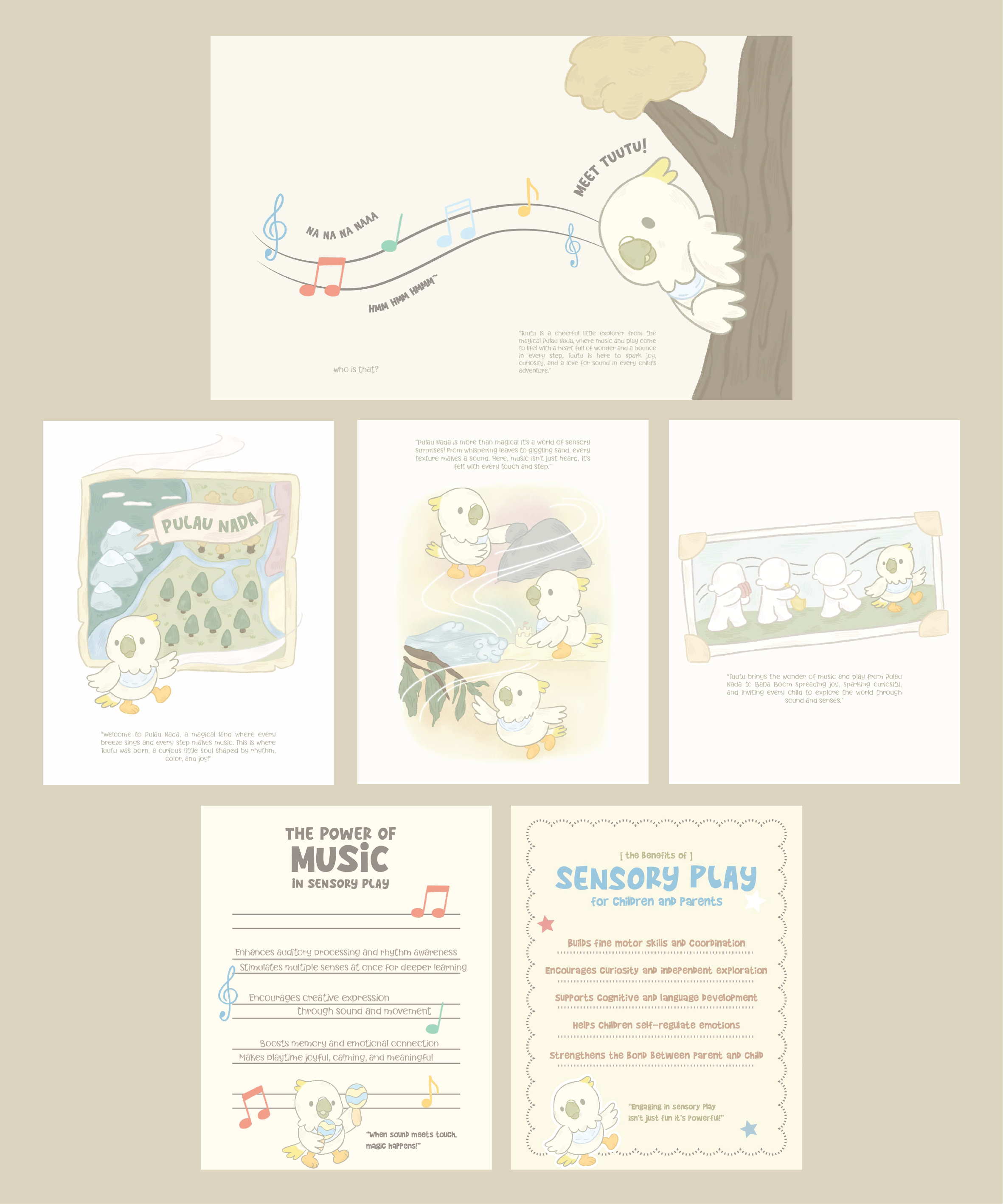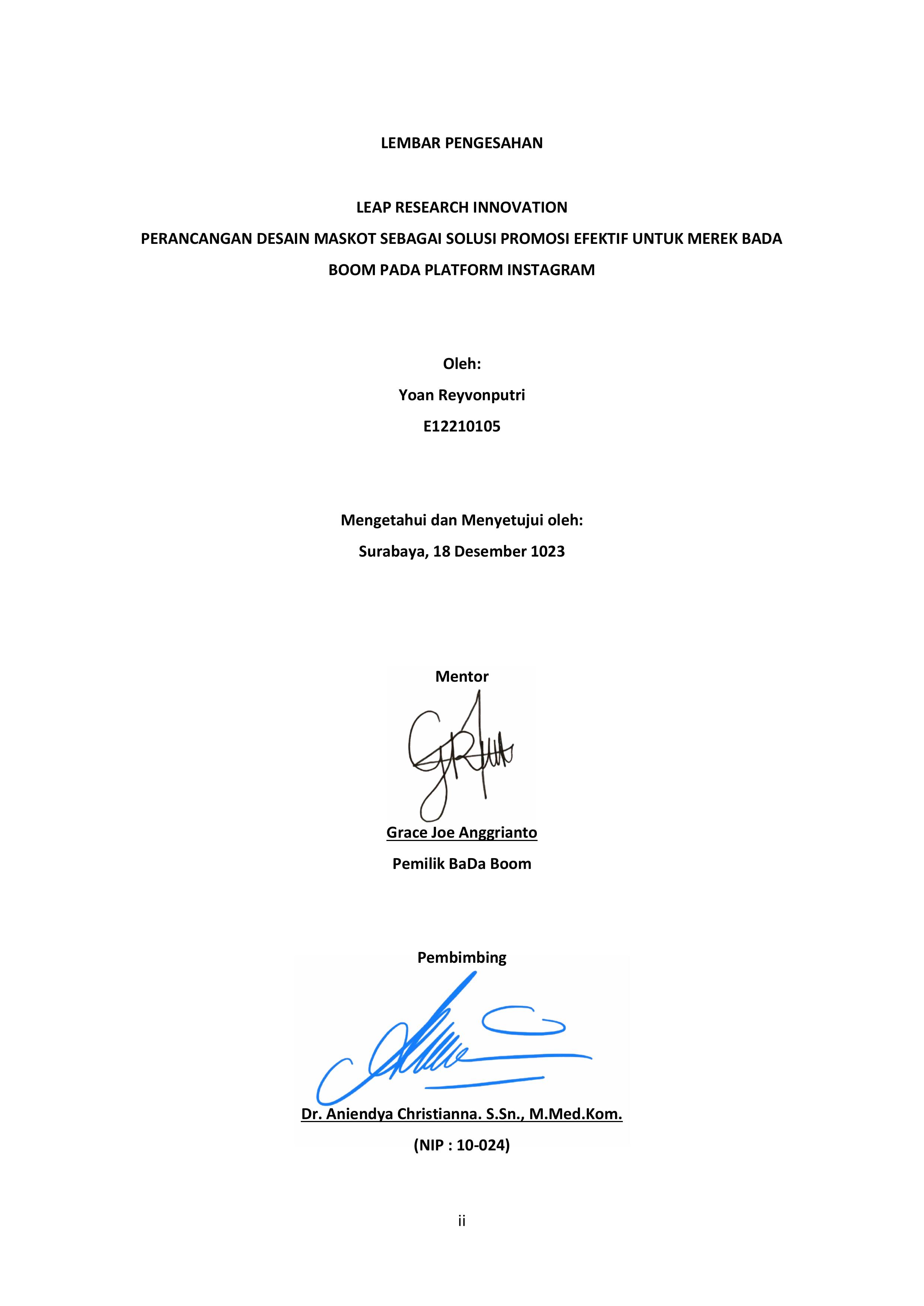 Dalam era digital yang sarat informasi visual, kemampuan suatu brand untuk membangun koneksi emosional dengan audiens menjadi aspek penting dalam strategi identitas merek kontemporer. Salah satu pendekatan efektif dalam membangun relasi tersebut adalah melalui maskot sebagai representasi visual yang komunikatif, ramah, dan mudah dikenali. Penelitian ini berfokus pada perancangan ulang maskot BaDa Boom sebuah penyedia kelas sensory play berbasis musik untuk anak usia dini di Surabaya sebagai upaya untuk memperkuat identitas visual serta meningkatkan daya tarik brand terhadap target audiens, yaitu orang tua muda generasi milenial. Metode penelitian menggunakan pendekatan kualitatif dengan teknik observasi, wawancara, dan dokumentasi visual untuk memahami kebutuhan audiens dan mengevaluasi desain sebelumnya. Hasil perancangan berupa maskot baru bernama Tuutu, yang dirancang dengan gaya ilustrasi yang lebih ekspresif, bentuk yang membulat, dan elemen naratif. Selain maskot, dibuat pula konten visual berbasis storytelling serta merchandise seperti notebook, eco bag, dan stiker sebagai sarana komunikasi dan promosi yang mendukung. Evaluasi menunjukkan bahwa desain baru berhasil menciptakan karakter yang lebih menarik dan sesuai dengan dunia anak-anak, meskipun beberapa aspek seperti kostum dan warna masih dapat dikembangkan lebih lanjut. Perancangan ini dinilai mampu menjawab rumusan masalah, yaitu bagaimana mengoptimalkan maskot untuk memperkuat identitas visual BaDa Boom secara strategis dan menyeluruh.