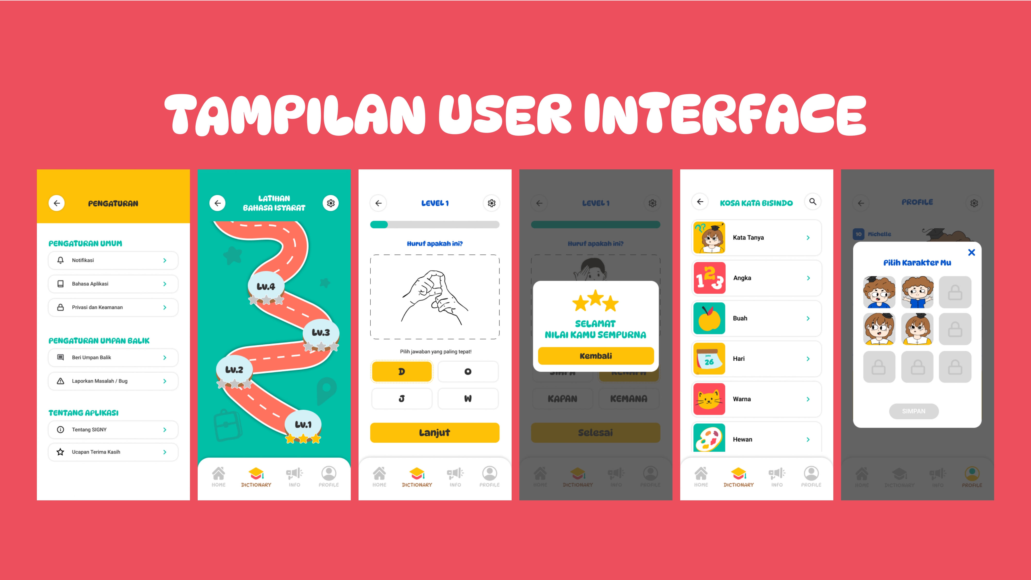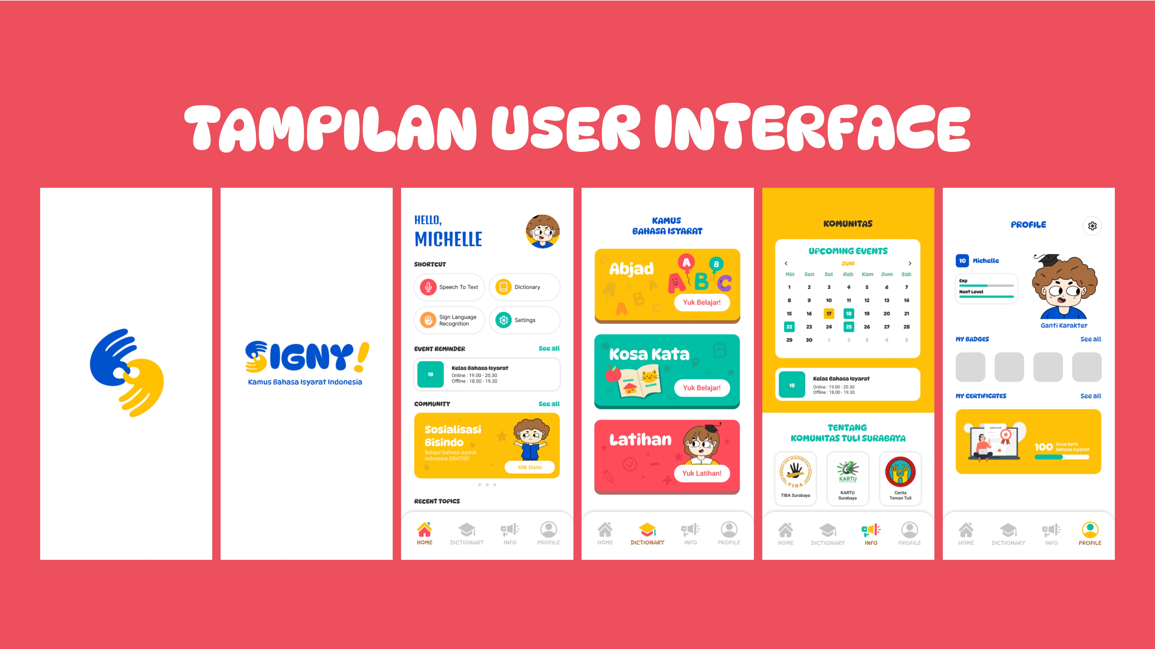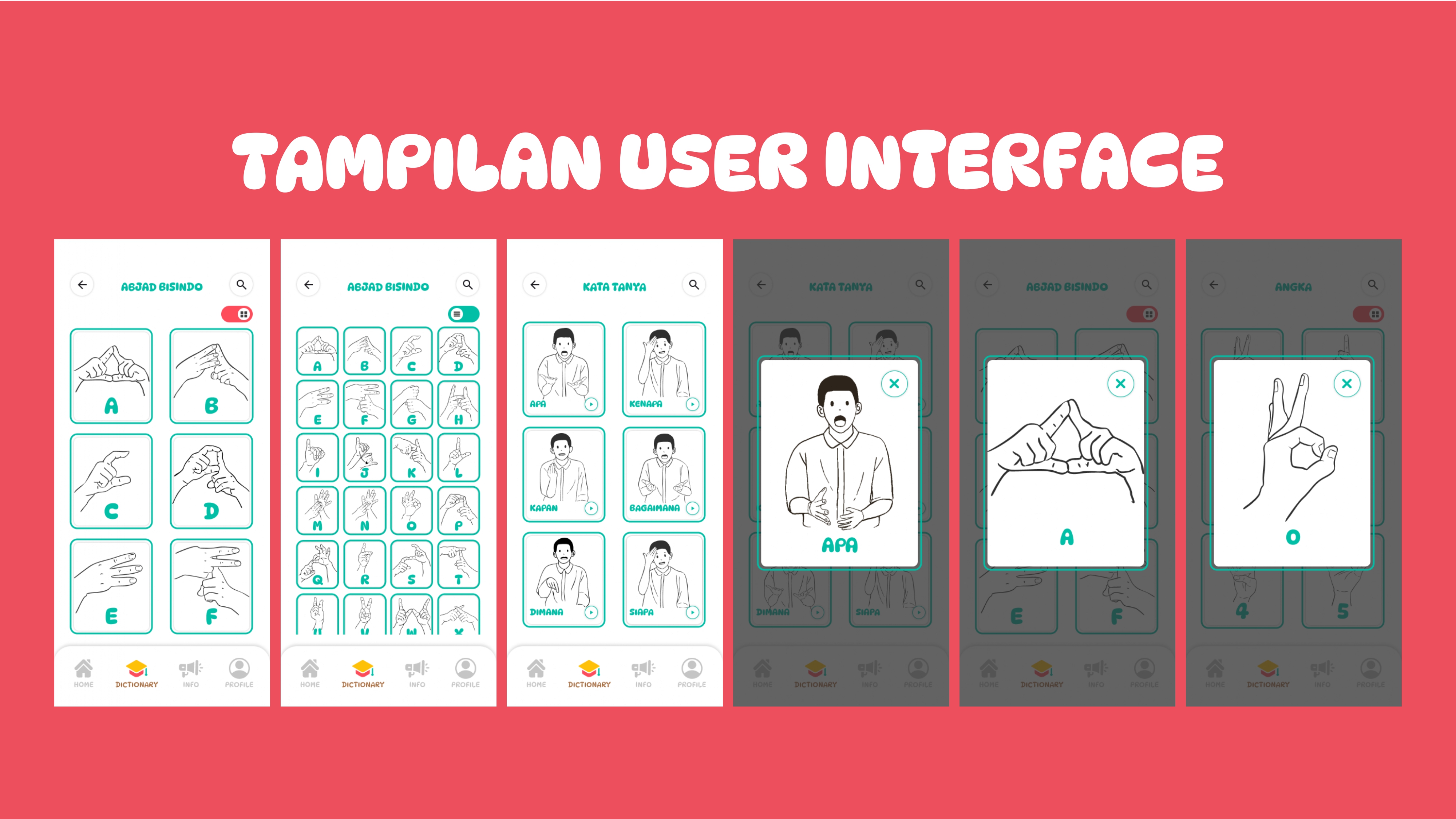 Mahasiswa dengan gangguan pendengaran di Indonesia menghadapi tantangan komunikasi dan psikologis di perguruan tinggi, yang menghambat terwujudnya pendidikan inklusif sesuai amanat SDGs. Kesenjangan ini diperparah oleh minimnya pemahaman bahasa isyarat di kalangan mahasiswa dengar dan pengajar. Untuk menjembatani masalah tersebut, penelitian ini berfokus pada perancangan antarmuka pengguna (UI) dan pengalaman pengguna (UX) sebuah aplikasi seluler. Aplikasi ini dirancang sebagai media pembelajaran Bahasa Isyarat Indonesia (BISINDO) yang ditujukan khusus untuk mahasiswa dengar di Surabaya. Fitur utama yang diusulkan meliputi kamus BISINDO interaktif, speech-to-text, dan real-time gesture recognition sebagai alat bantu penerjemahan. Berbeda dari penelitian sebelumnya, perancangan ini menargetkan mahasiswa dengar dengan menggunakan BISINDO dan teknologi real-time. Tujuan utamanya adalah menyediakan purwarupa aplikasi yang dapat meningkatkan kesadaran dan kemampuan mahasiswa dengar untuk berkomunikasi dengan rekan tuli mereka. Dengan demikian, diharapkan aplikasi ini mampu mendorong terciptanya lingkungan akademik yang lebih suportif dan inklusif bagi semua.