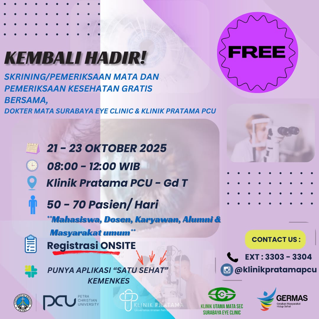 Unit Poliklinik Universitas Kristen Petra Surabaya, pada 21-23 Oktober 2025 mengadakan pemeriksaan kesehatan mata.