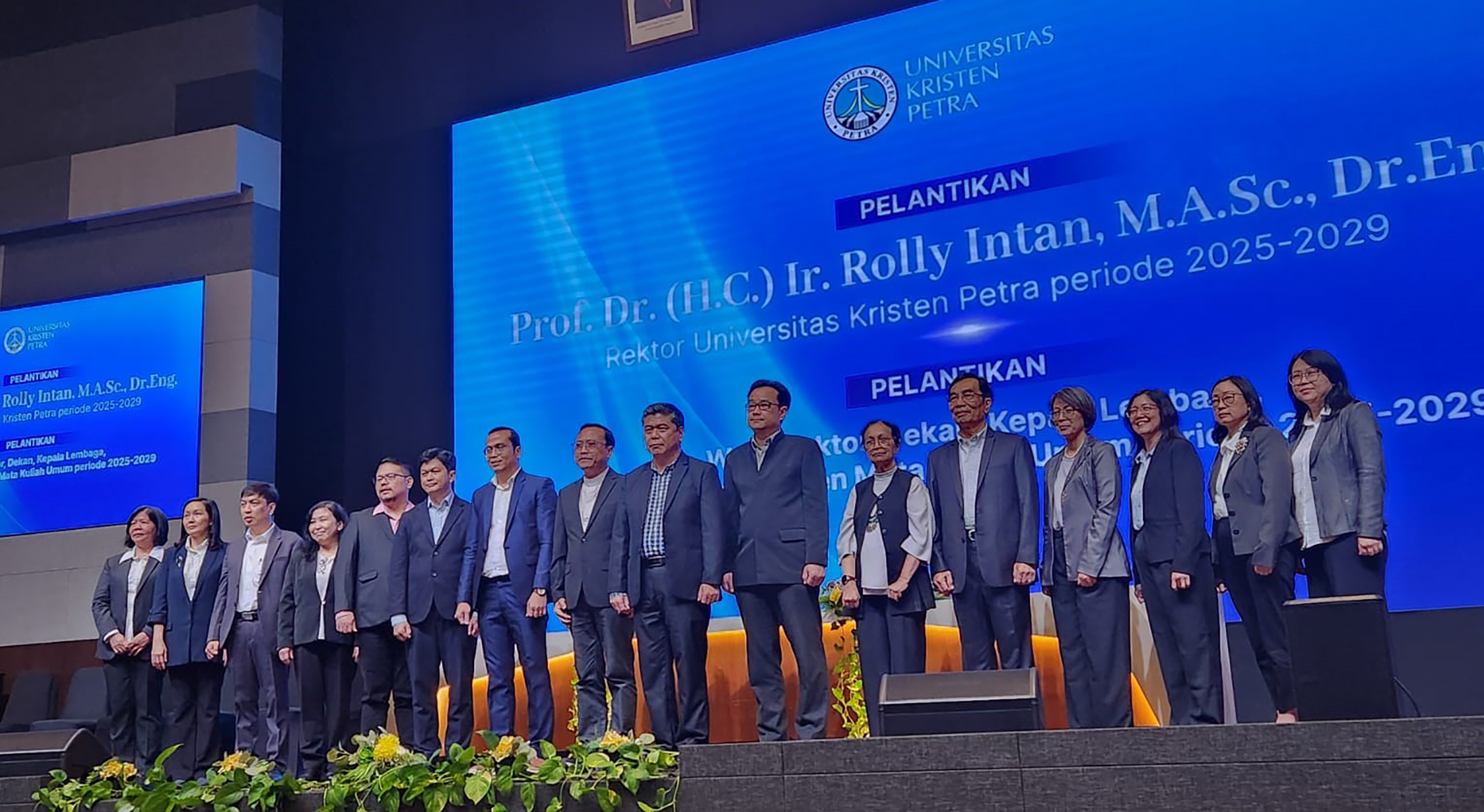 Rabu, 29 Oktober 2025 jam 13.00-16.00 WIB, bertempat di Auditorium gedung Q Universitas Kristen Petra, merupakan hari yang bahagia bagi civitas UK Petra. Karena hari itu tepat dimana dilaksanakannya pelantikan rektor serta wakil rektor dan dekan serta kepala lembaga yang ada di UK Petra Surabaya. Dan juga dilanjutkan dengan acara serah terima jabatan, dari pejabat lama kepada pejabat yang baru. Prof. Dr. (H.C.) Ir. Rolly Intan, M.A.Sc., Dr.Eng. dilantik menjadi Rektor UK P{etra periode 2025-2029.
