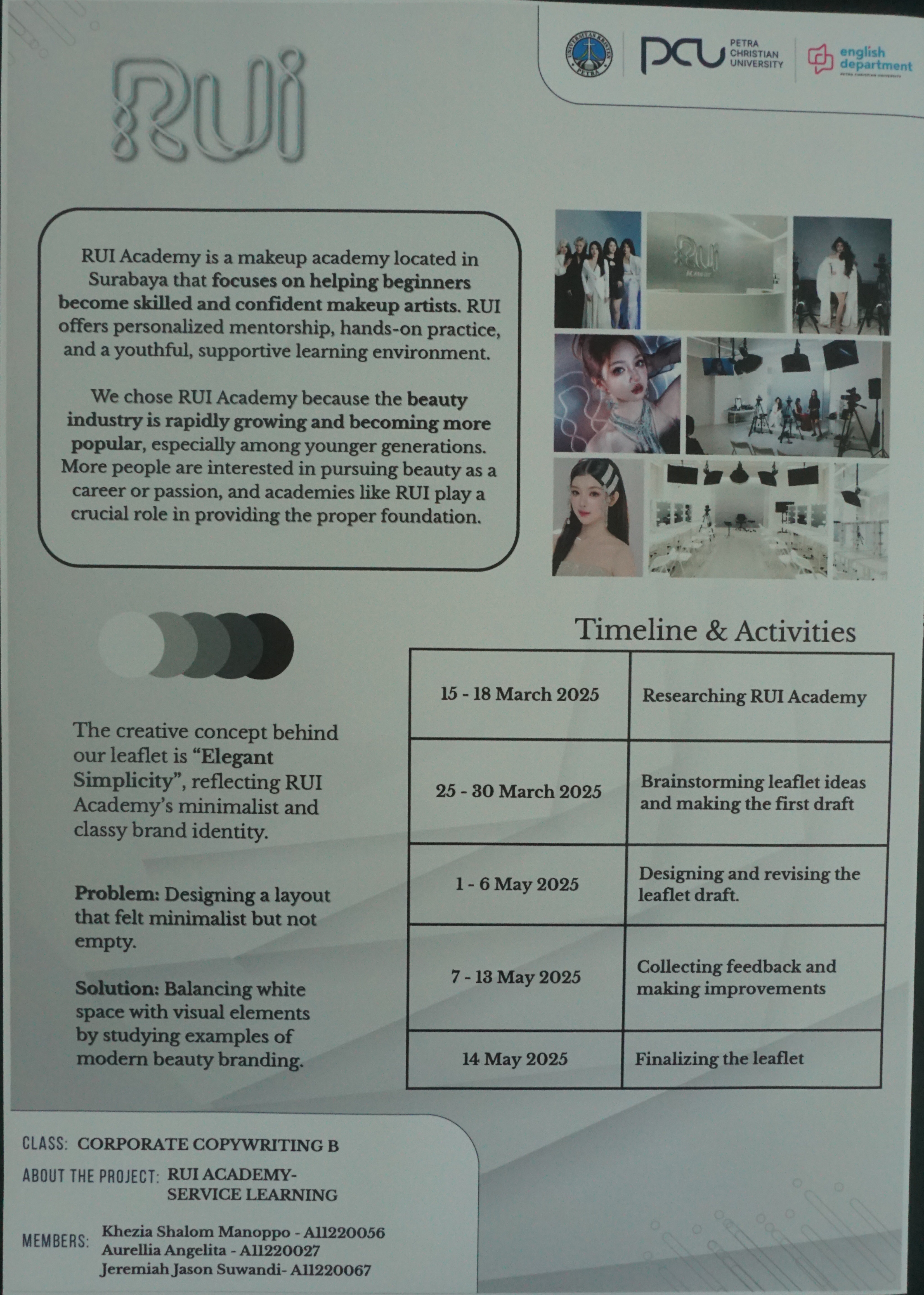 Poster ini dibuat untuk final project exhibition dari mahasiswa Program Studi English for Creative Industry. Salah satu materi pameran adalah Company Profile RUI academy.
