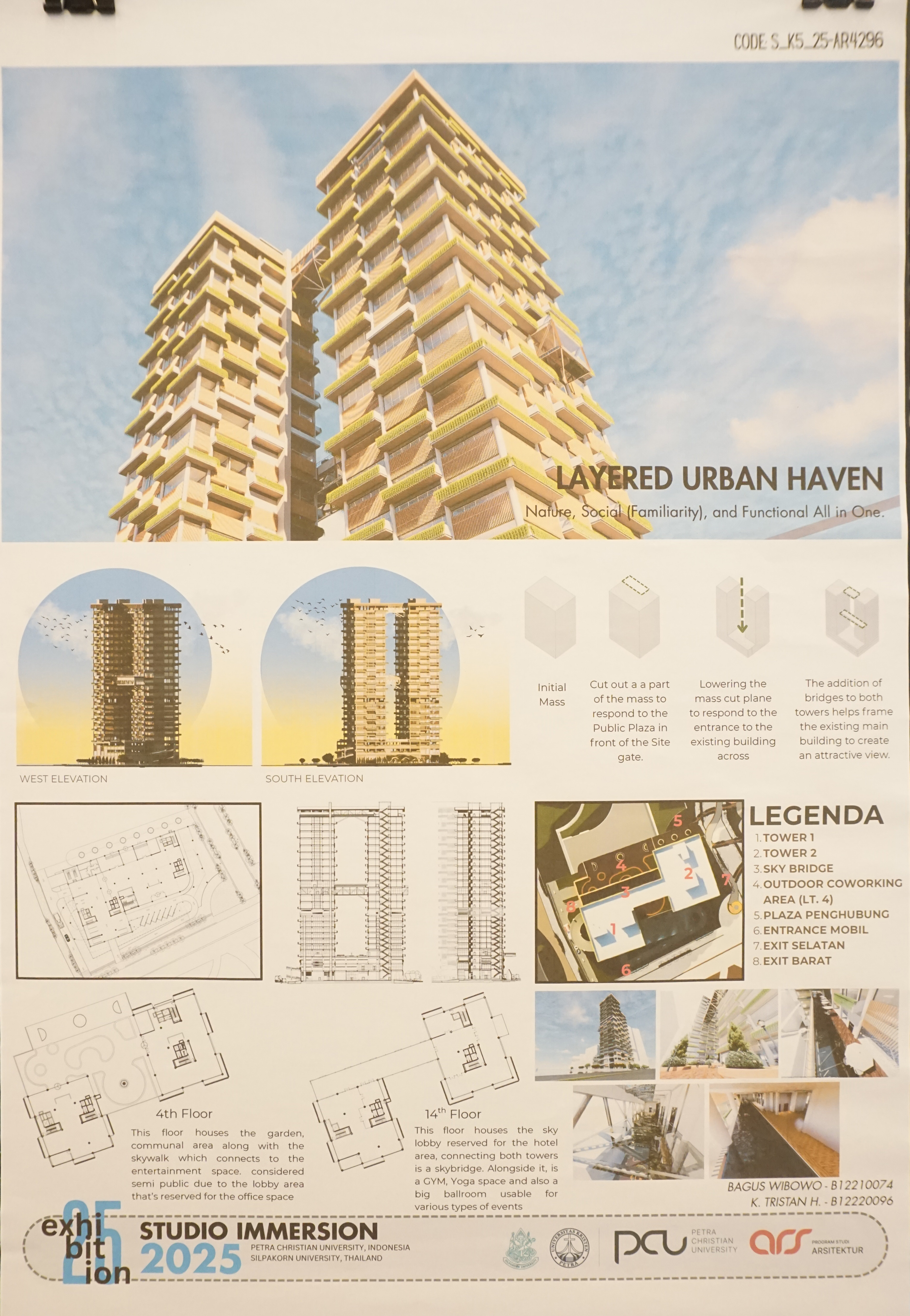 Salah satu karya yang dipamerkan adalah Layered urban haven: nature, social (familiarity), and functional all in one karya dari Bagus Wibowo (B12210074) serta K. Tristan H. (B12220096)