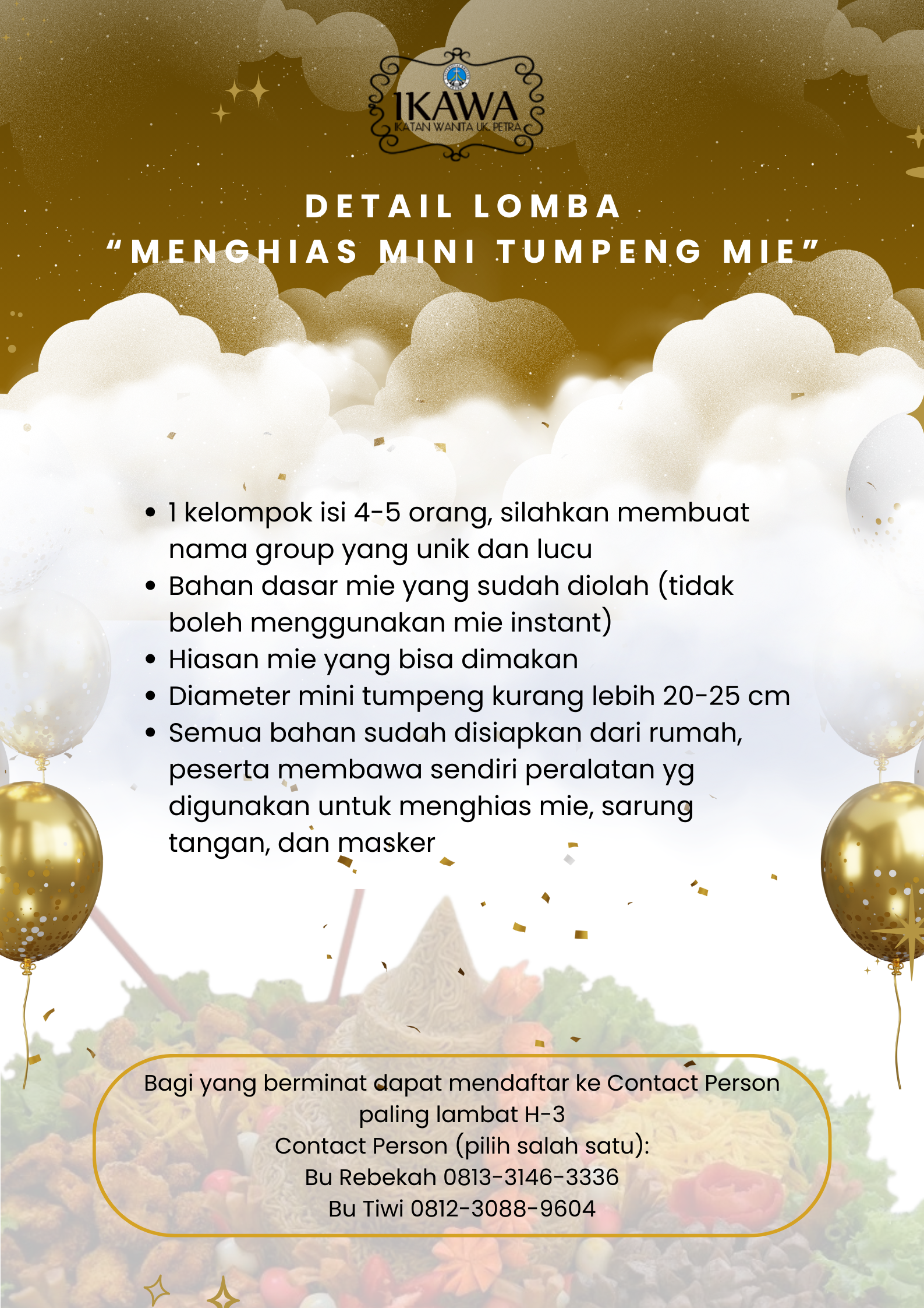 Pertemuan ikatan wanita (IKAWA) UK Petra Surabaya, kembali diadakan pada tanggal 20 Februari 2026 jam 11.30 - 13.00 WIB, bertempat di gedung A lantai 1 UK Petra. Pertemuan ini diselenggarkan dalam rangka HUT ke 35 IKAWA. dengan tema Keep Glowing. Pada acara ini juga diselenggarakan lomba menghias tumpeng.