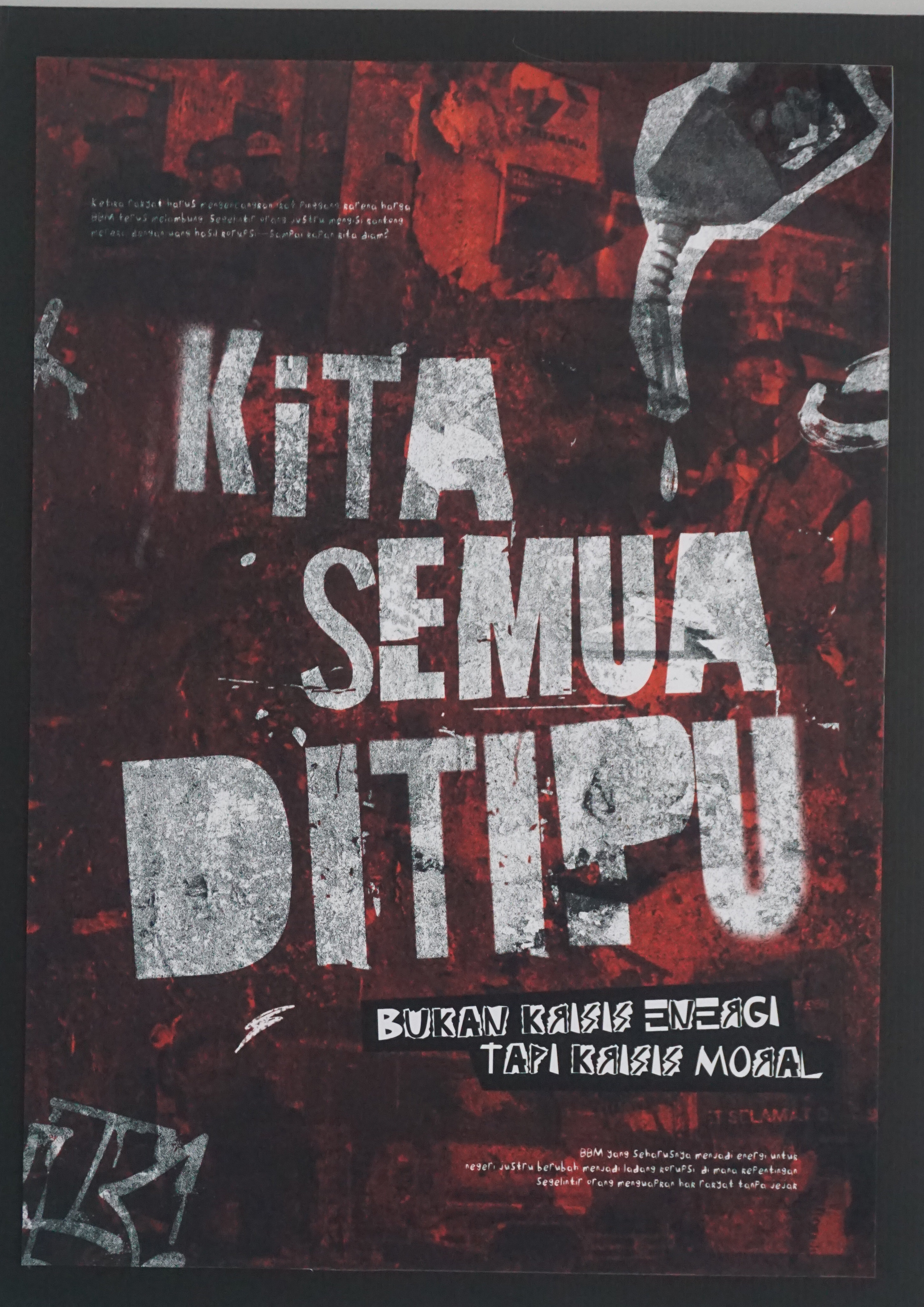 "Sekecil-kecilnya perlawanan adalah sebuah perlawanan". Kegelisahan, kegusaran, dan kemarahan melebur dalam bahasa poster.