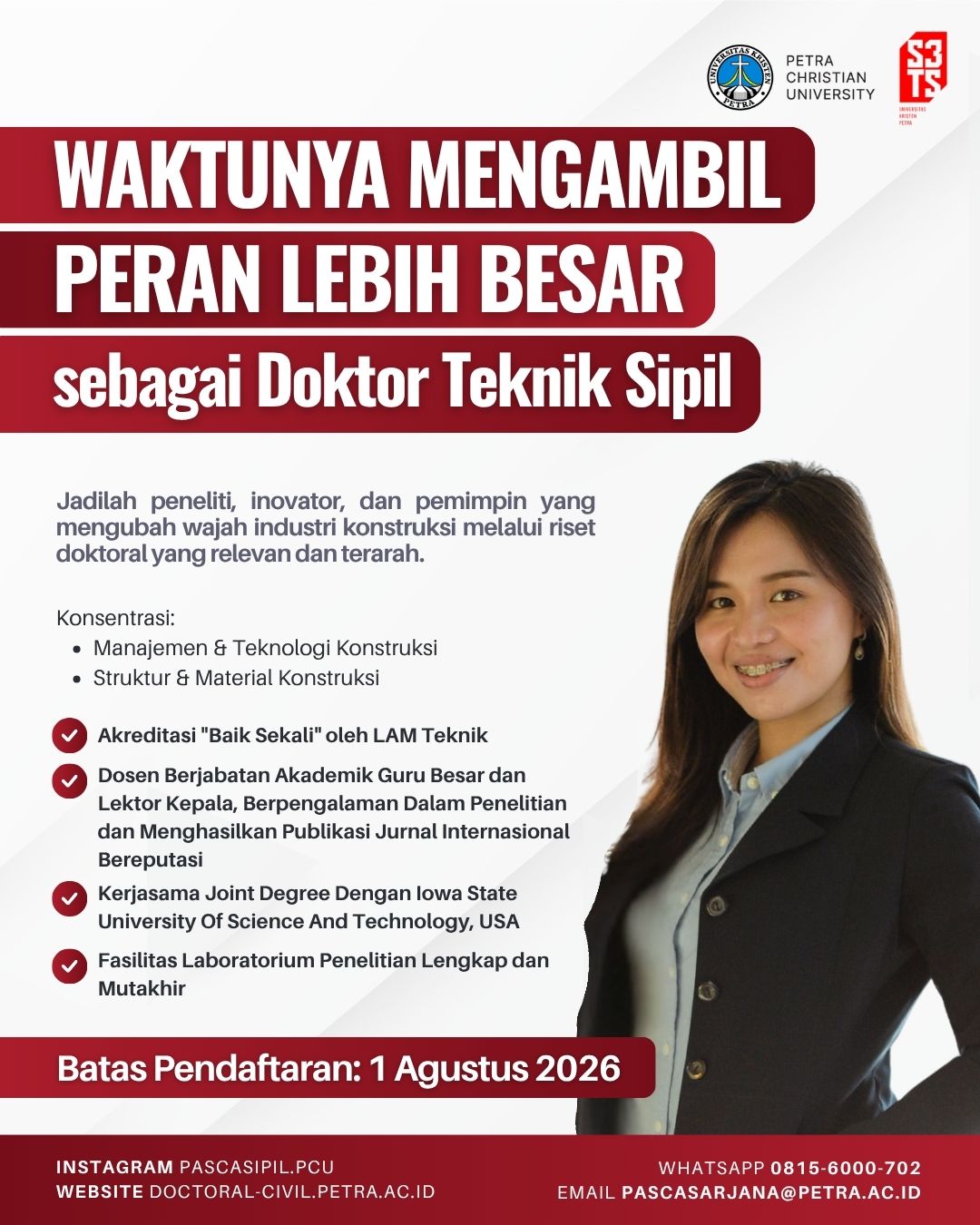 #DoktorTeknikSipil #S3TeknikSipil #PhDCivilEngineering #UKPetra #ResearchExcellence #DTSUKPetra