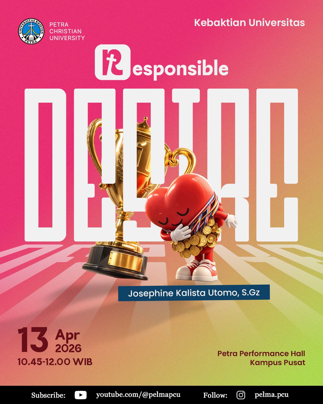 Kami mengundang Petranesian untuk beribadah bersama sebagai keluarga besar Universitas Kristen Petra dalam Kebaktian Universitas yang dilaksanakan pada:
