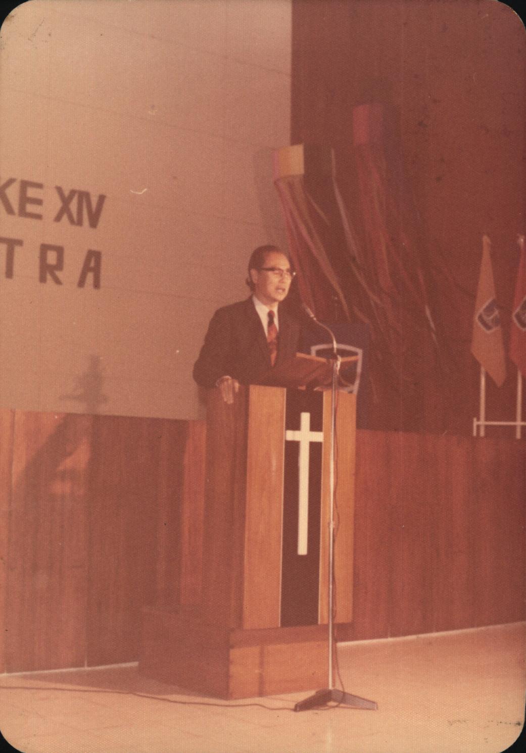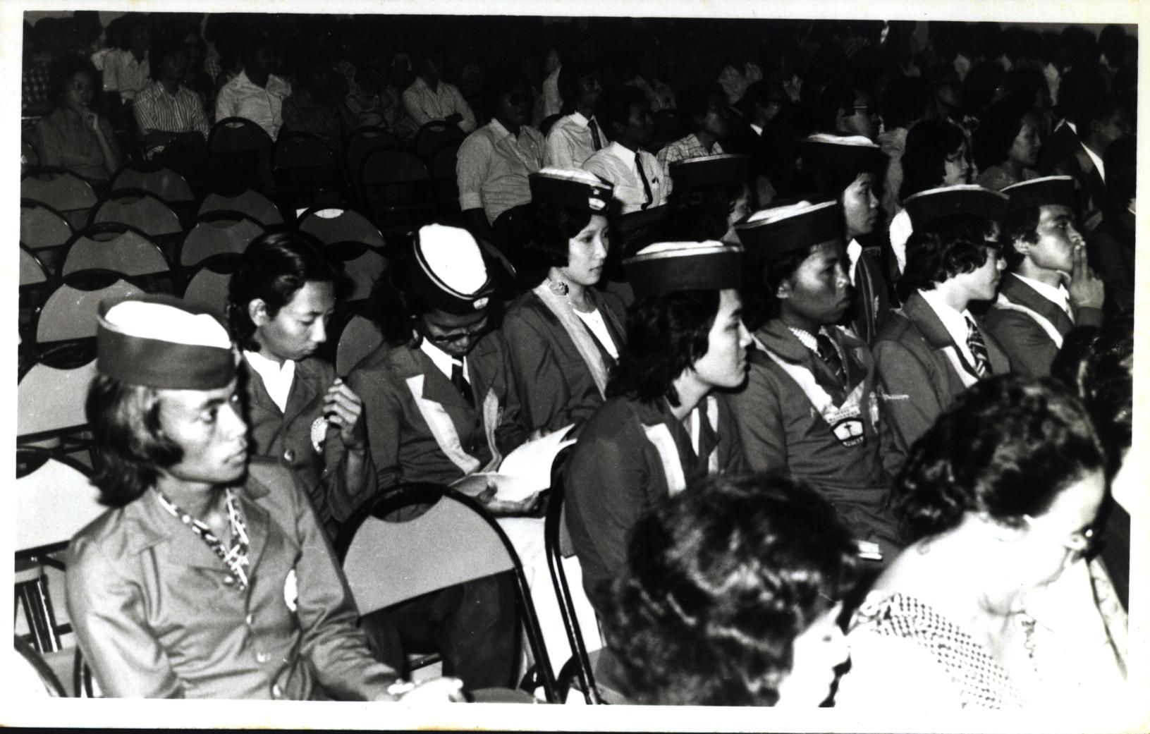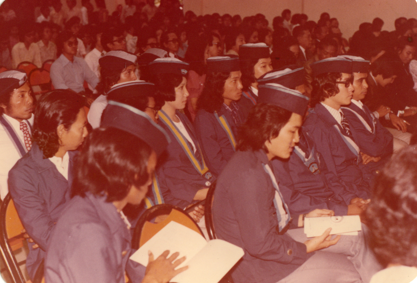 Dokumentasi wisuda sarjana dan sarjana muda pada dies natalis XIV Universitas Kristen Petra tanggal 25 Oktober 1975.