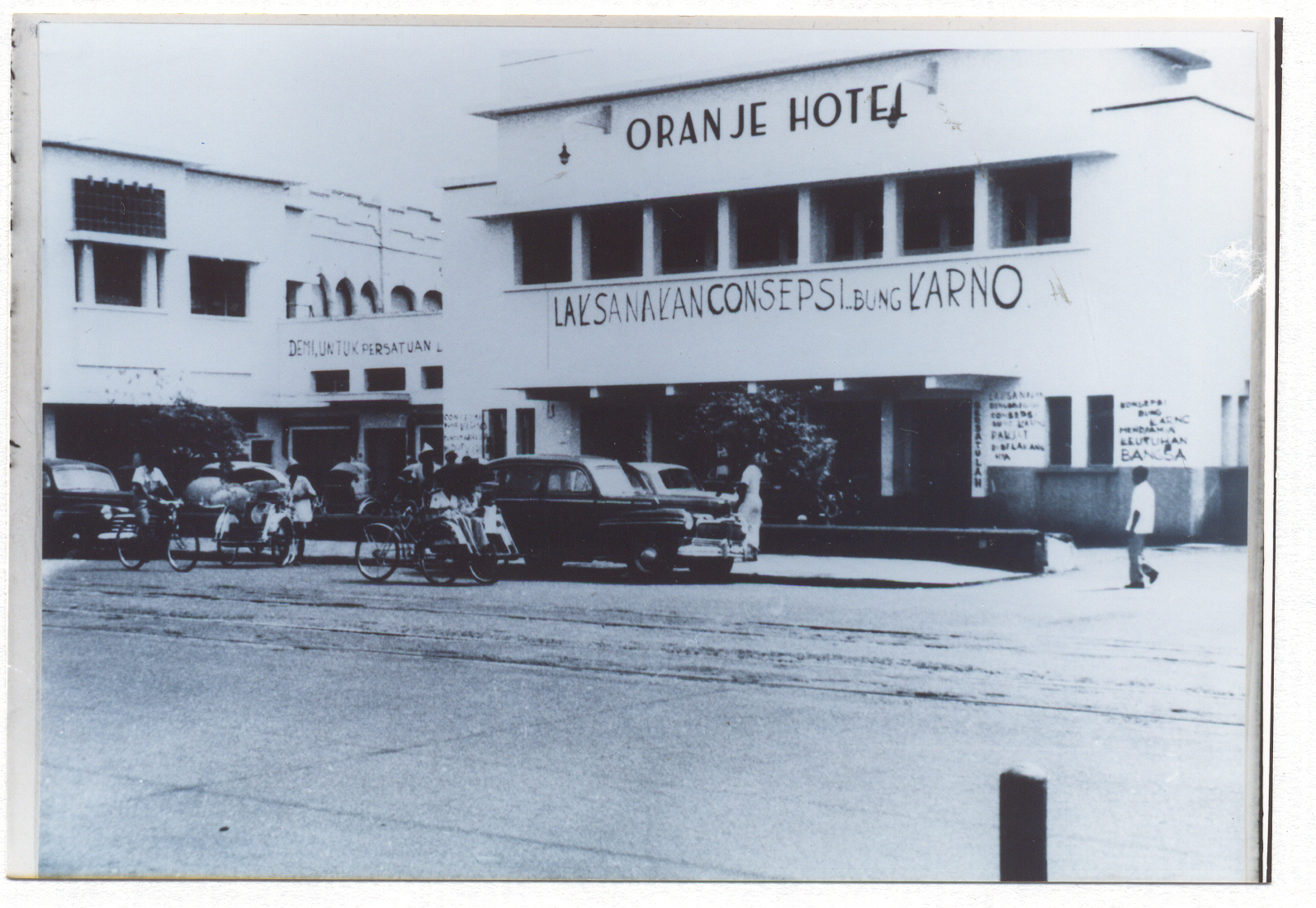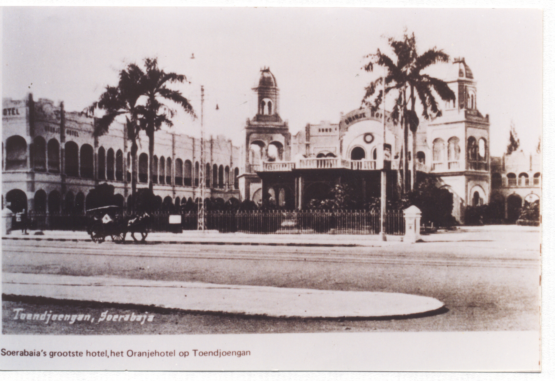 Dokumentasi foto Hotel Oranje. Saat ini dikenal sebagai Mandarin Oriental Hotel Majapahit yang berlokasi di Jalan Tunjungan 65, Surabaya.