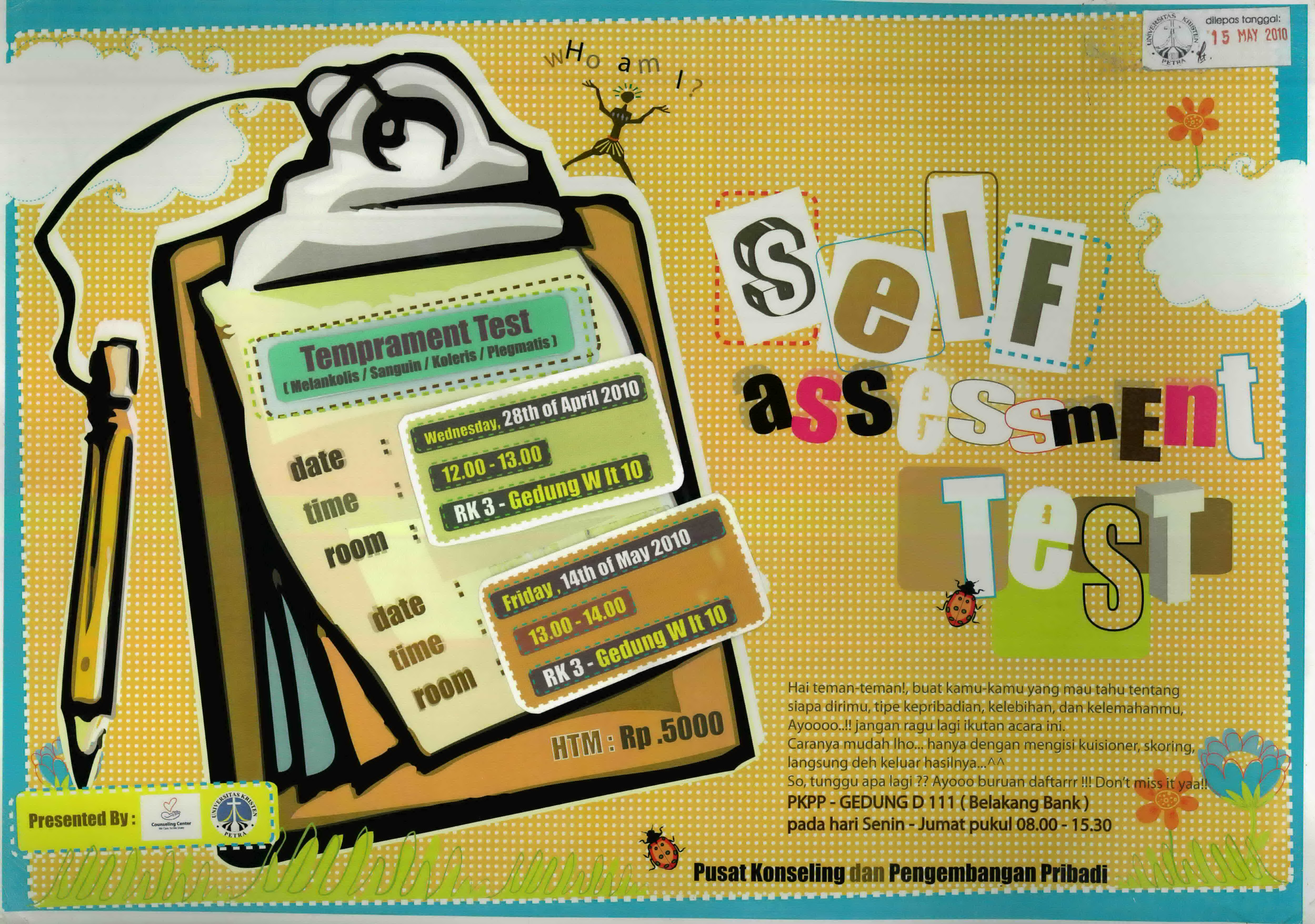 Pusat Konseling dan Pengembangan Diri UK Petra mengadakan Self Assessment Test tanggal 28 April 2010 dan 14 Mei 2010. Test ini bertujuan agar kita dapat lebih mnegenal diri kita, tipe kepribadian, sekaligus kelebihan dan kelemahan.