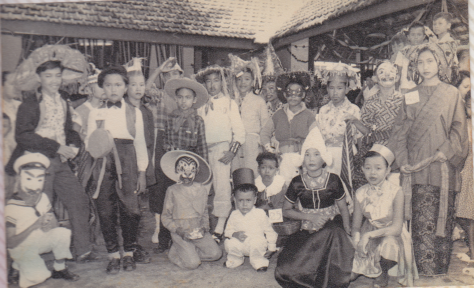 Anak-anak dari Sekolah St.Vincentius mengadakan karnaval pada waktu perayaan sekolah tahun 1956.